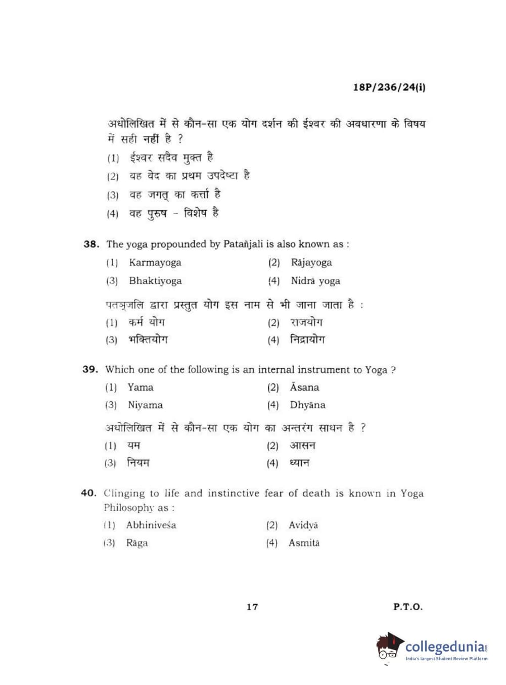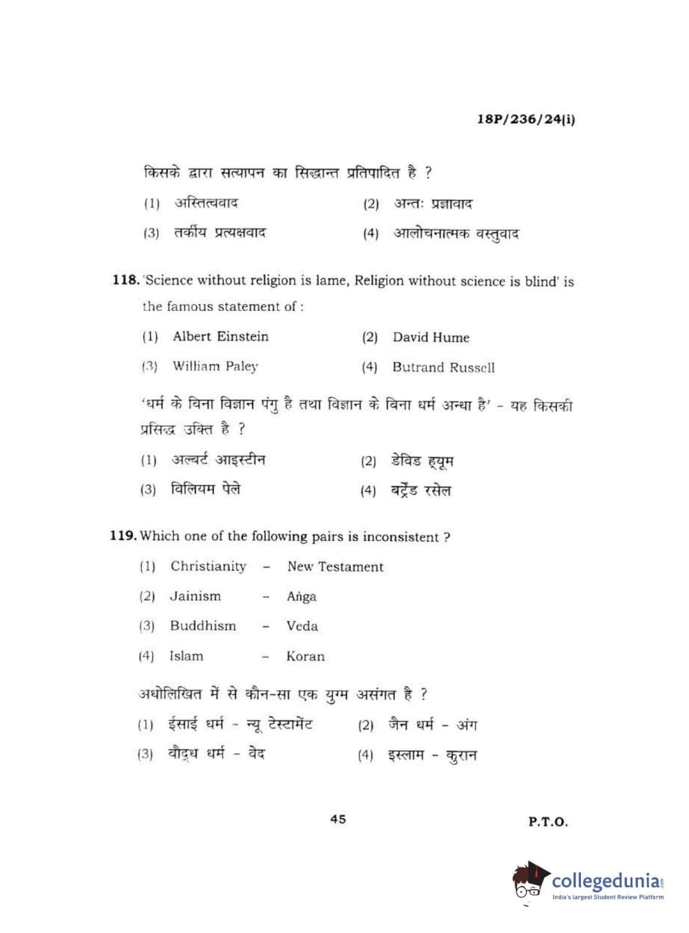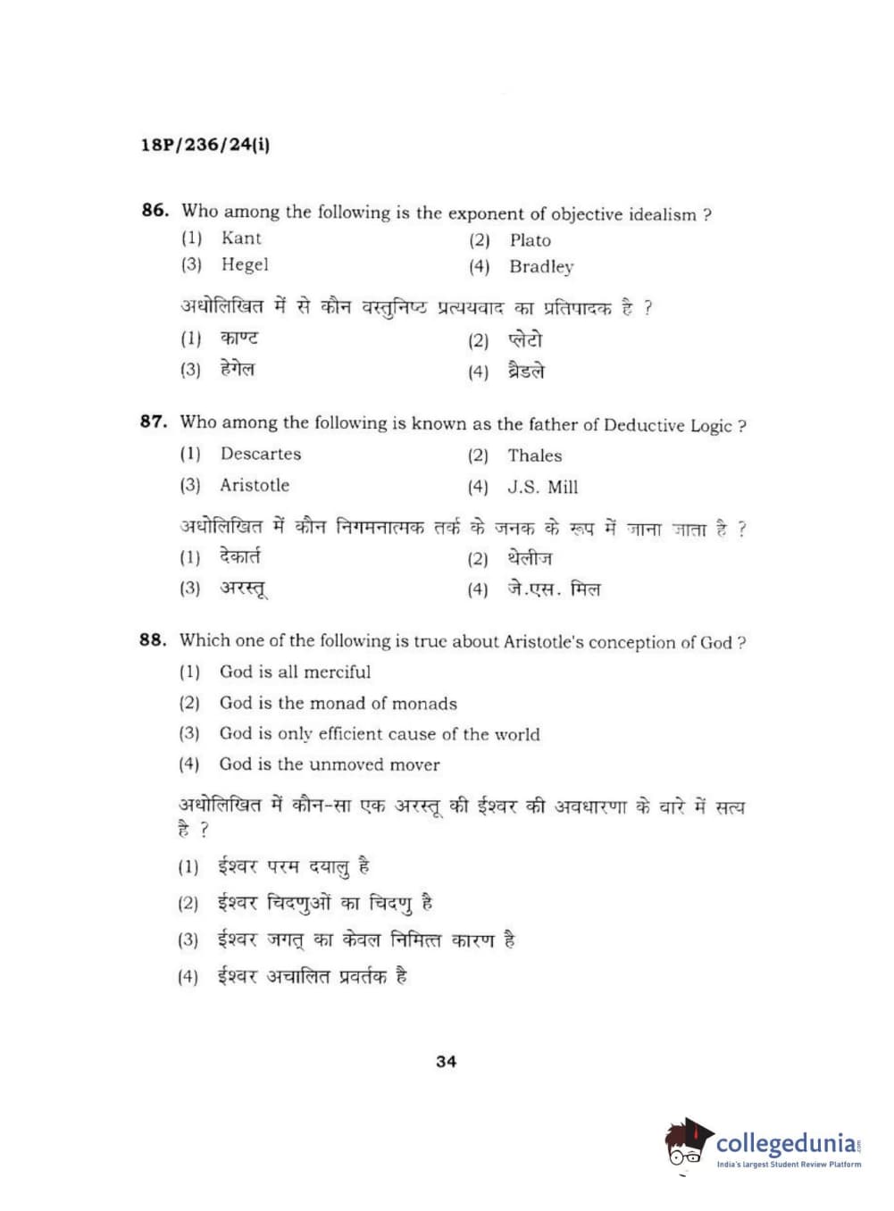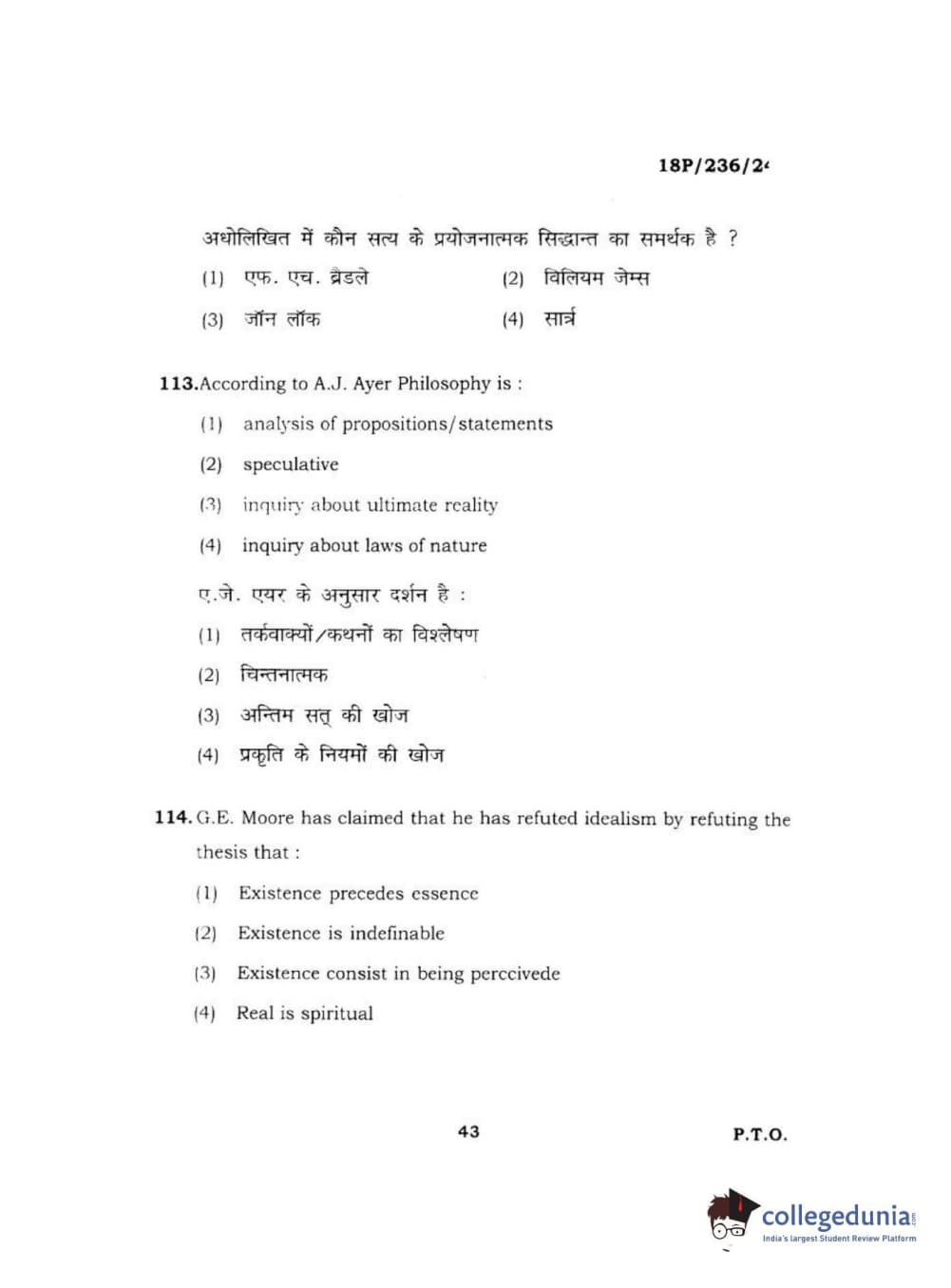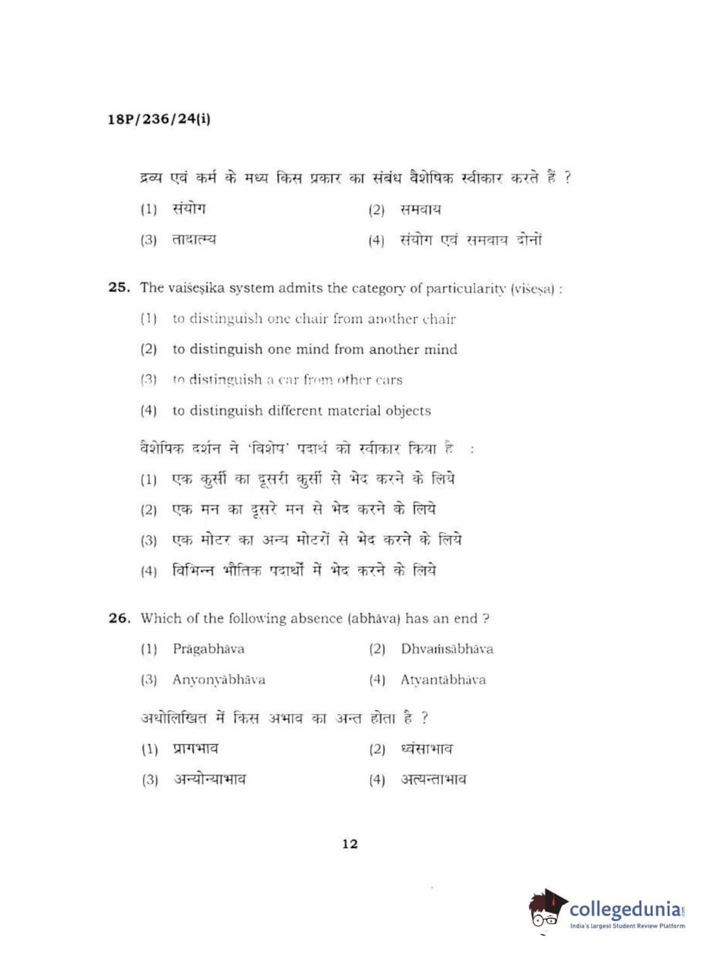 BHU PET 2018 MA PHILOSOPHY Question Paper with Answer Key PDF