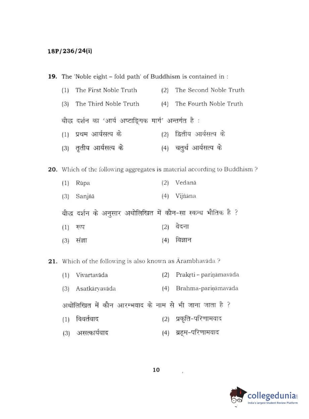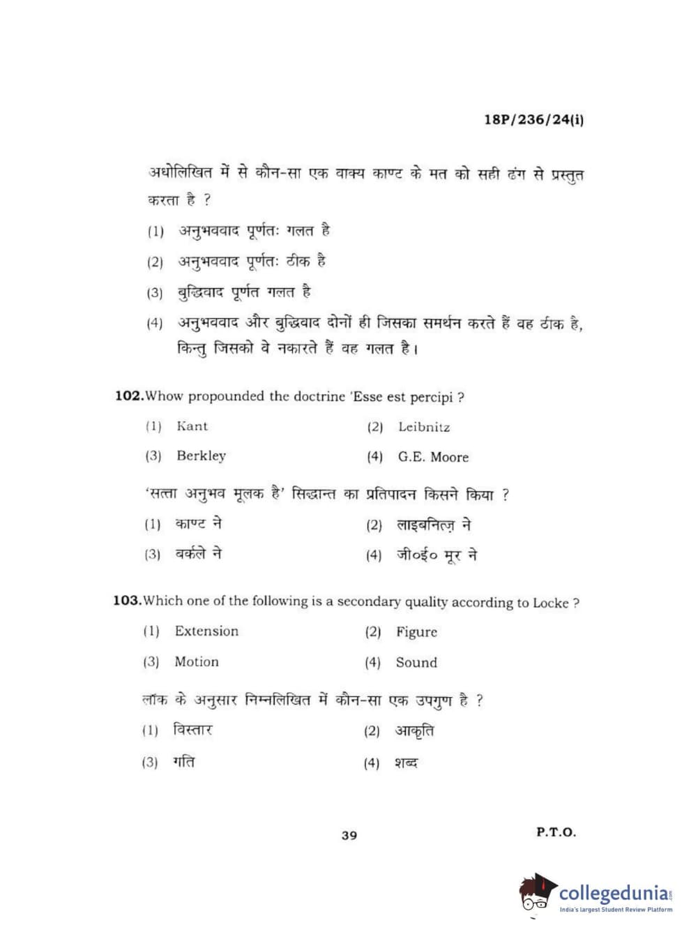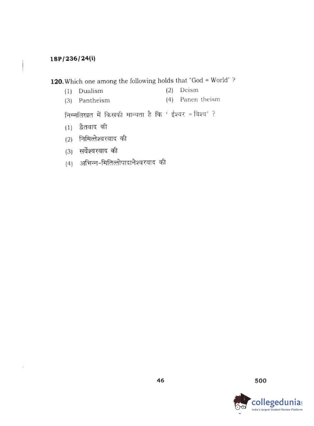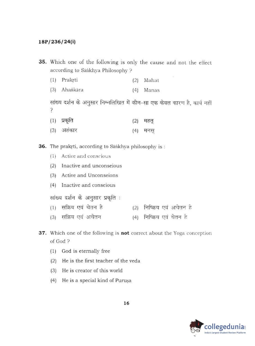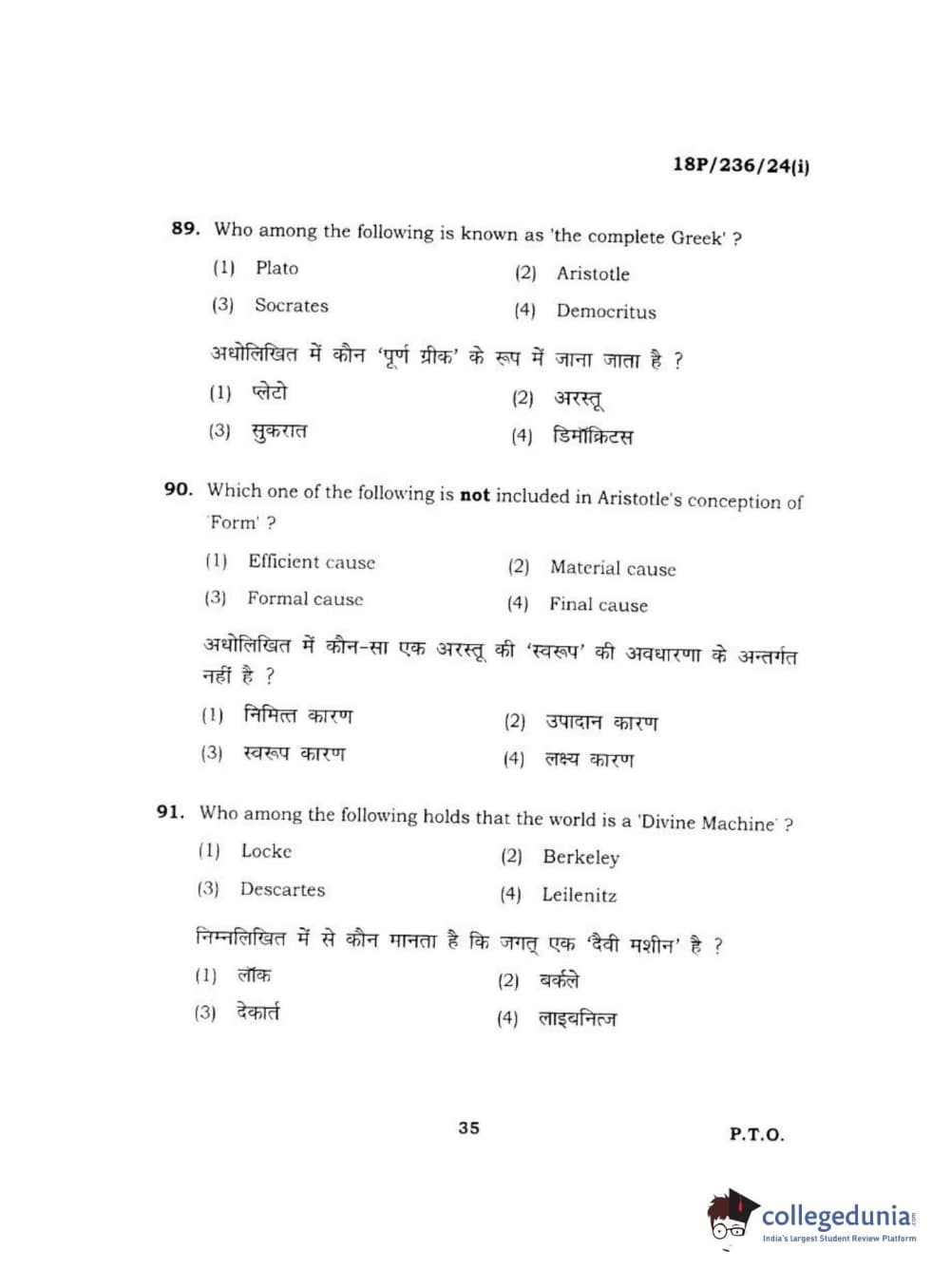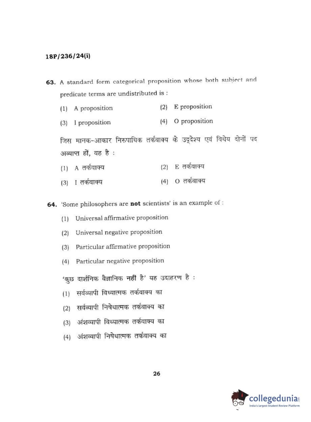 BHU PET 2018 MA PHILOSOPHY Question Paper with Answer Key PDF