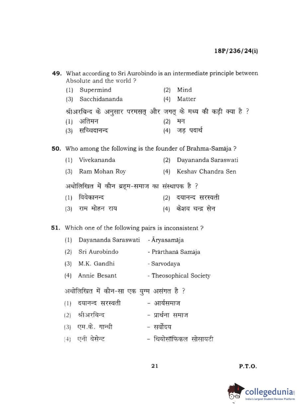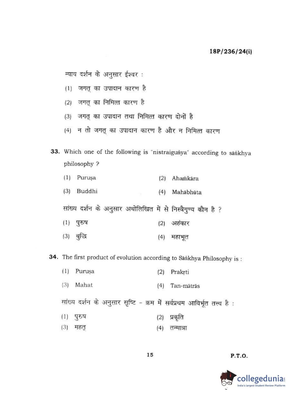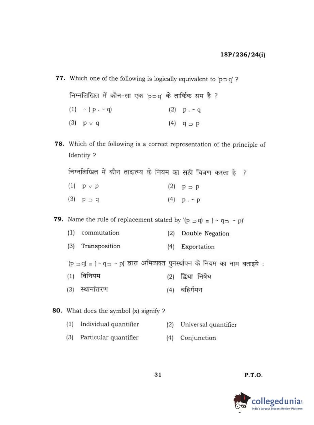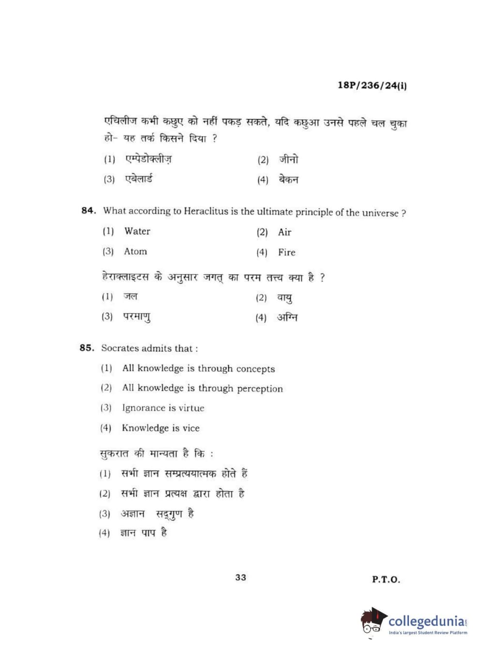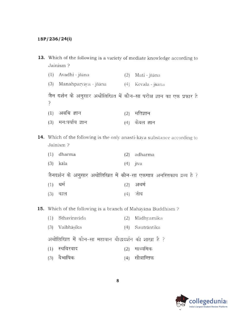 BHU PET 2018 MA PHILOSOPHY Question Paper with Answer Key PDF