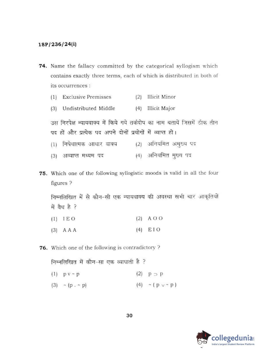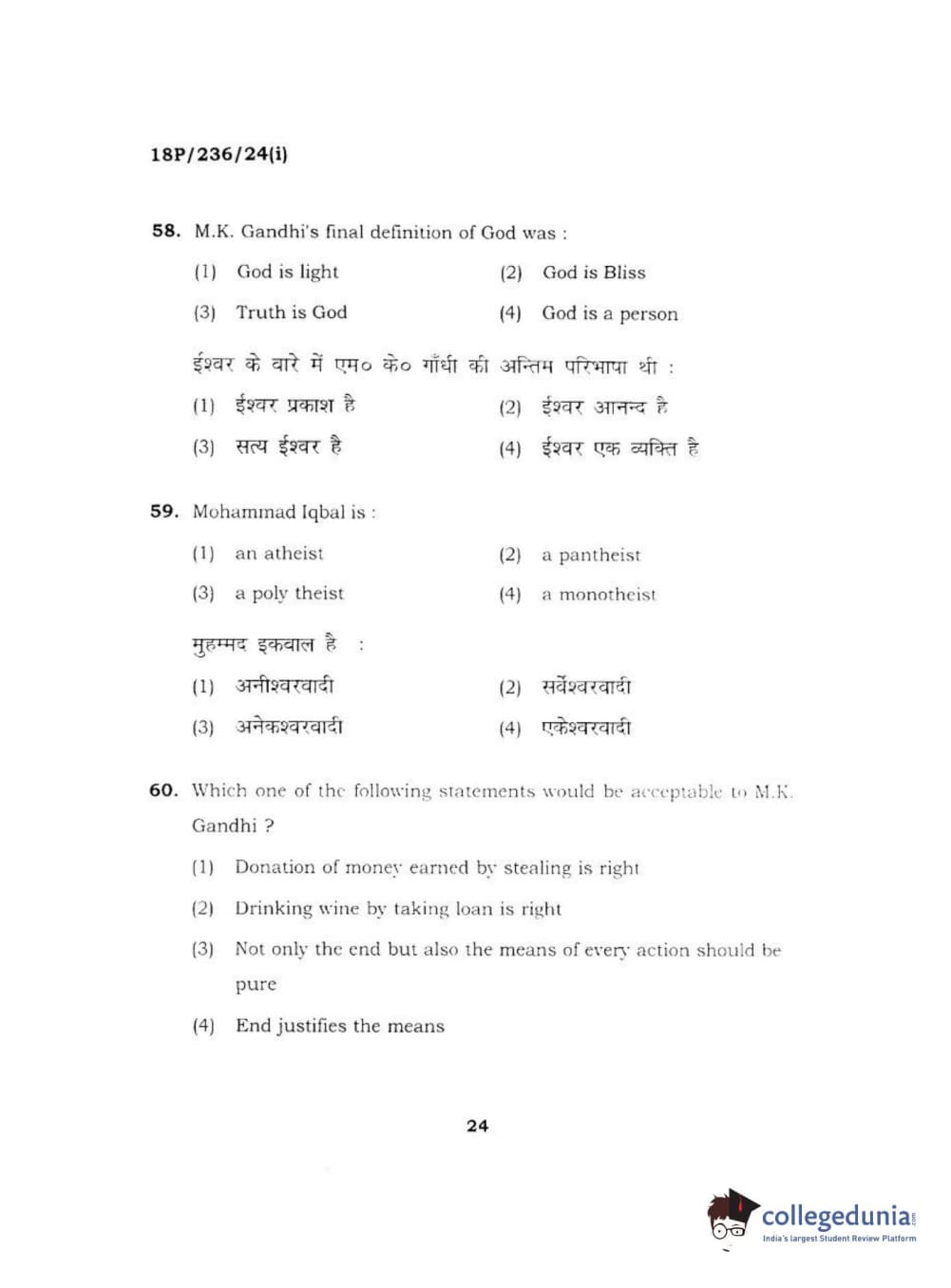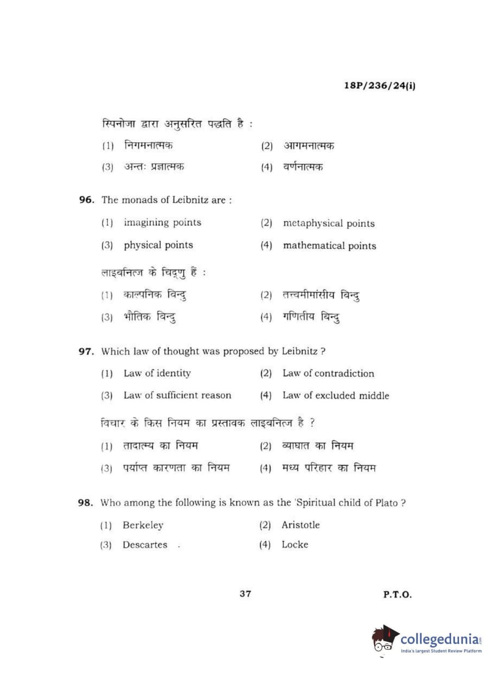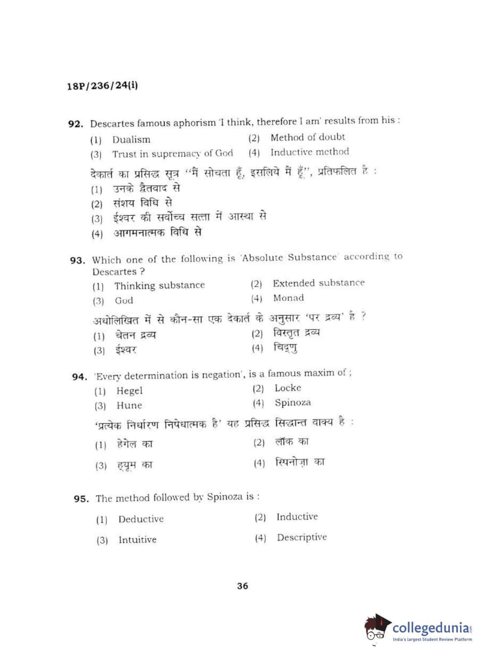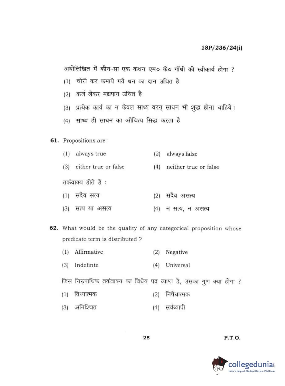 BHU PET 2018 MA PHILOSOPHY Question Paper with Answer Key PDF