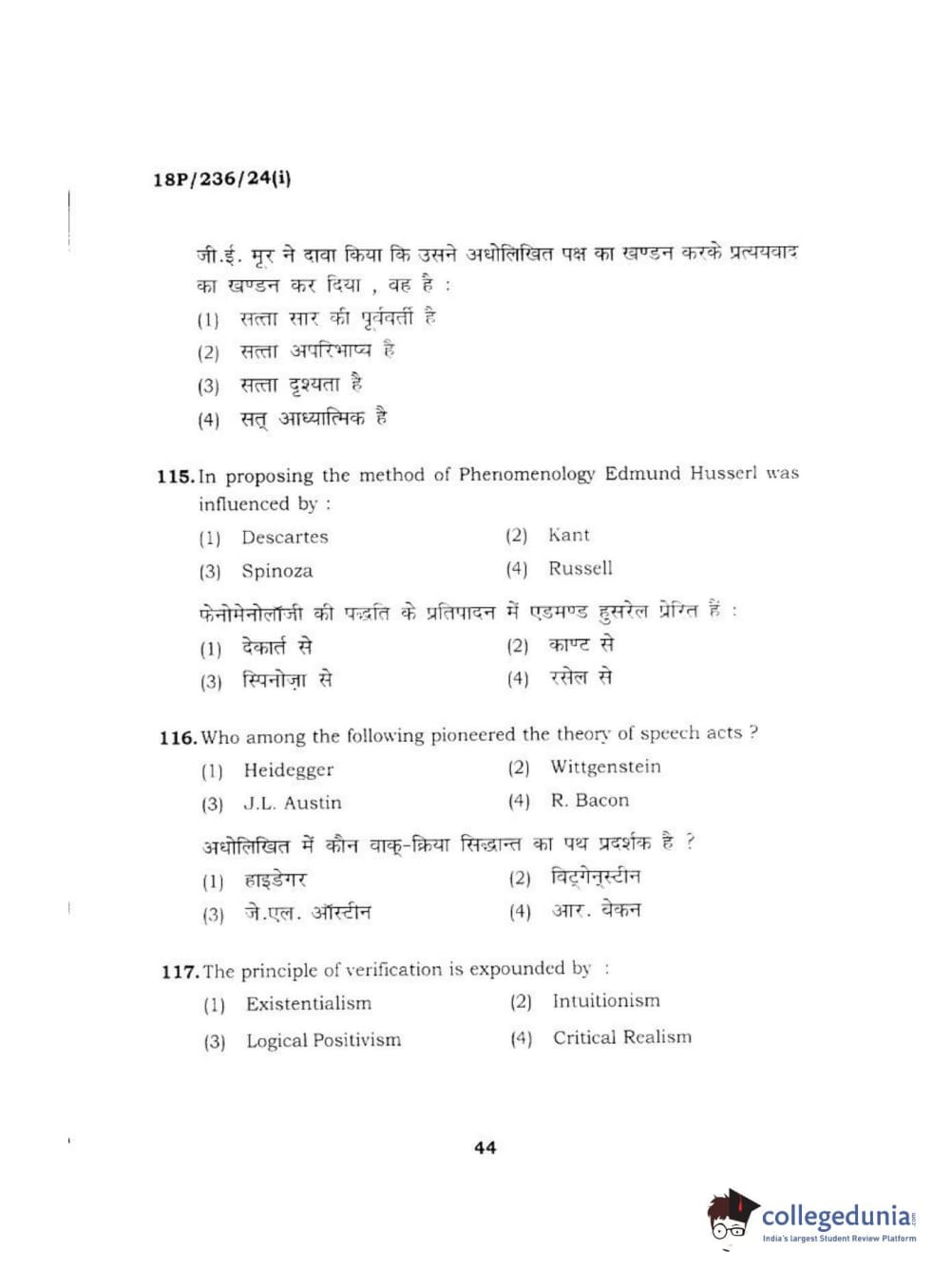 BHU PET 2018 MA PHILOSOPHY Question paper with answer key pdf is available for download. The exam was successfully organized by Banaras Hindu University (BHU). The question paper comprised a total of 120 questions.