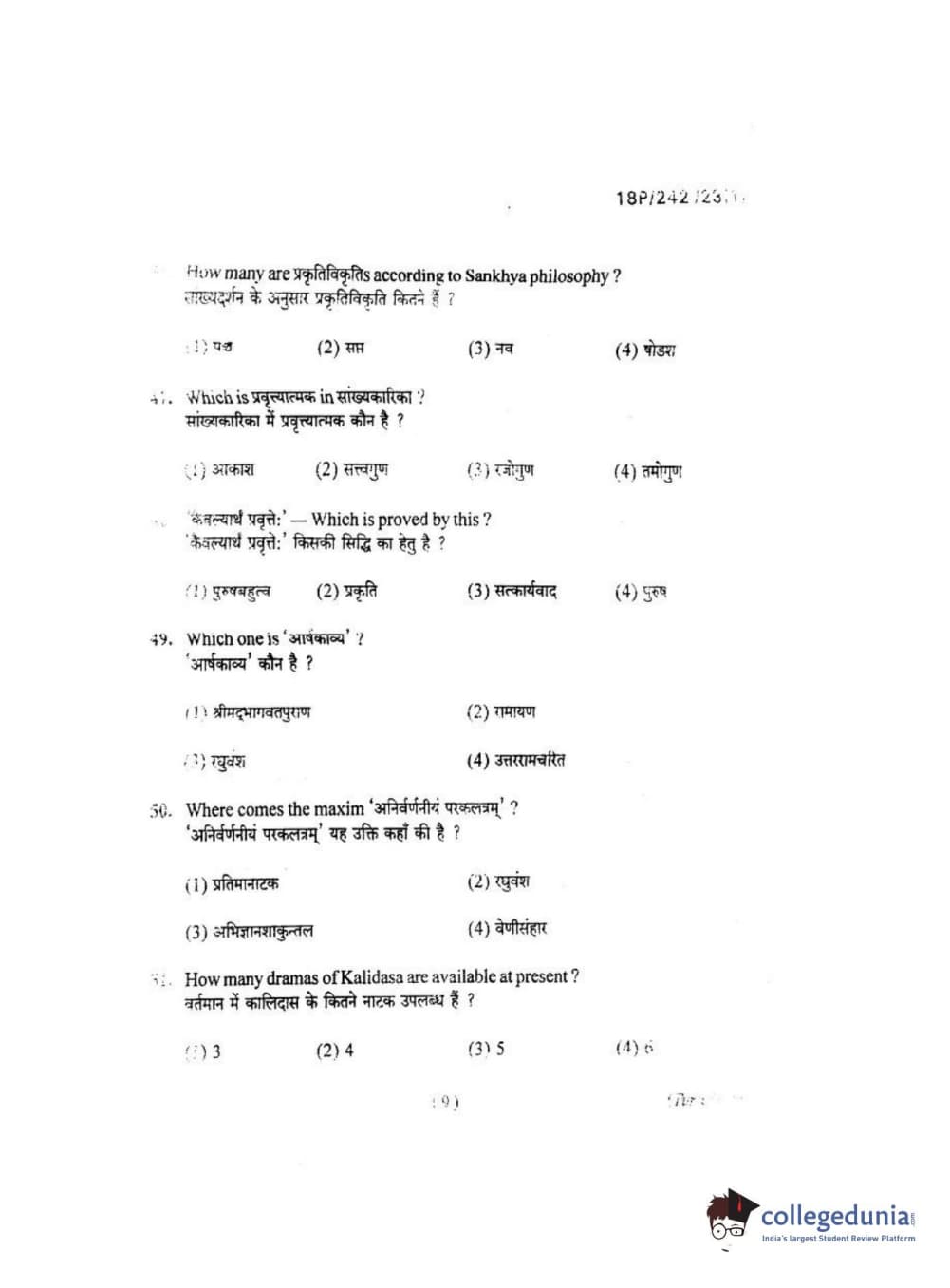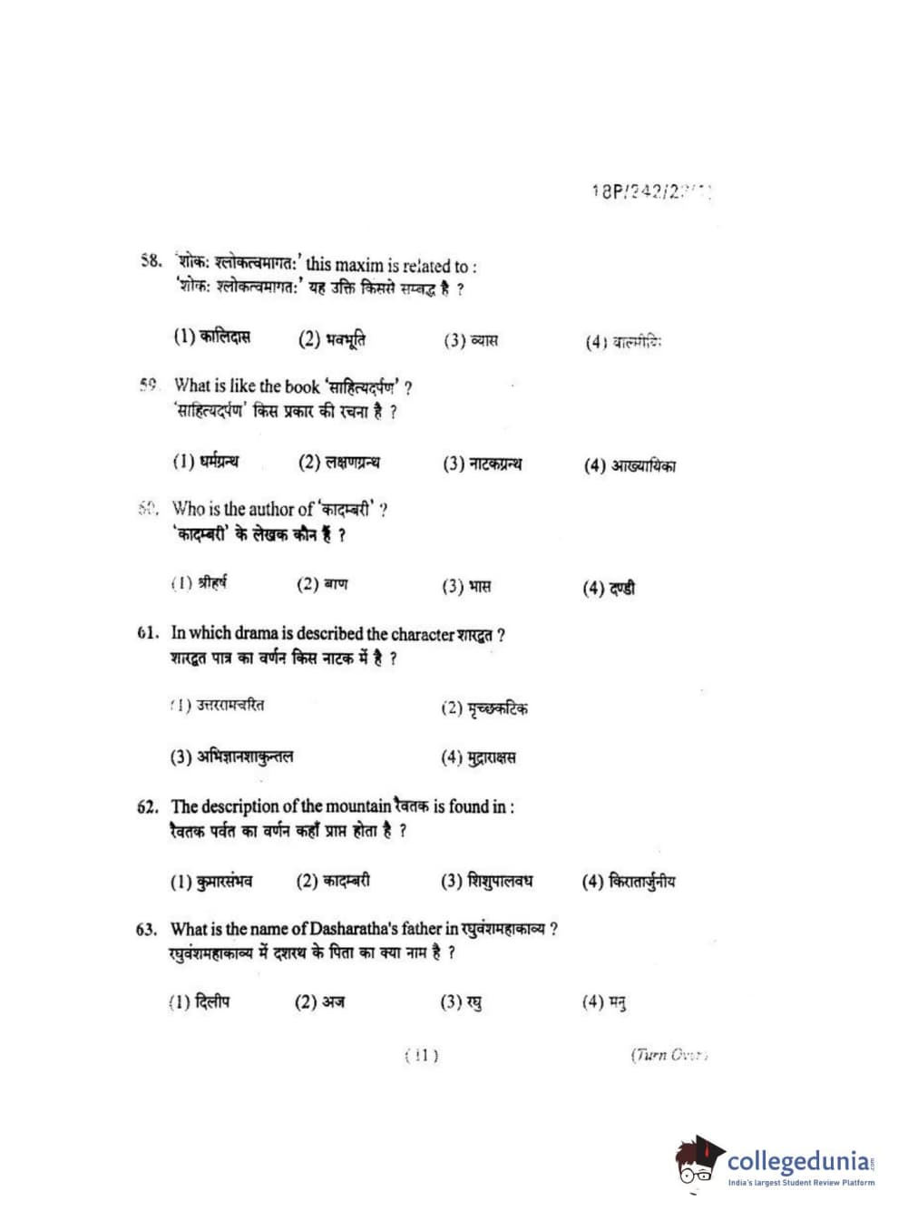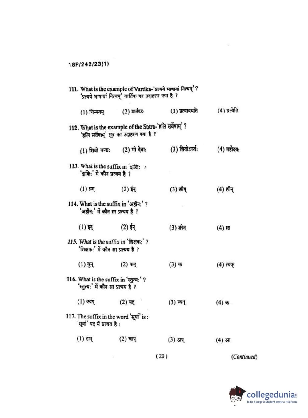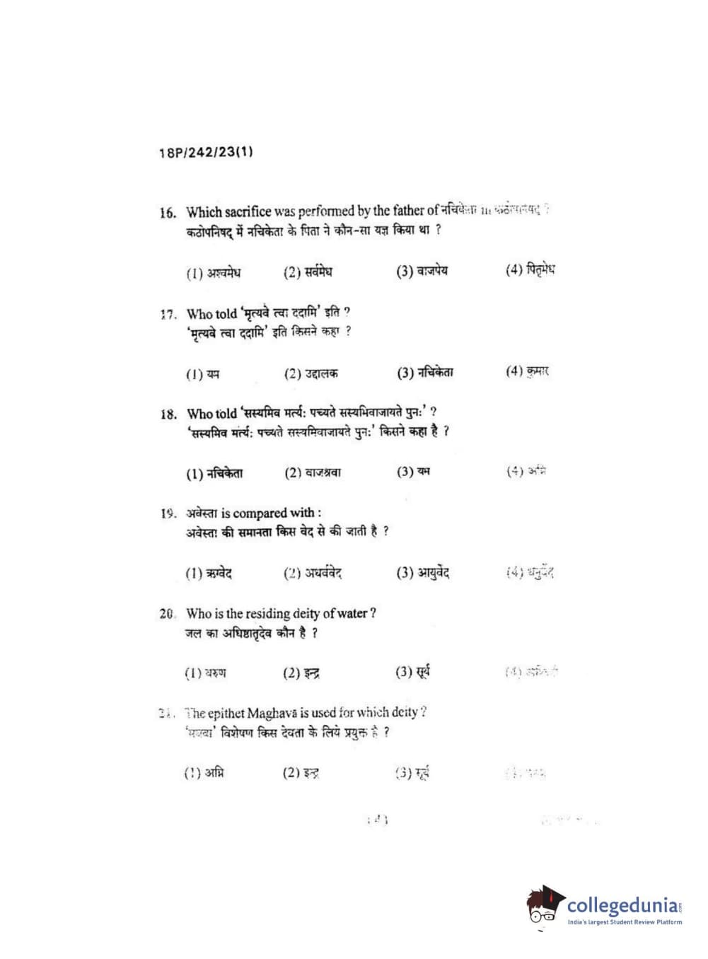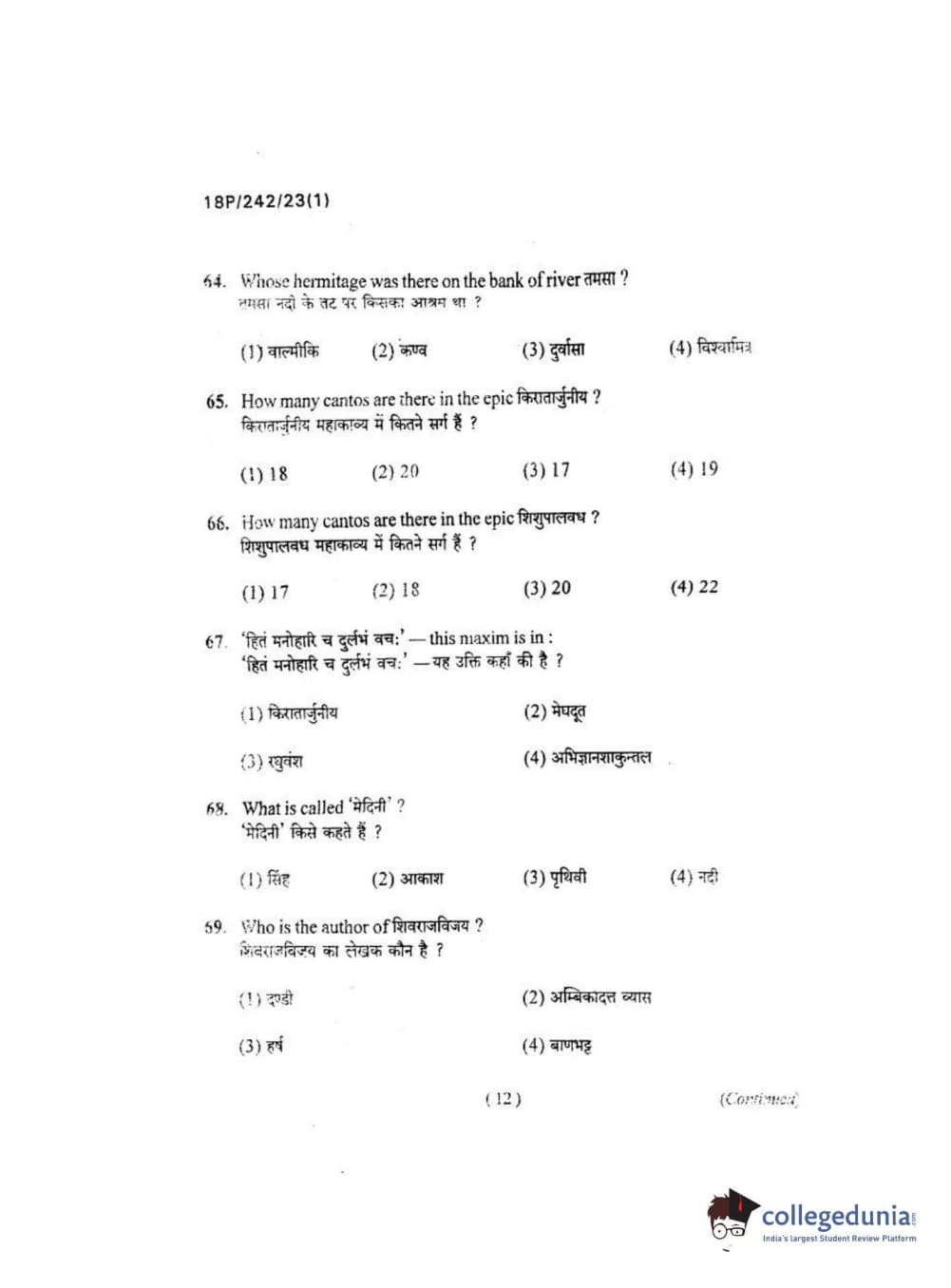 BHU PET 2018 MA SANSKRIT Question Paper with Answer Key PDF