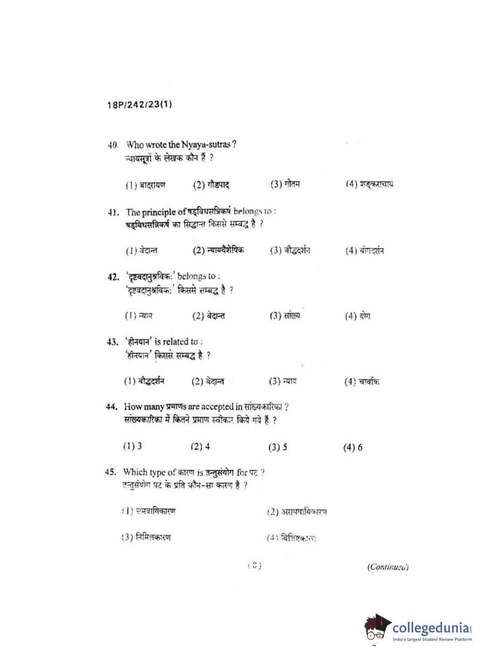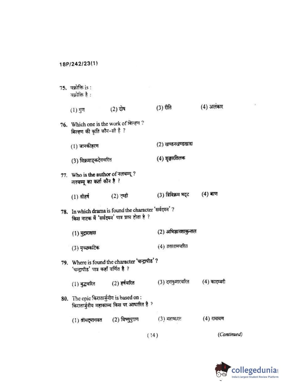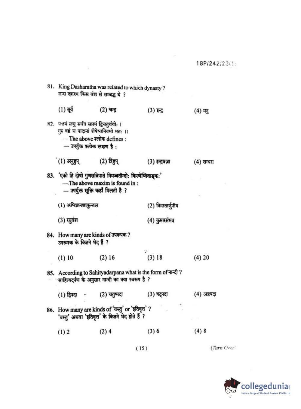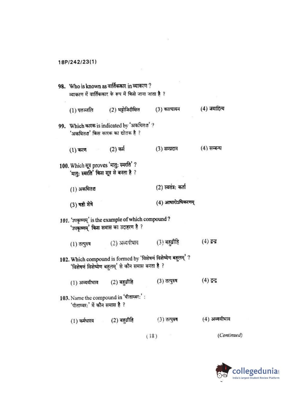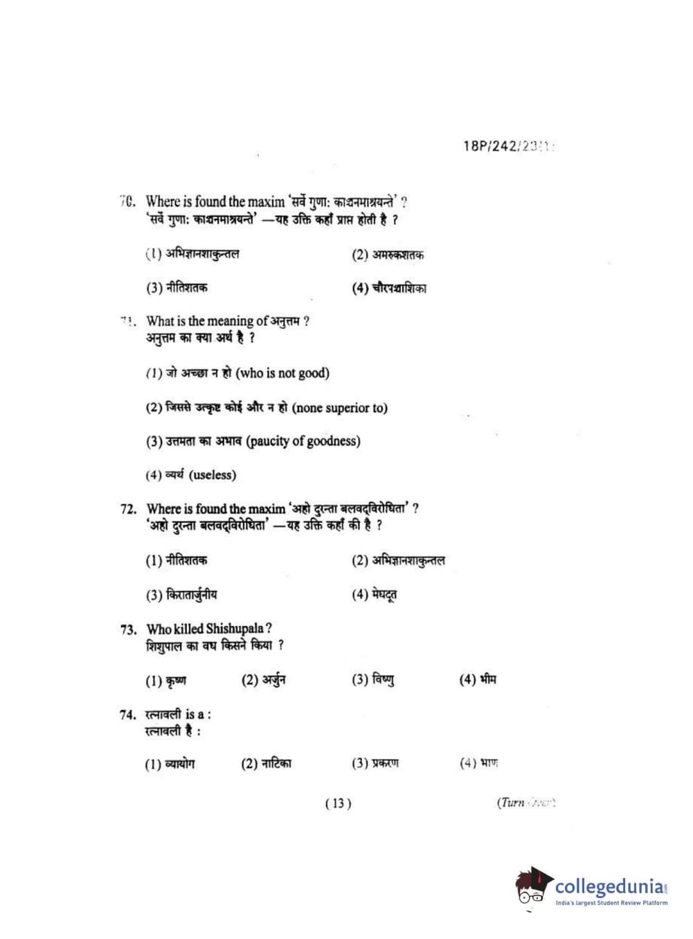 BHU PET 2018 MA SANSKRIT Question Paper with Answer Key PDF