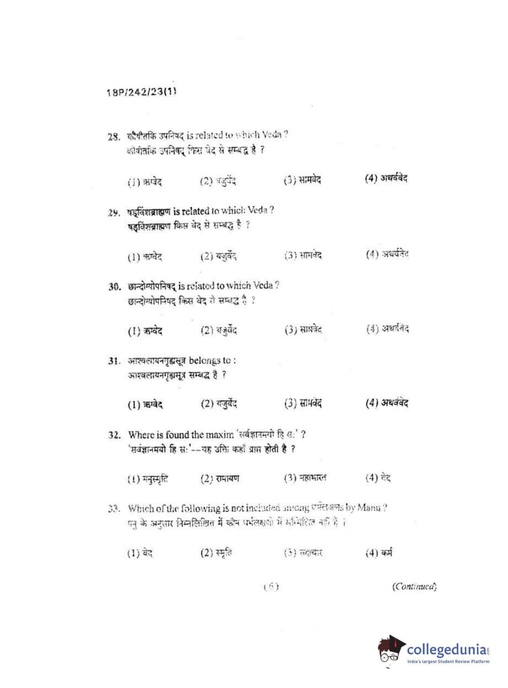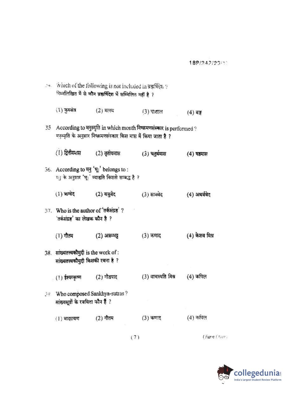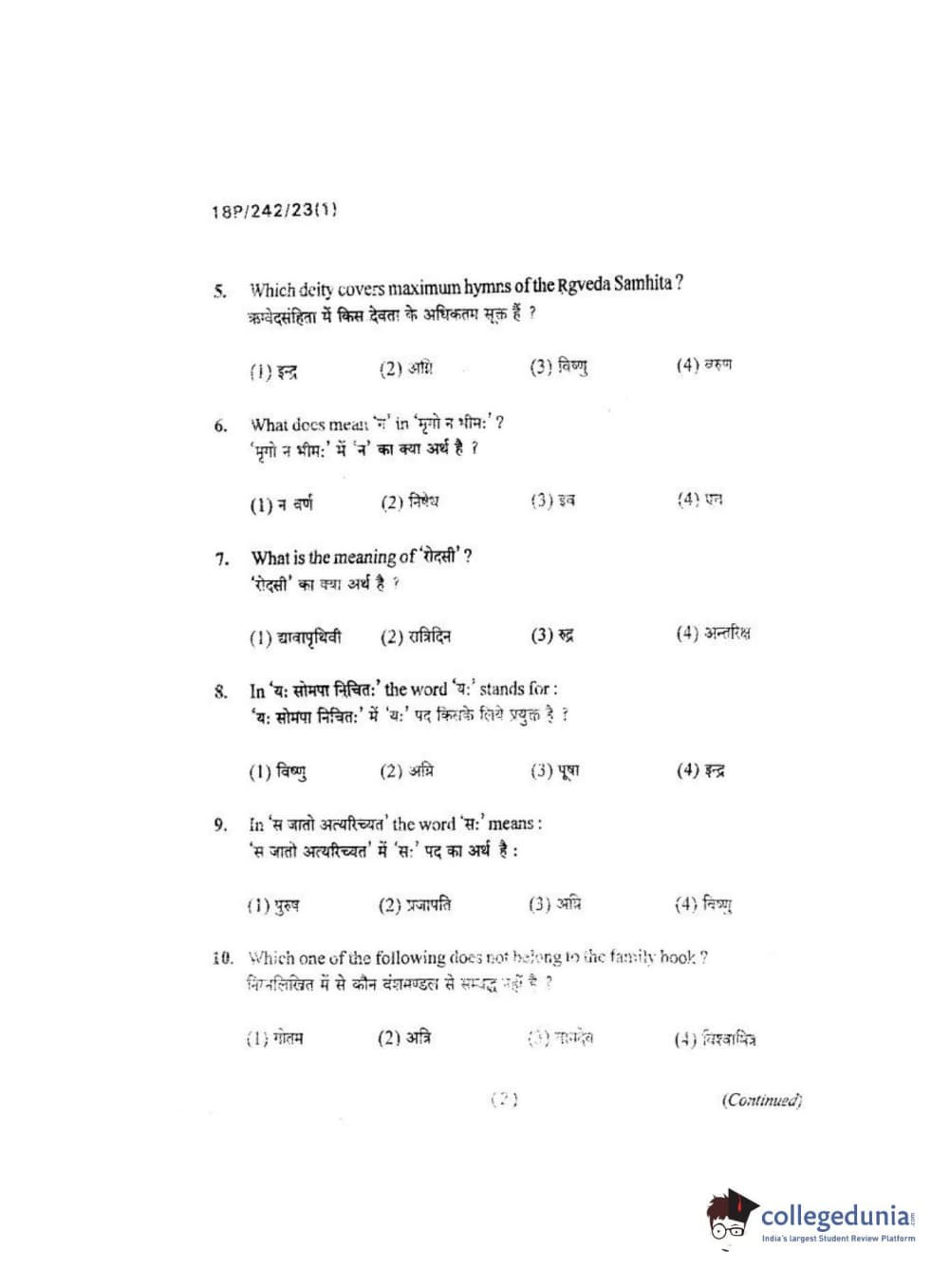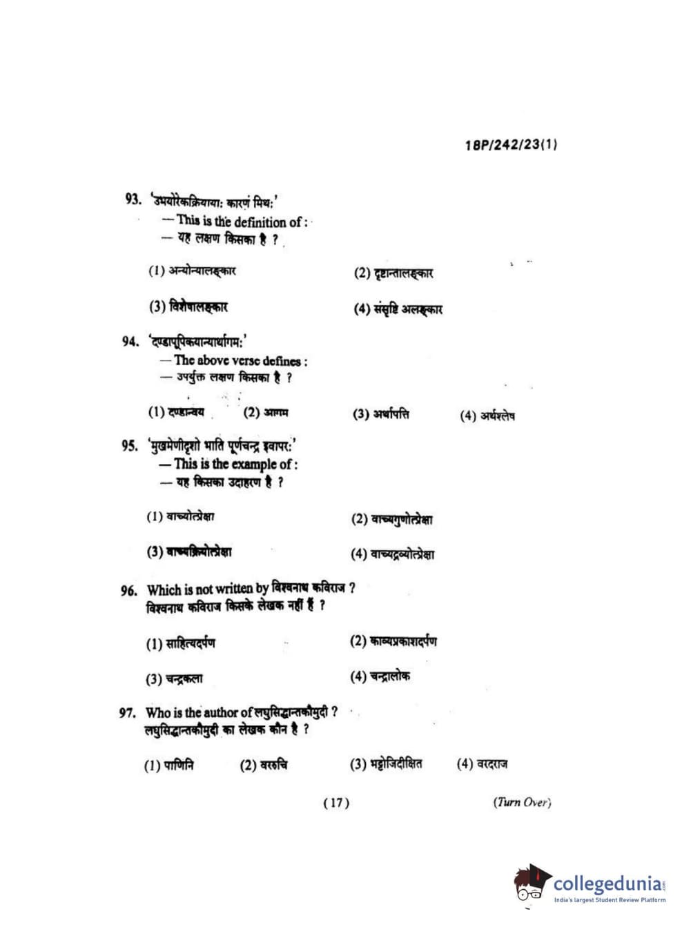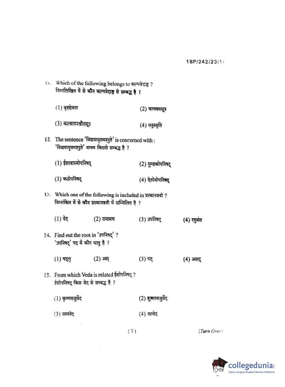 BHU PET 2018 MA SANSKRIT Question Paper with Answer Key PDF