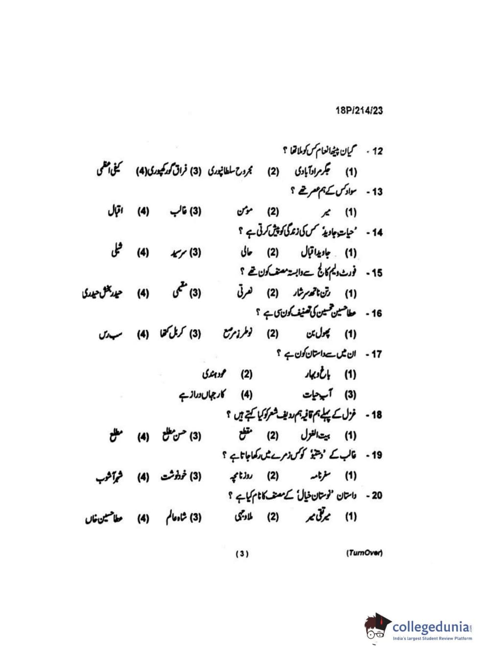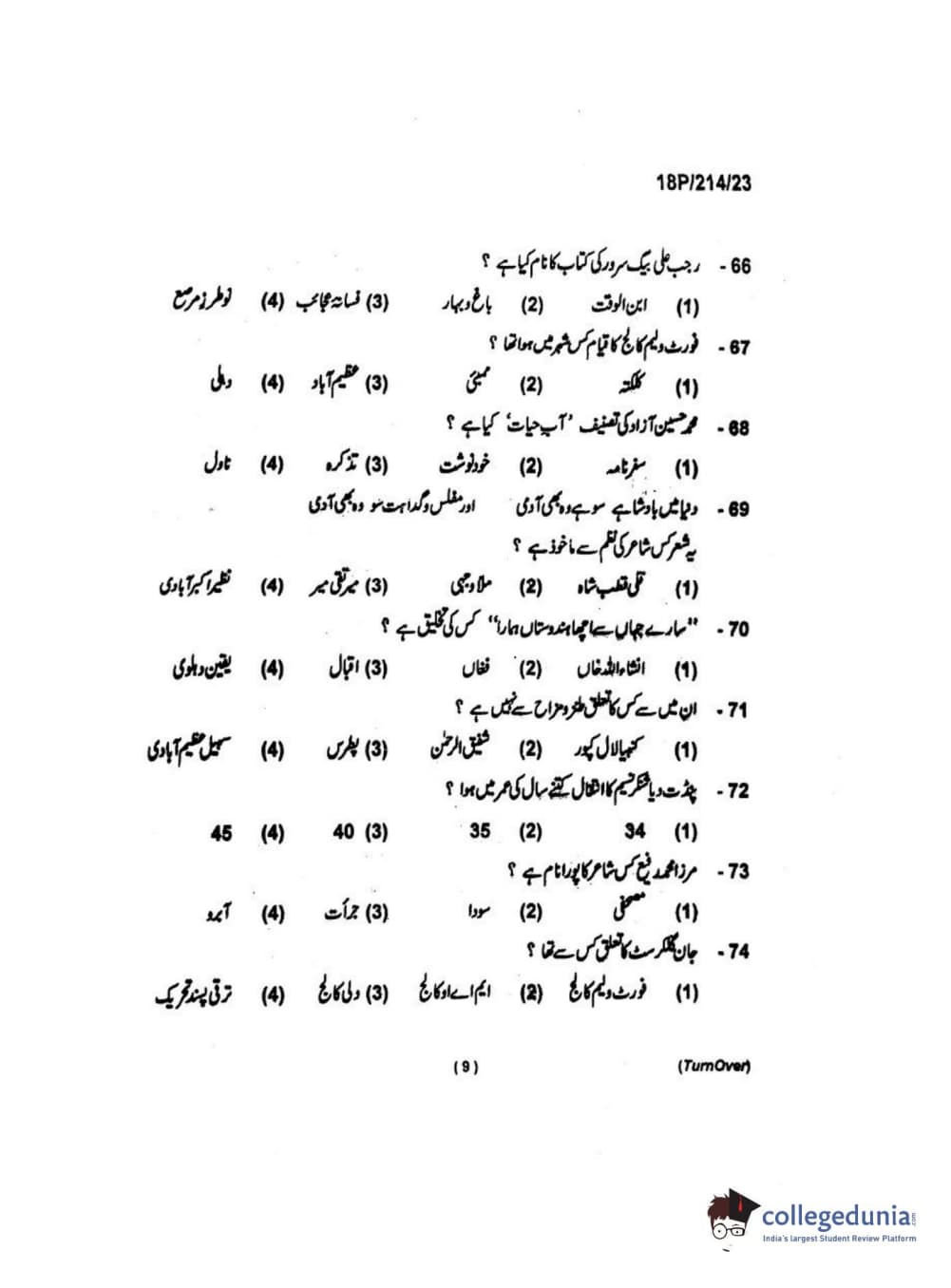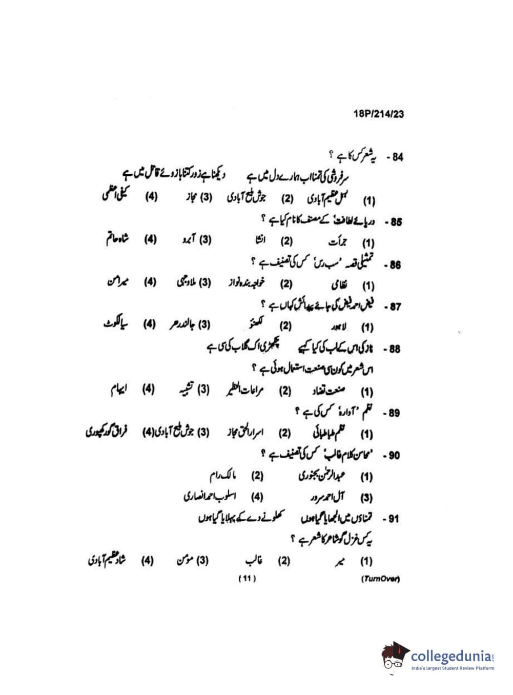 BHU PET 2018 MA URDU Question Paper with Answer Key PDF