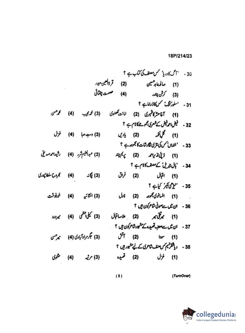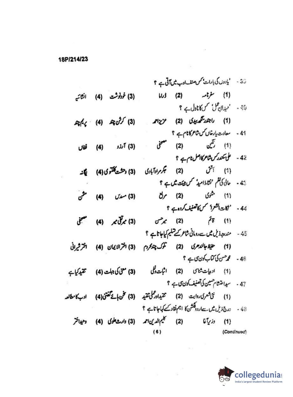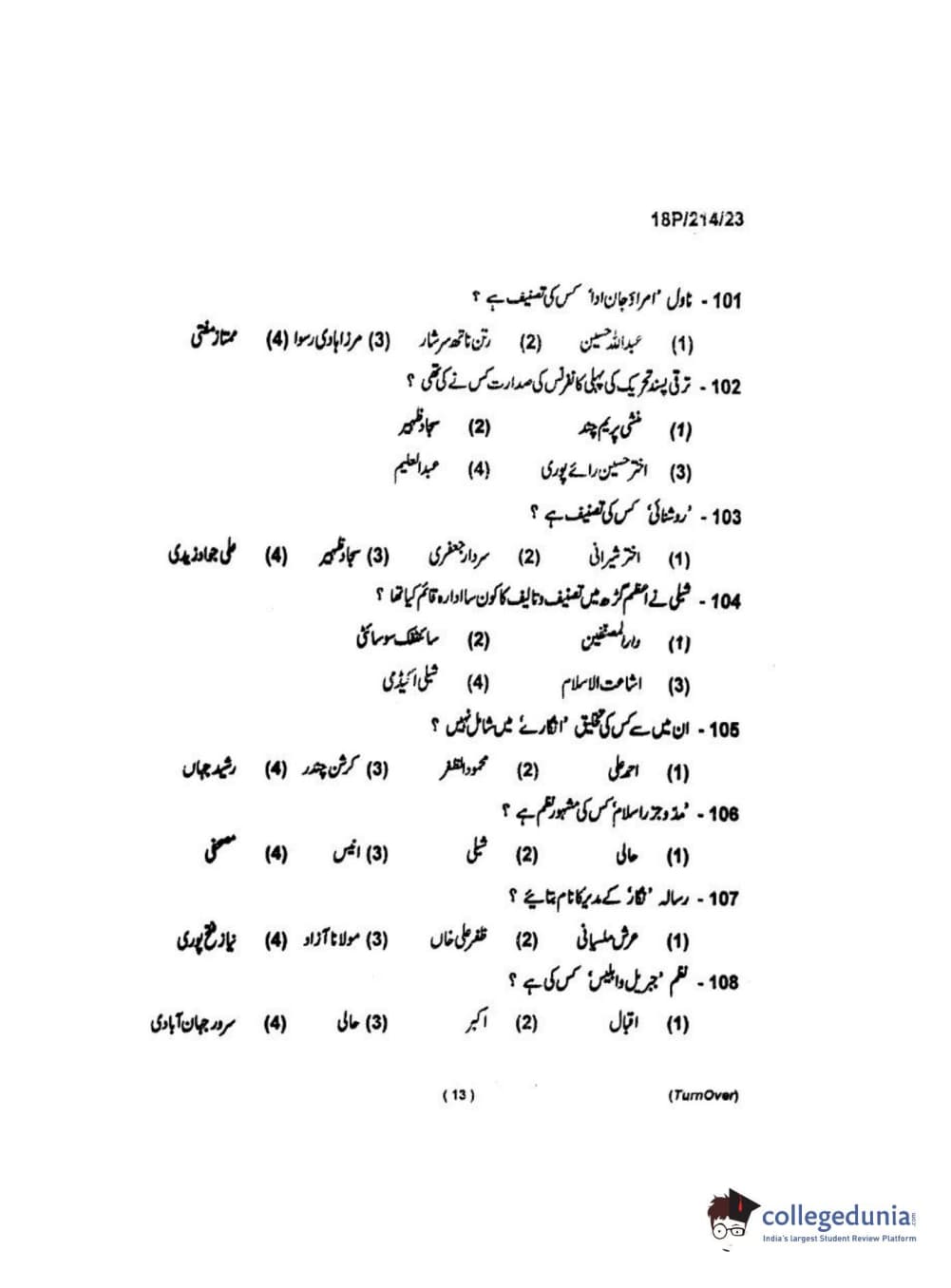 BHU PET 2018 MA URDU Question Paper with Answer Key PDF