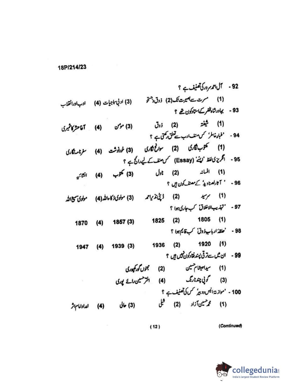BHU PET 2018 MA URDU Question paper with answer key pdf conducted on May 21, 2018 is available for download. The exam was successfully organized by Banaras Hindu University (BHU). The question paper comprised a total of 120 questions.