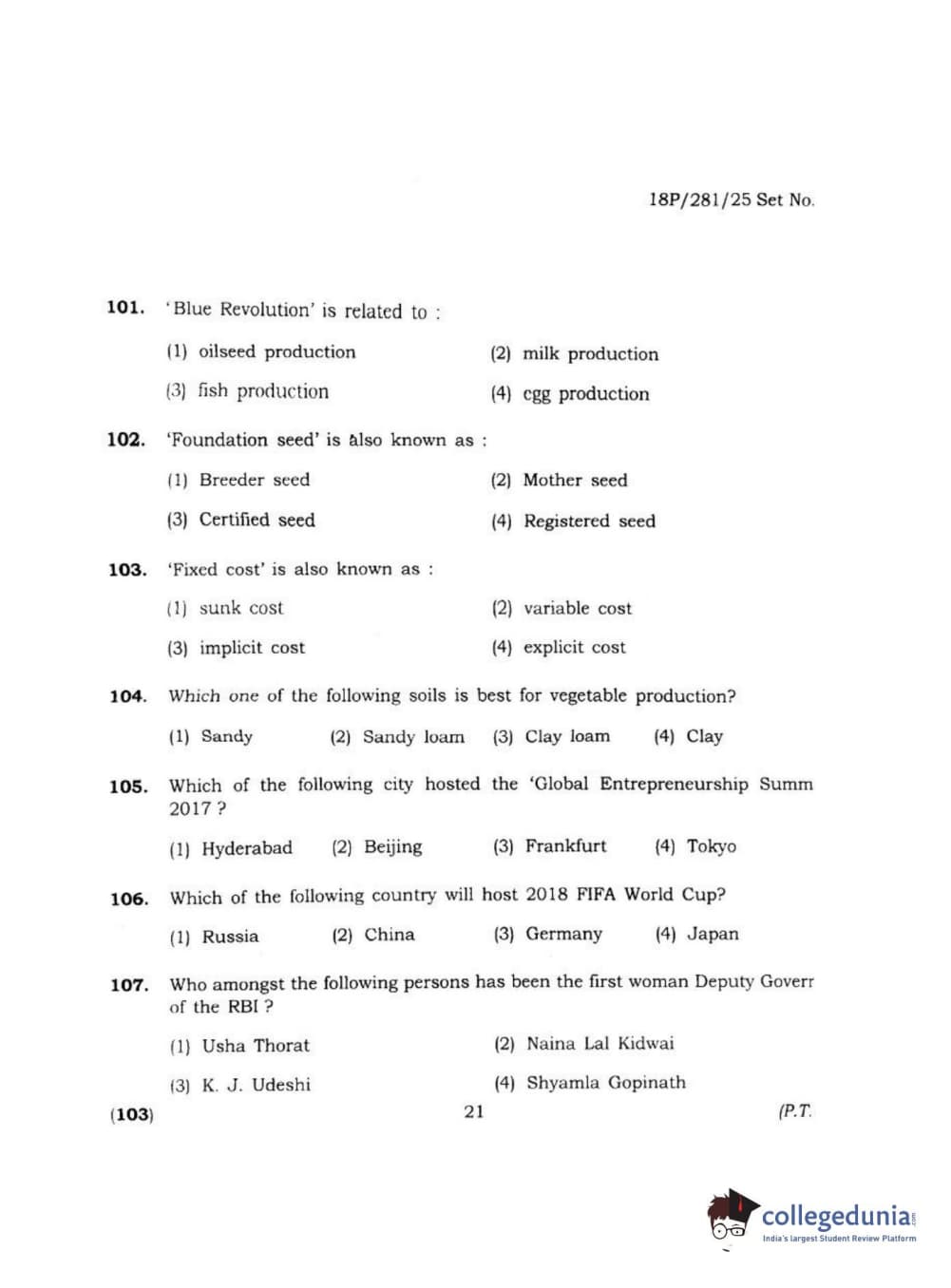 BHU PET 2018 MBA Agri. Business Question Paper with Answer Key PDF