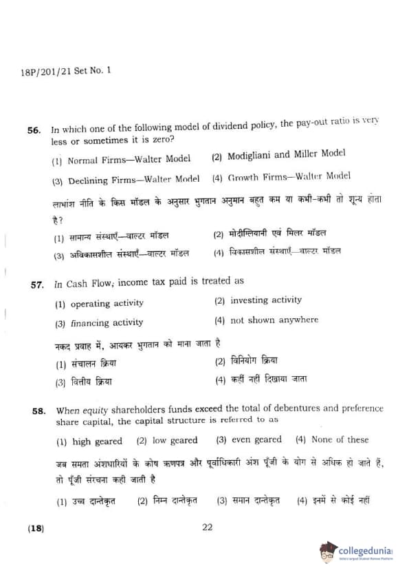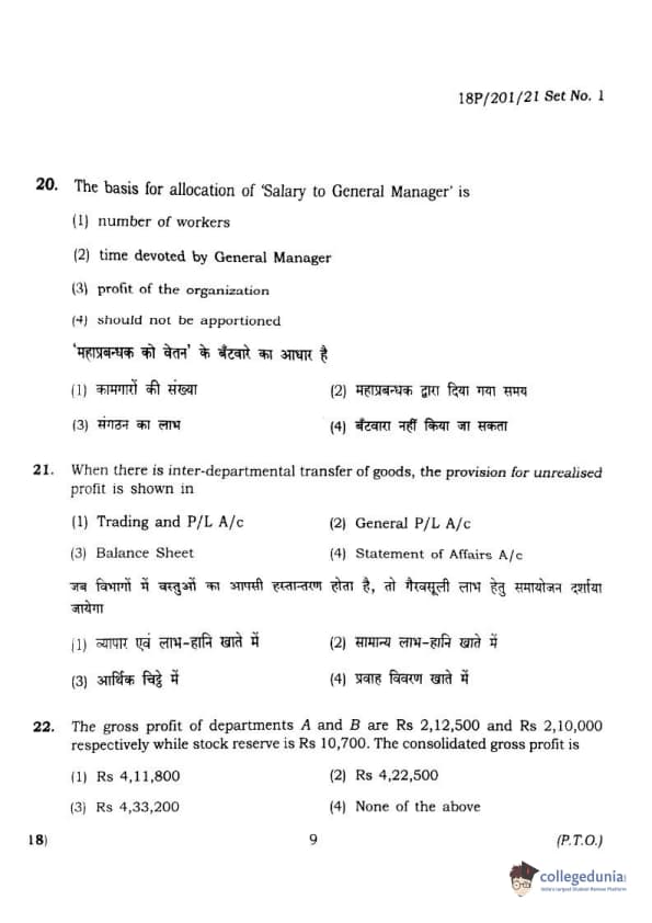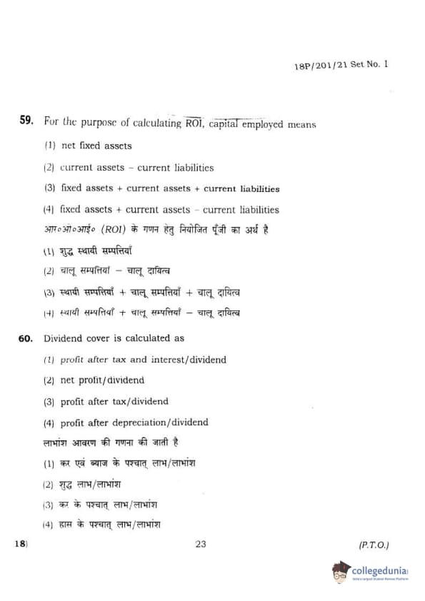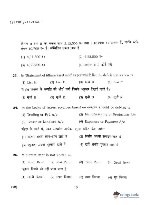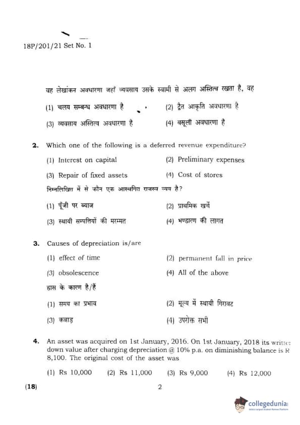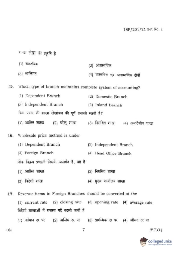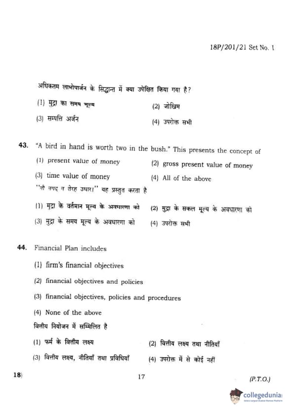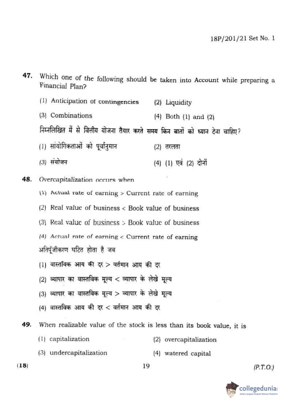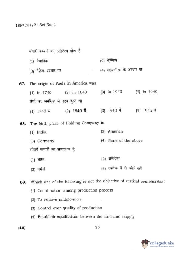 BHU PET 2018 M.COM Question Paper with Answer Key PDFs in Hindi