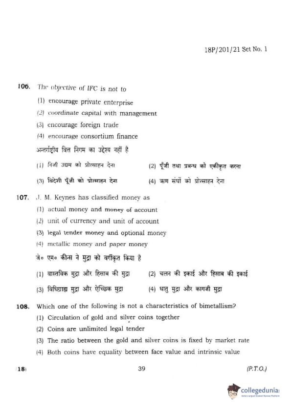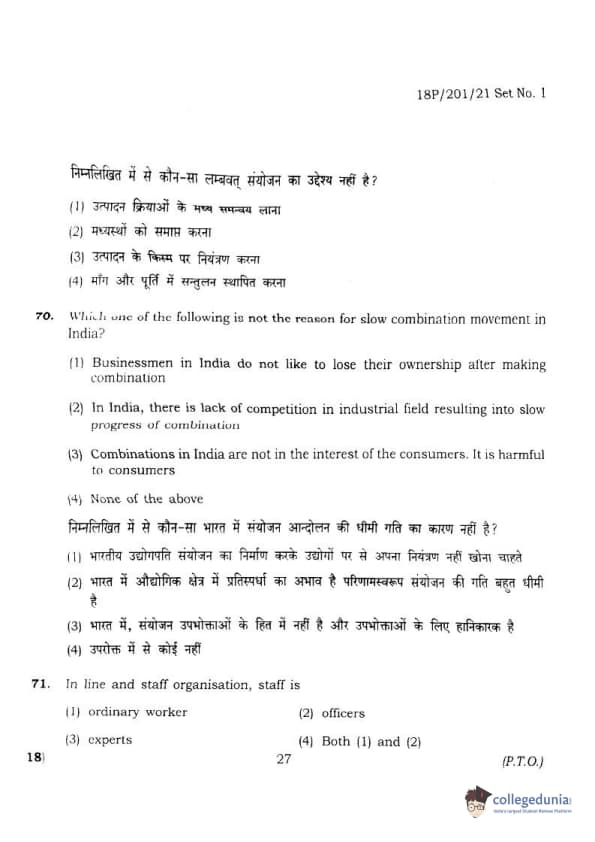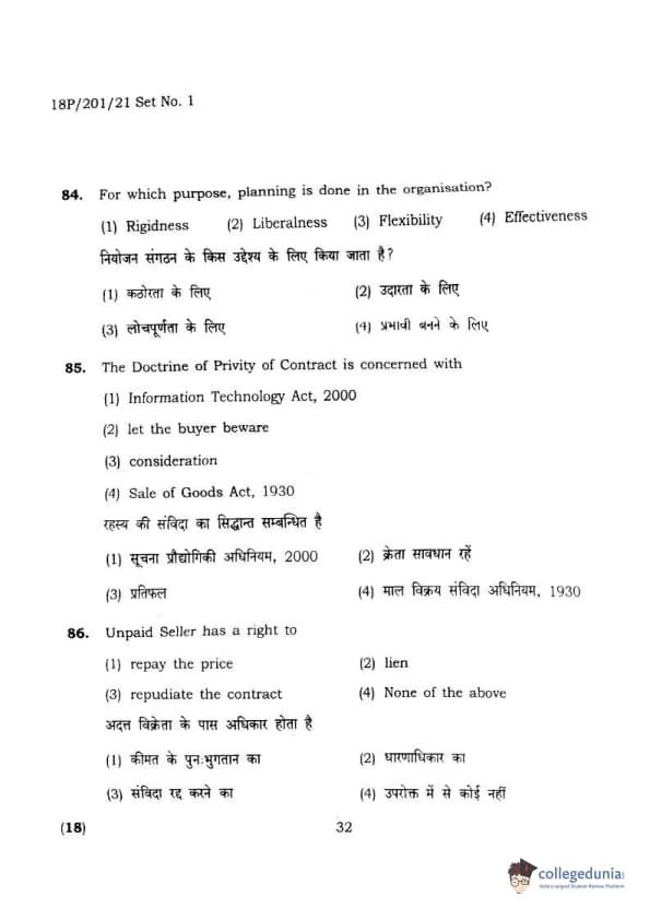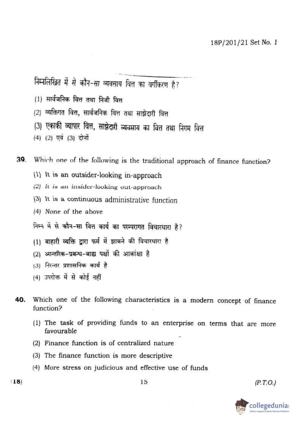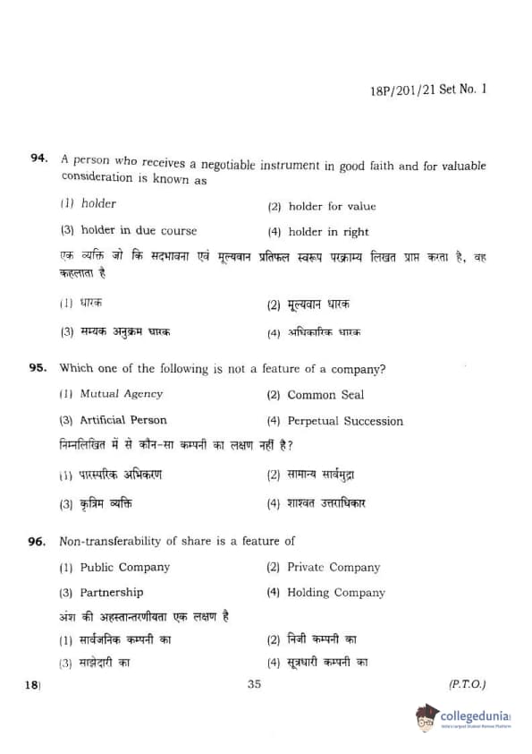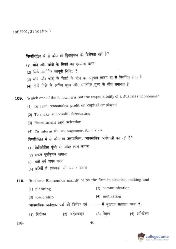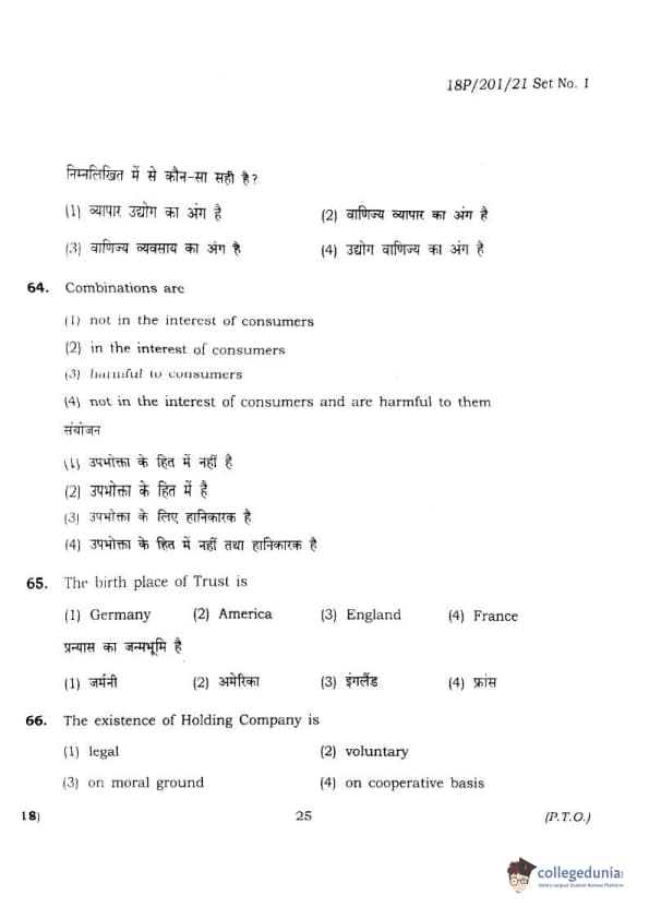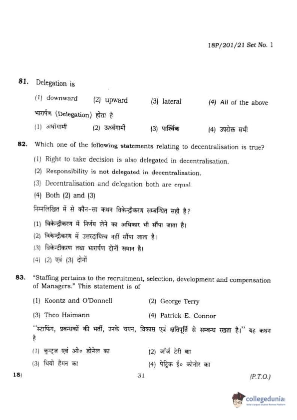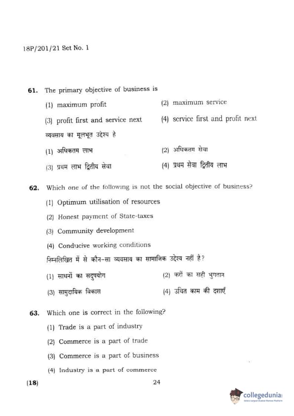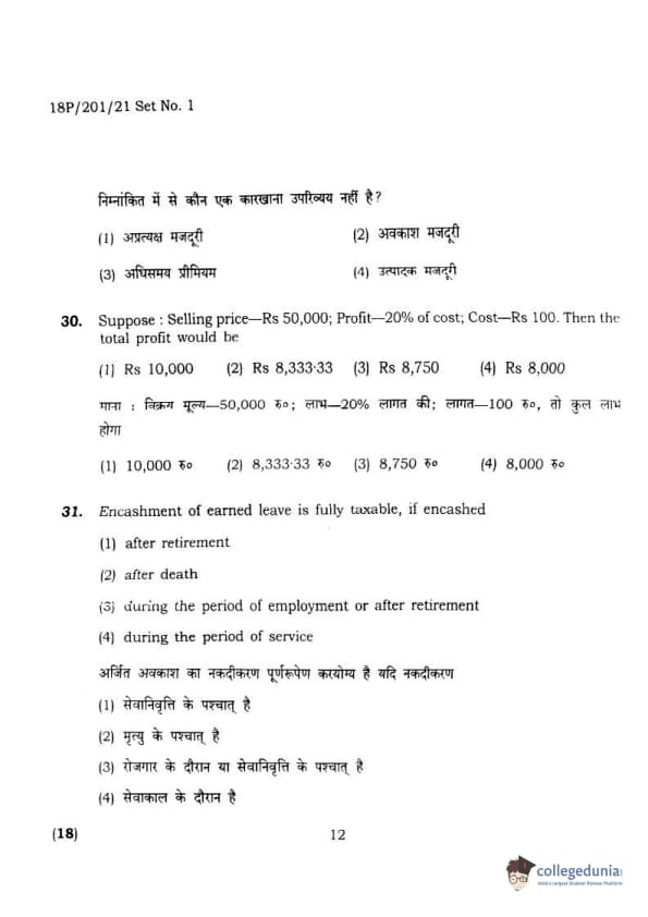 BHU PET 2018 M.COM Question Paper with Answer Key PDFs in Hindi