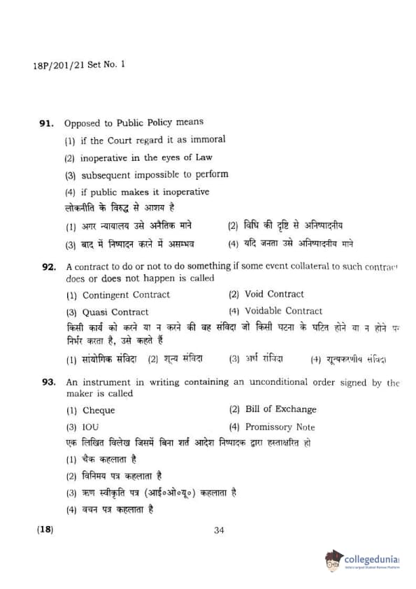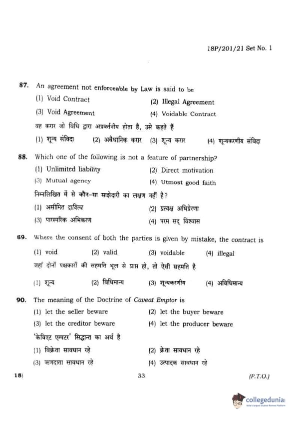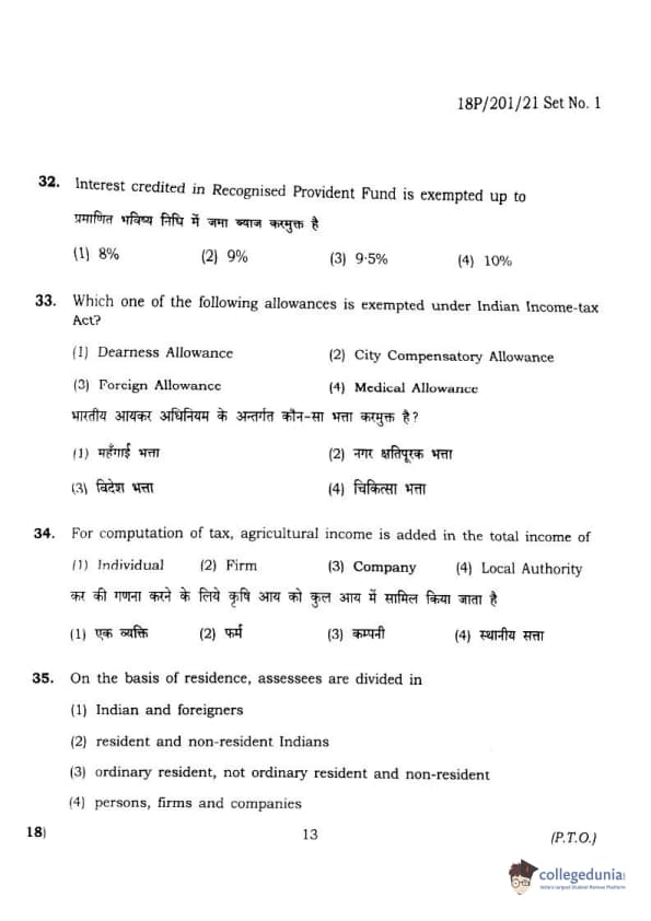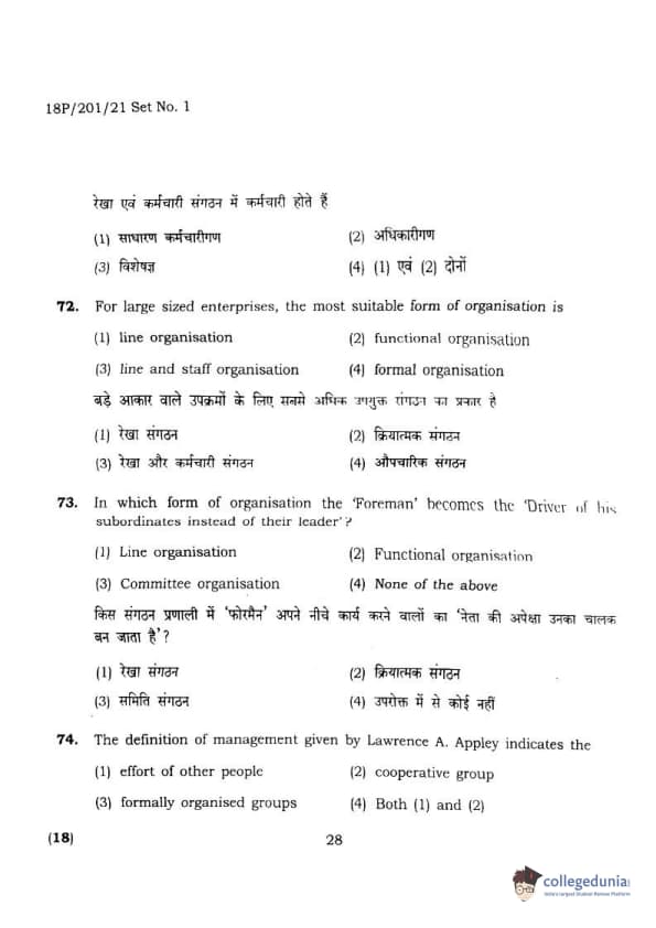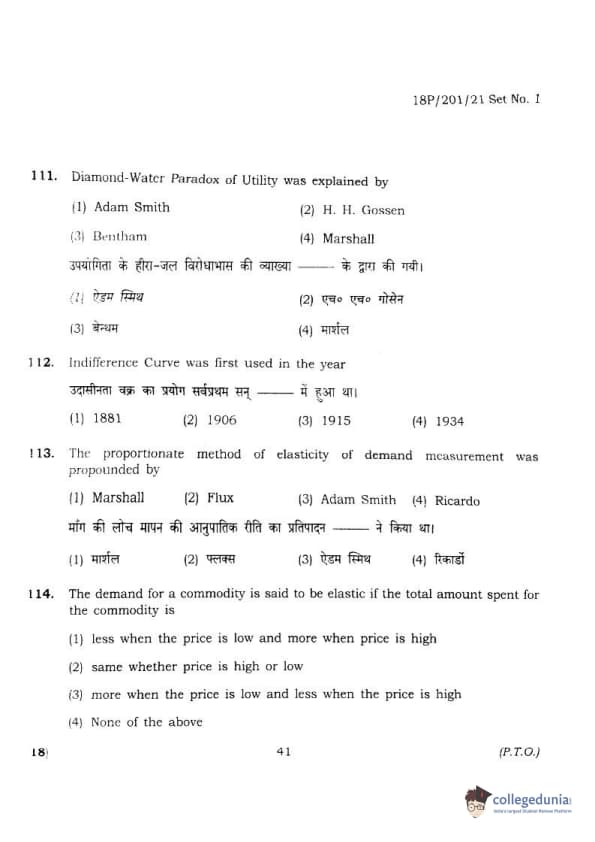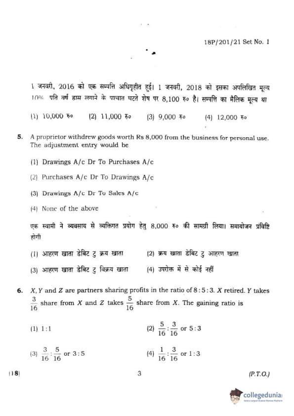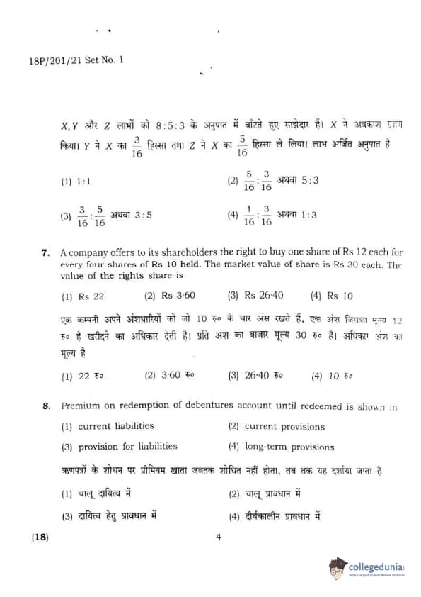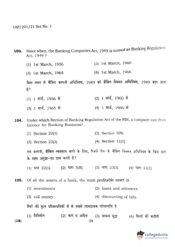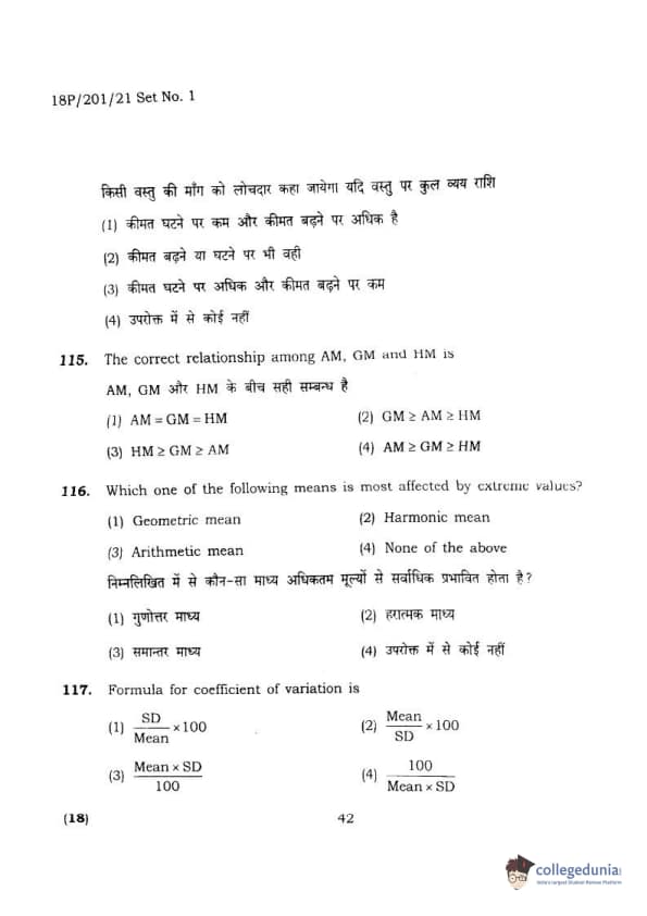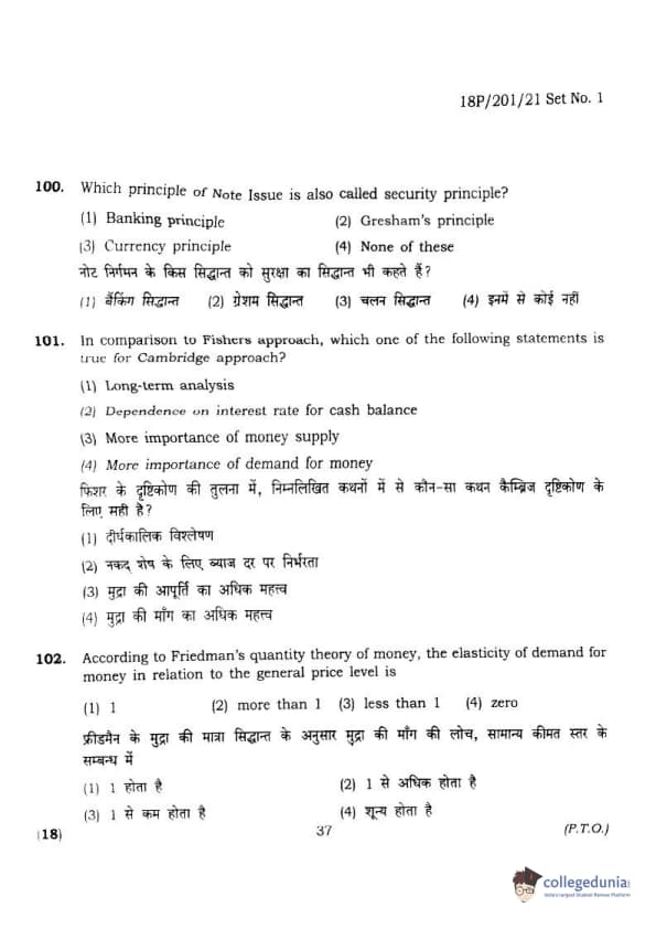 BHU PET 2018 M.COM Question Paper with Answer Key PDFs in Hindi