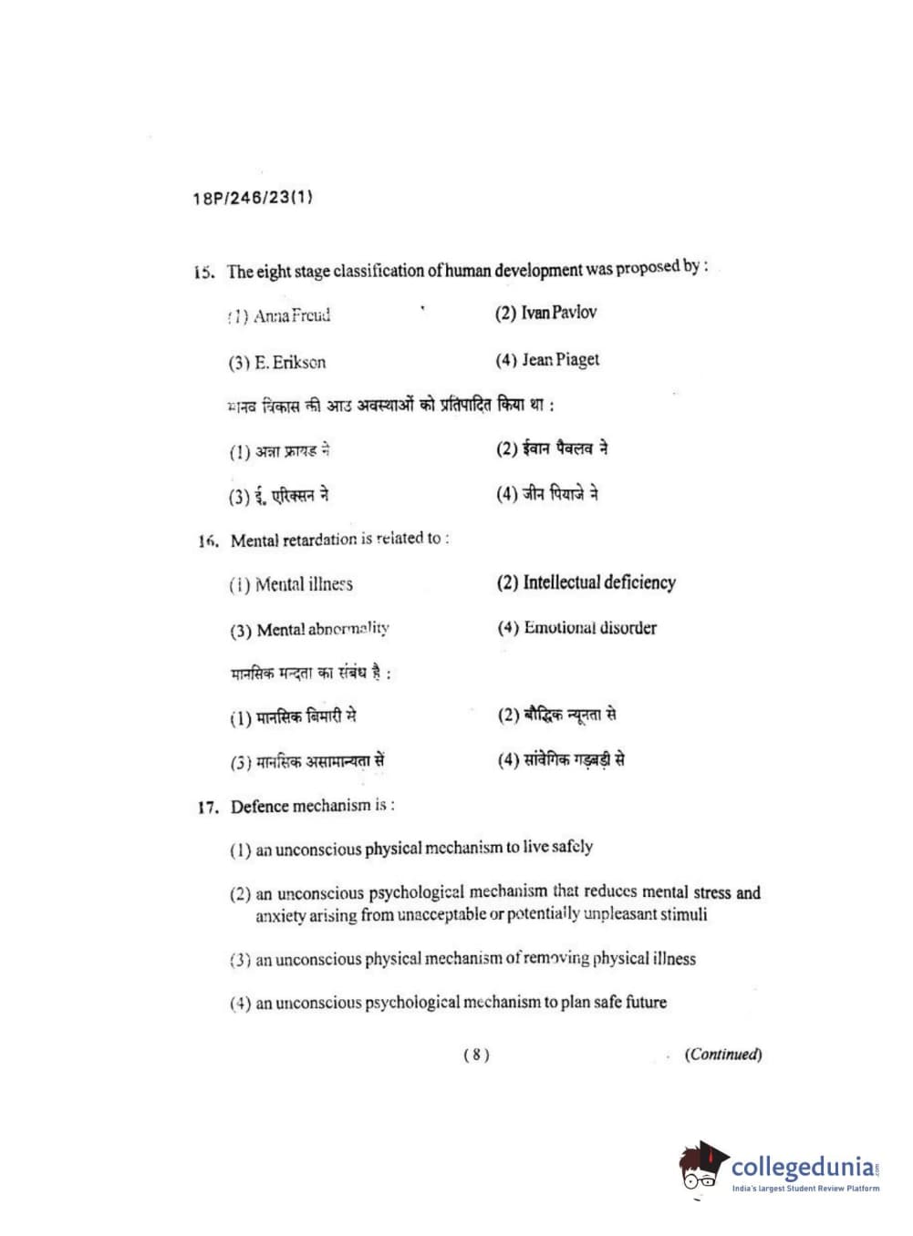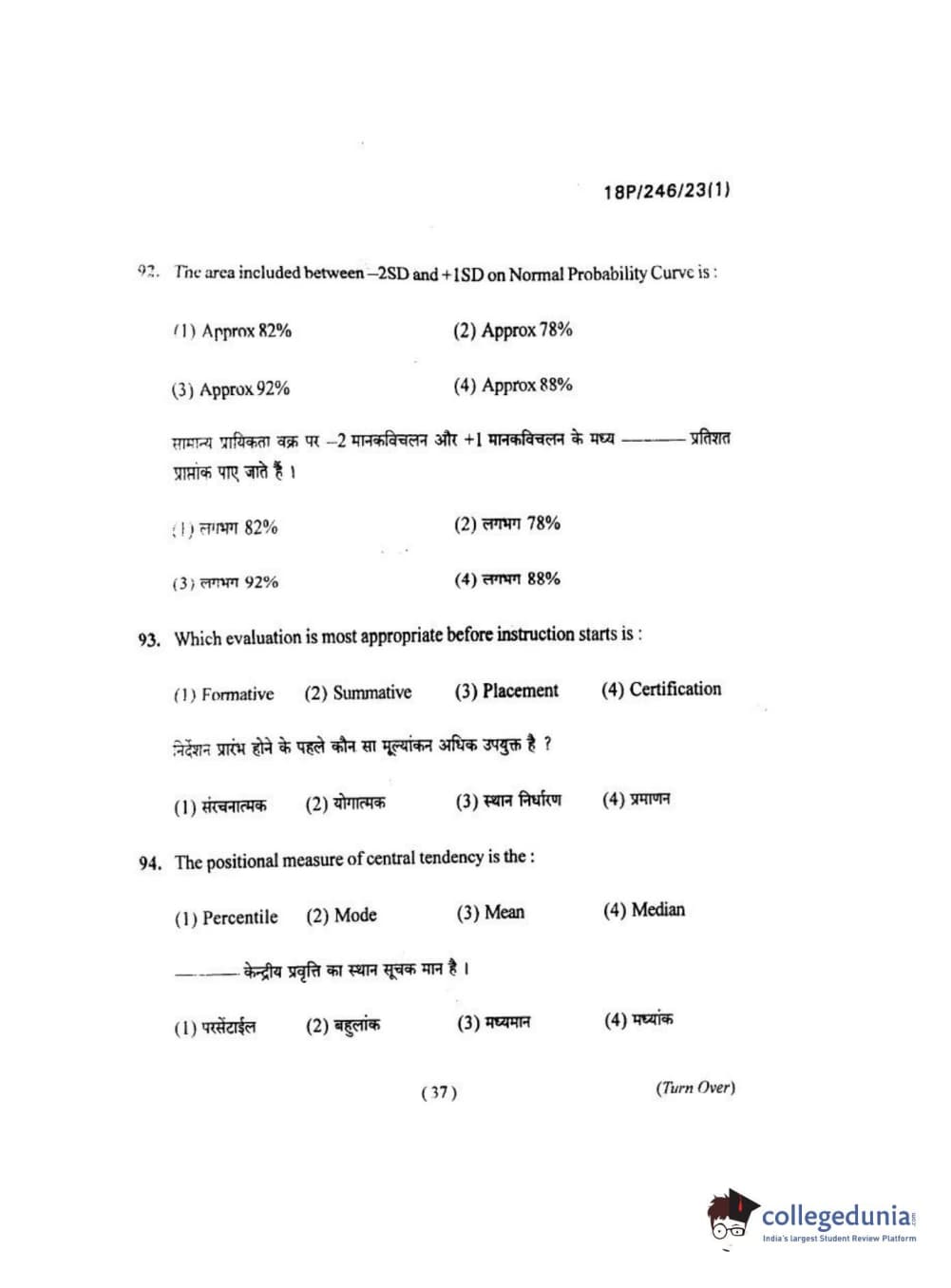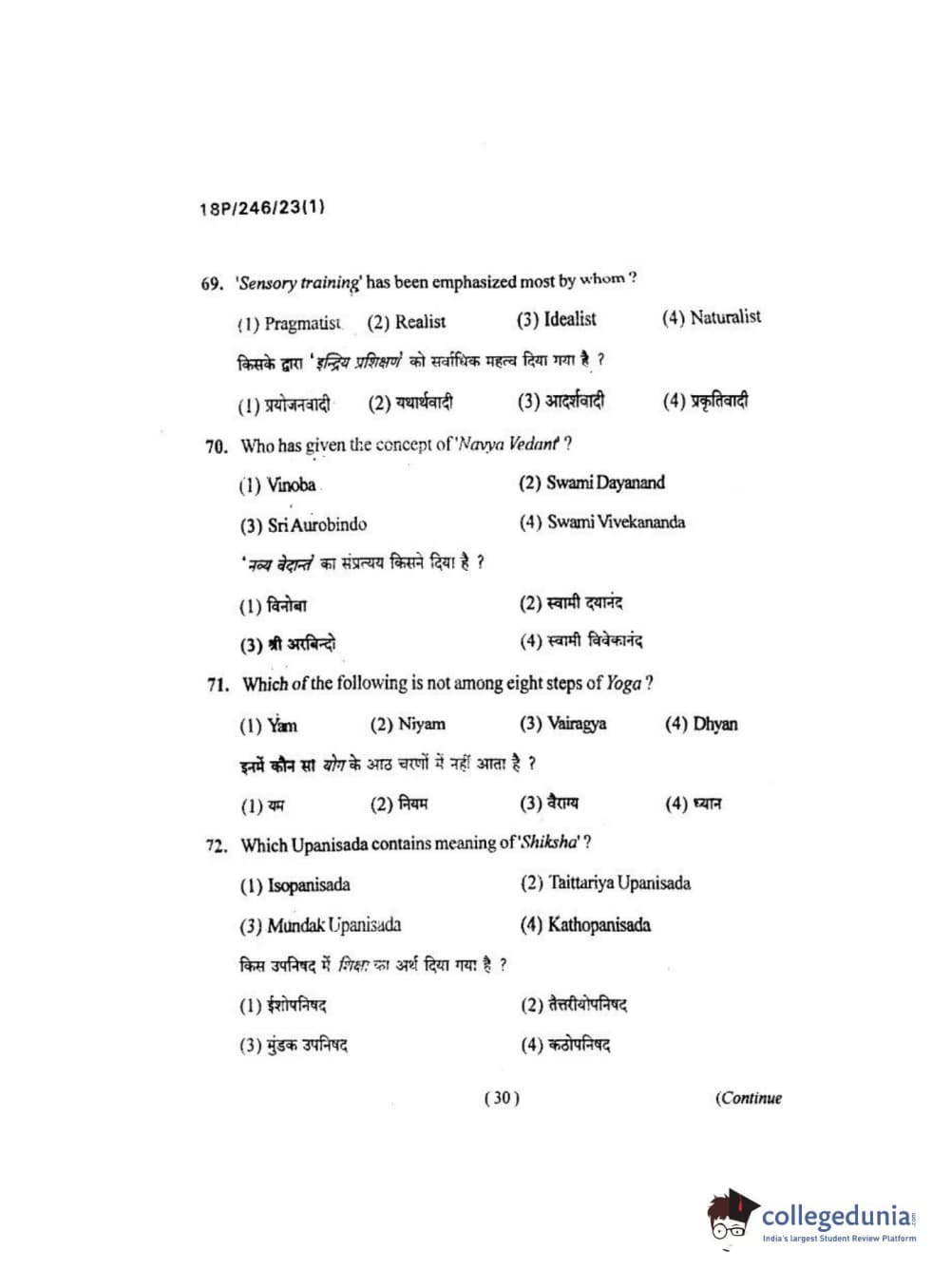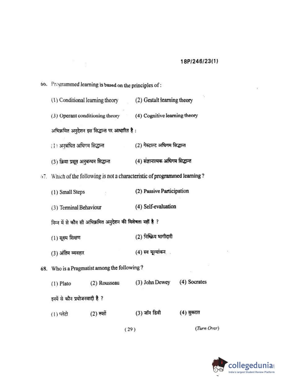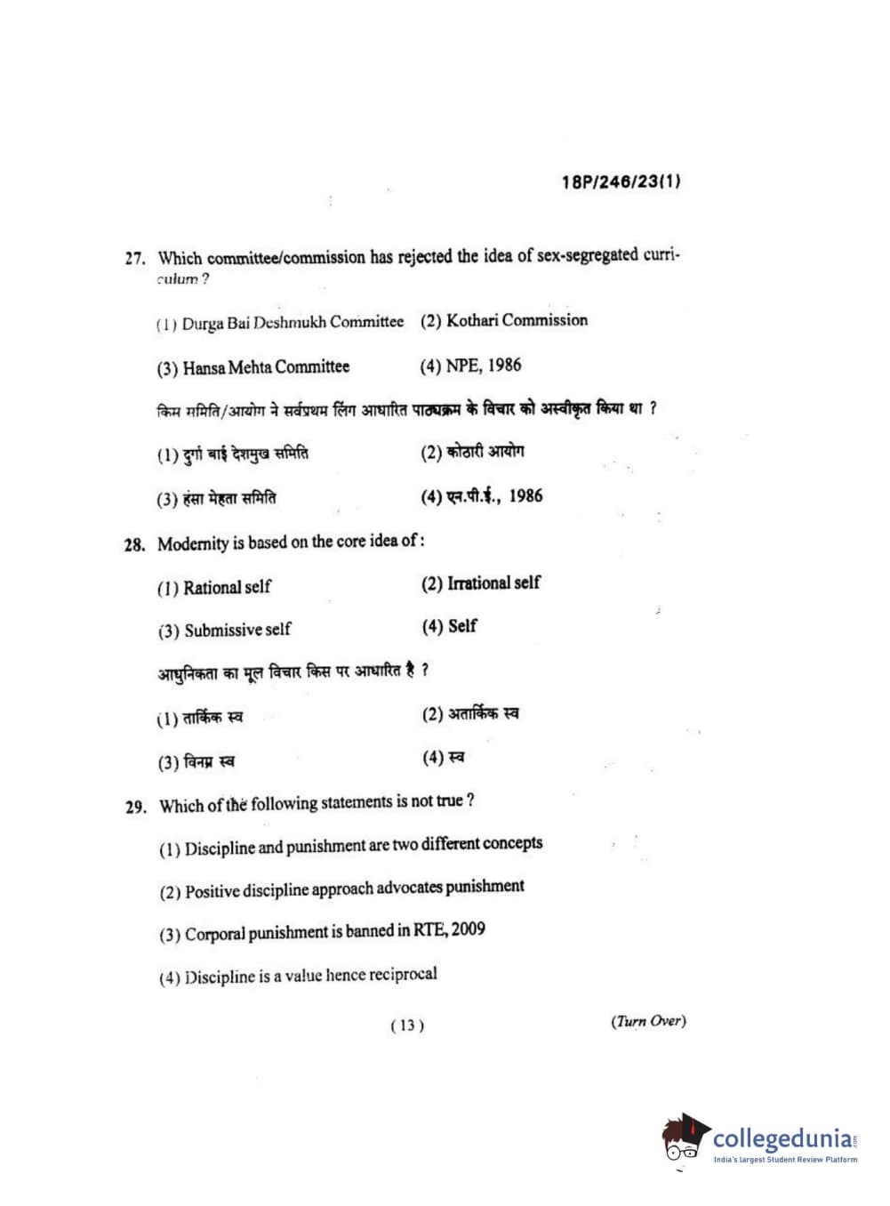 BHU PET 2018 M.ED Question Paper with Answer Key PDF in Hindi