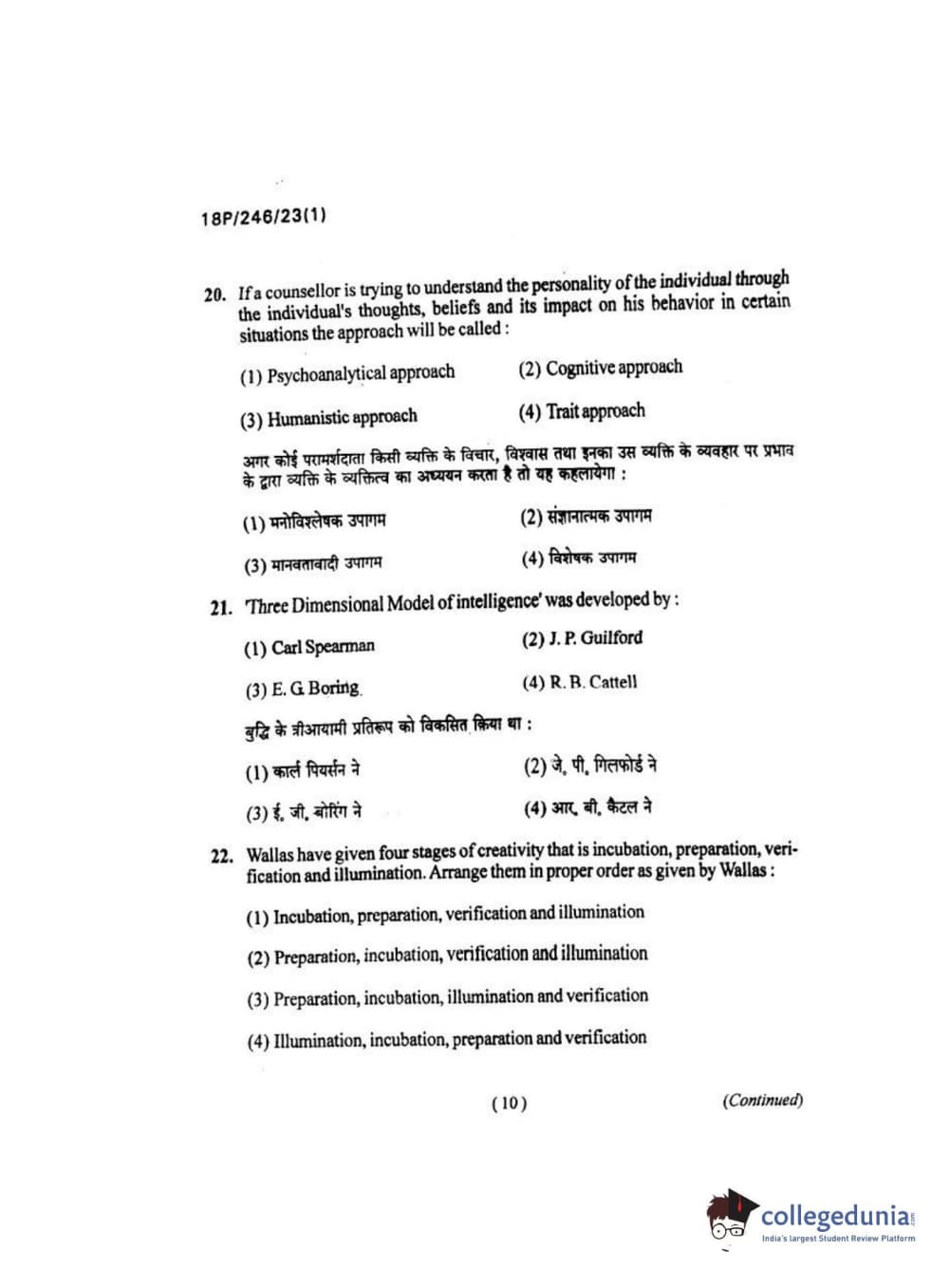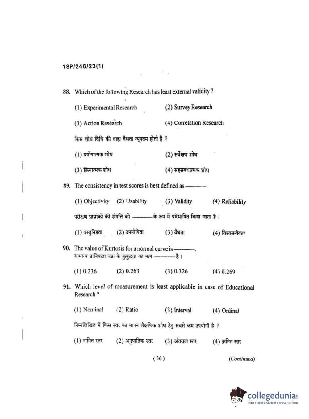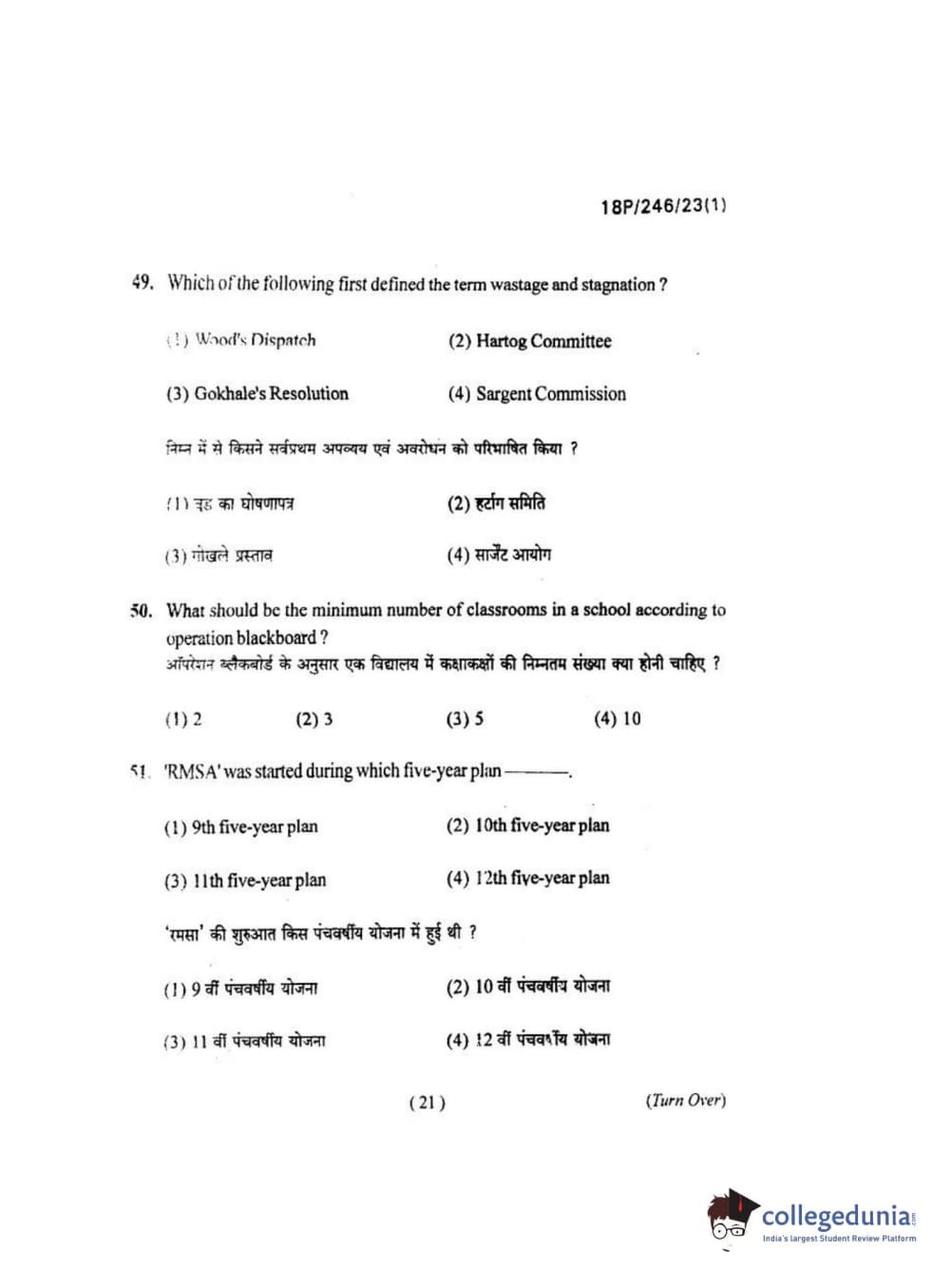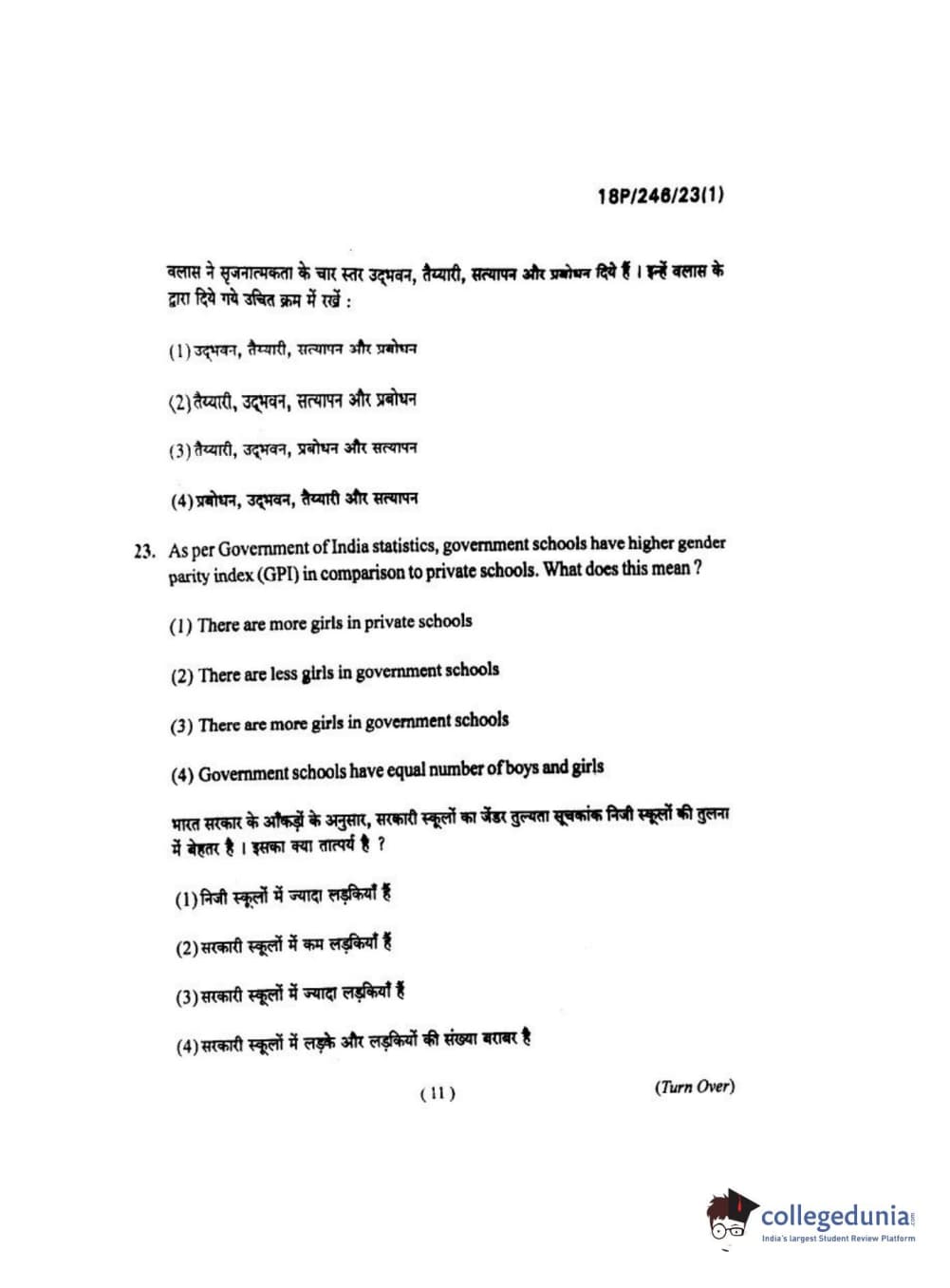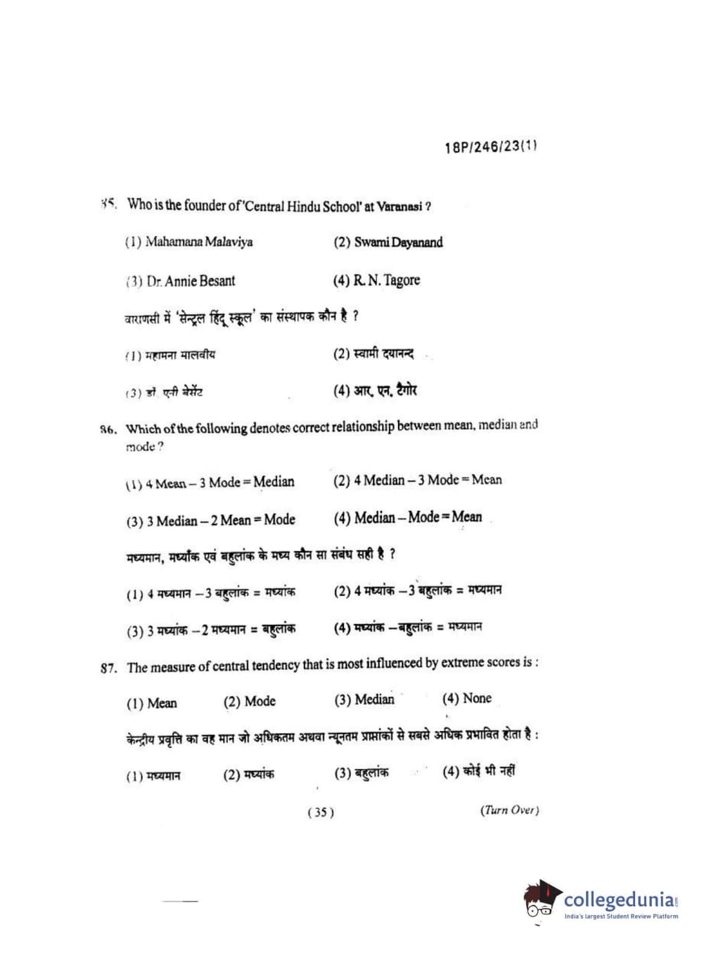 BHU PET 2018 M.ED Question Paper with Answer Key PDF in Hindi