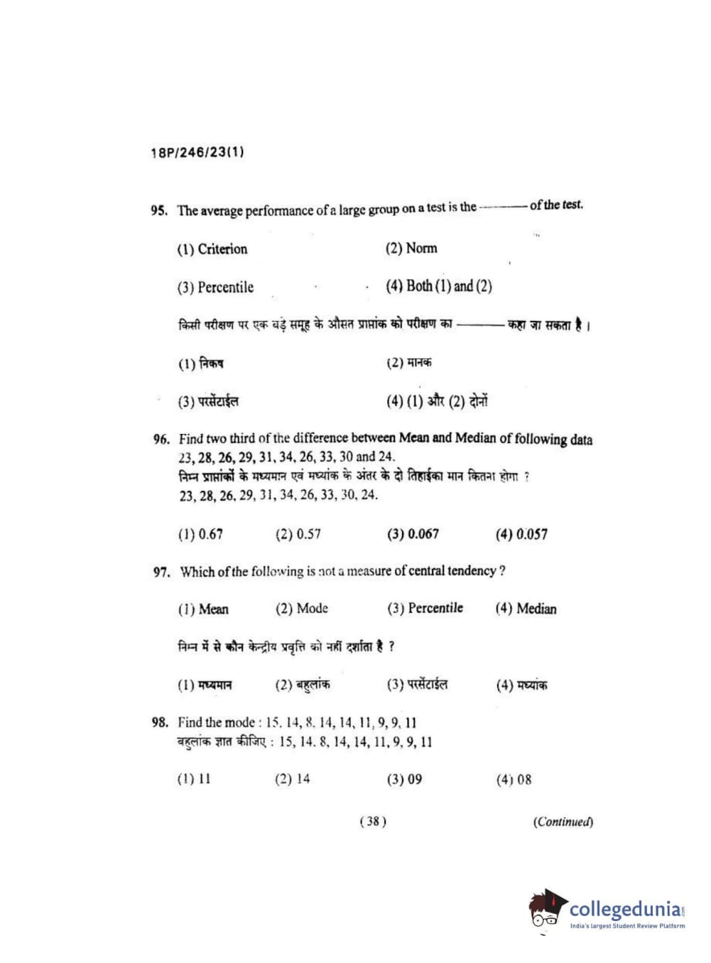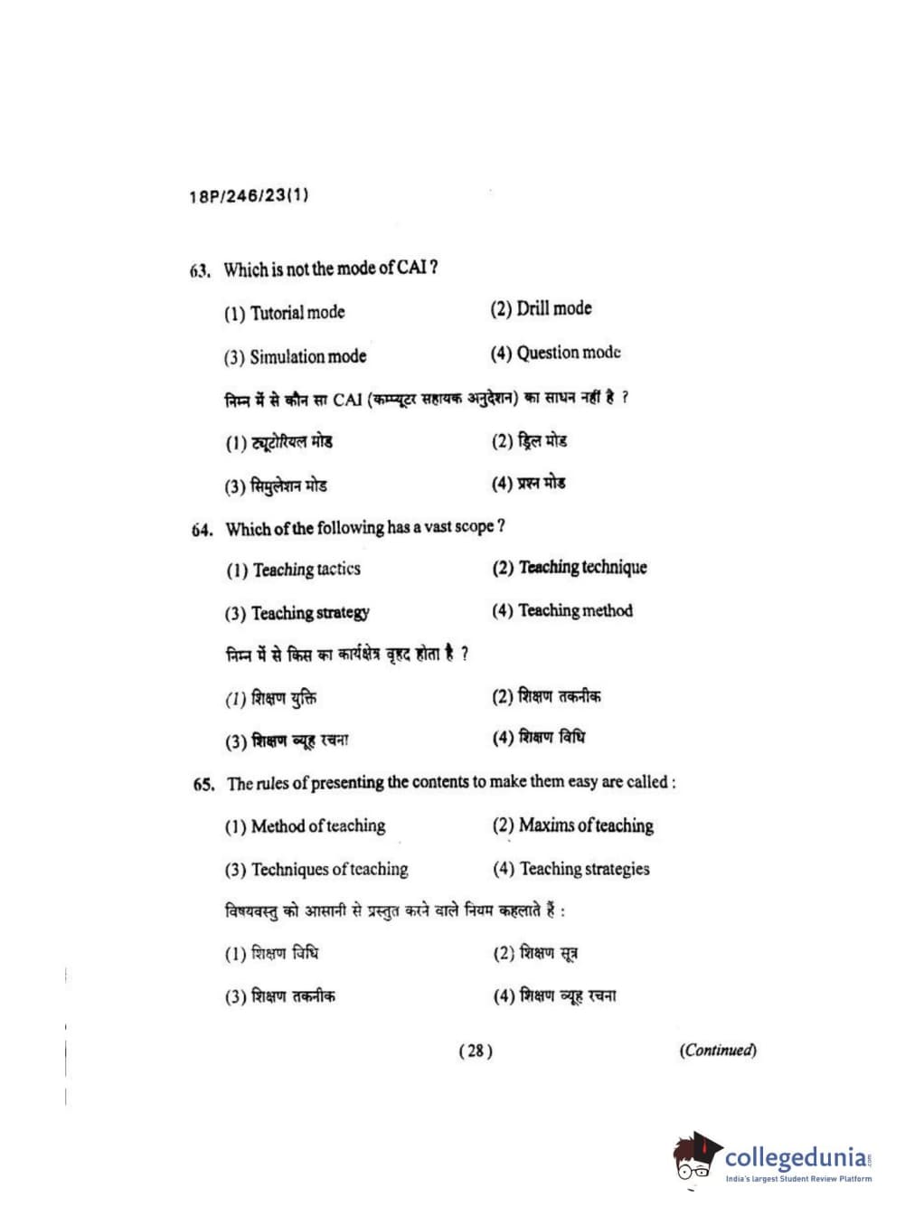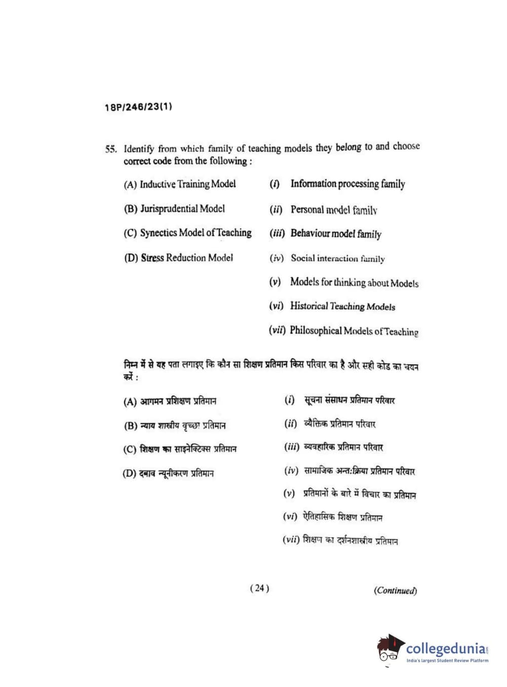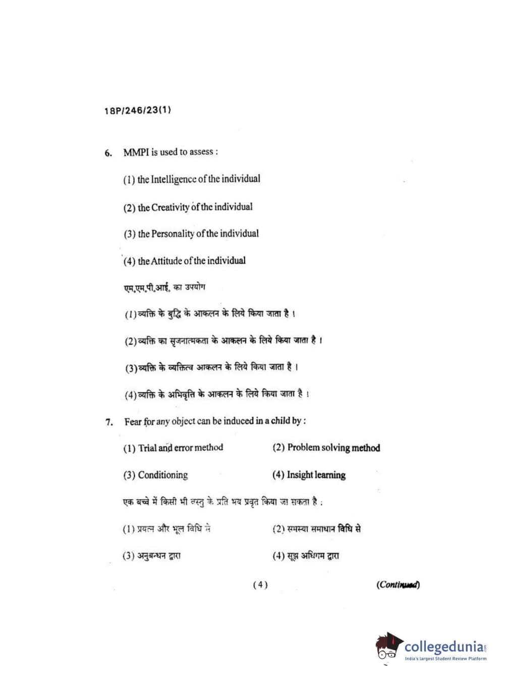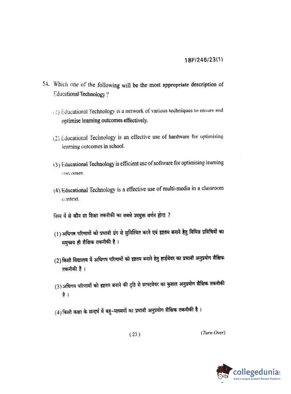 BHU PET 2018 M.ED Question Paper with Answer Key PDF in Hindi