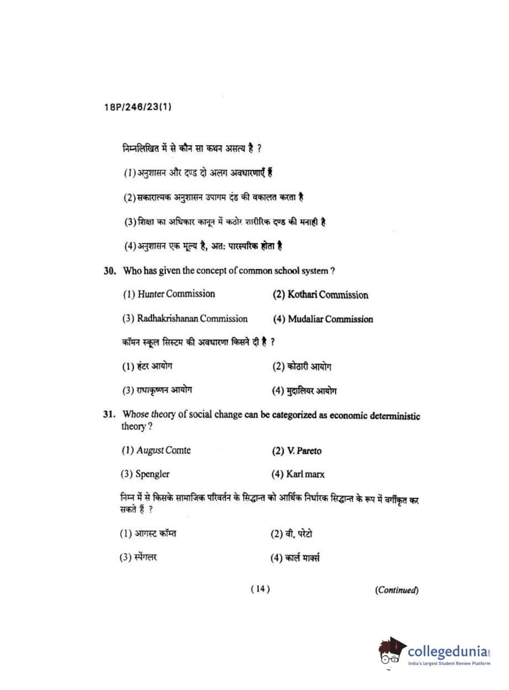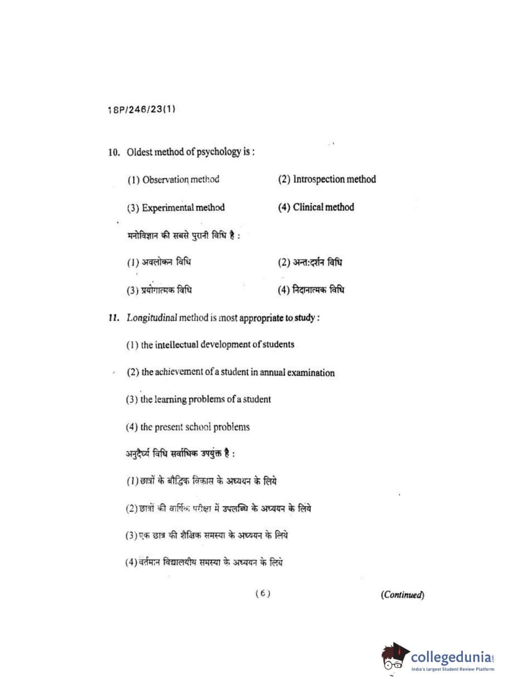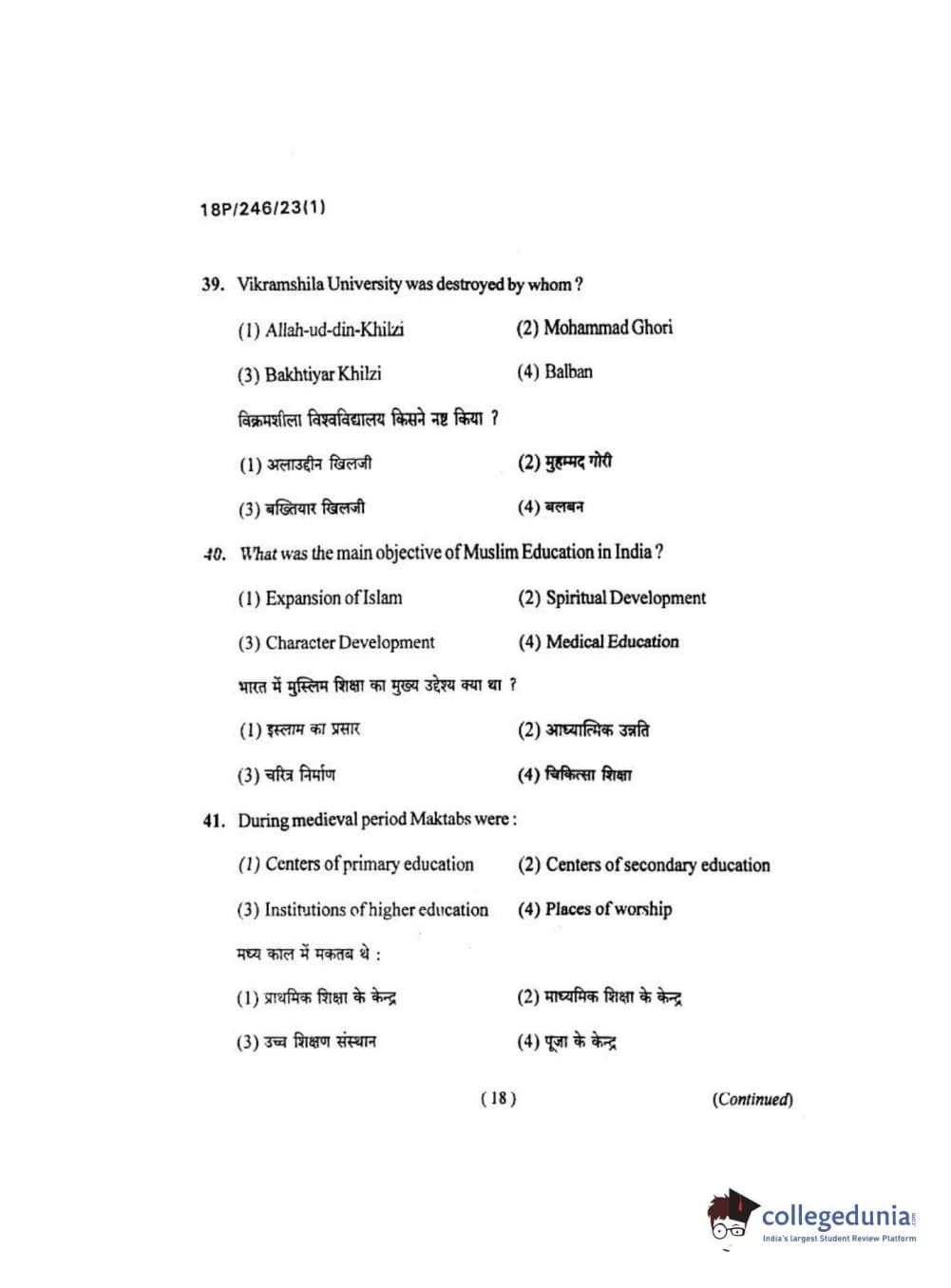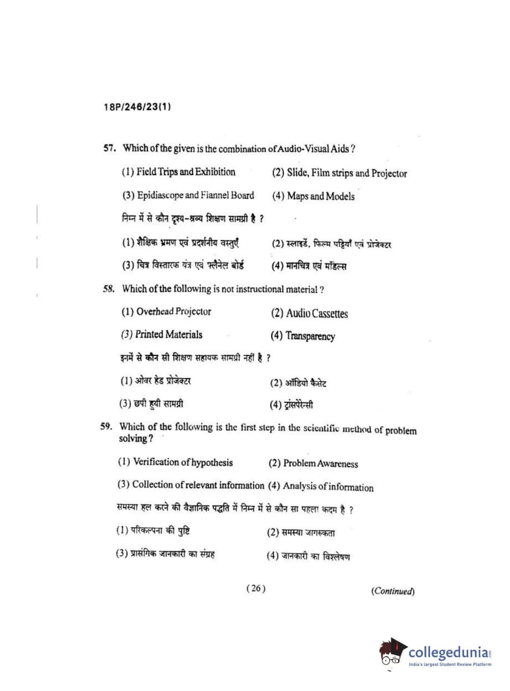 BHU PET 2018 M.ED Question Paper with Answer Key PDF in Hindi