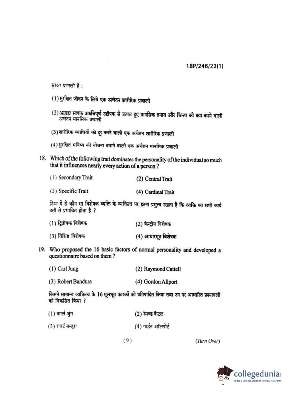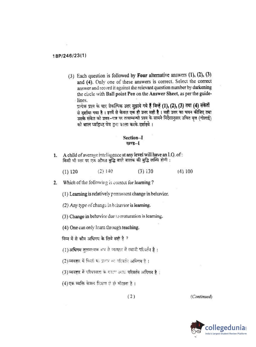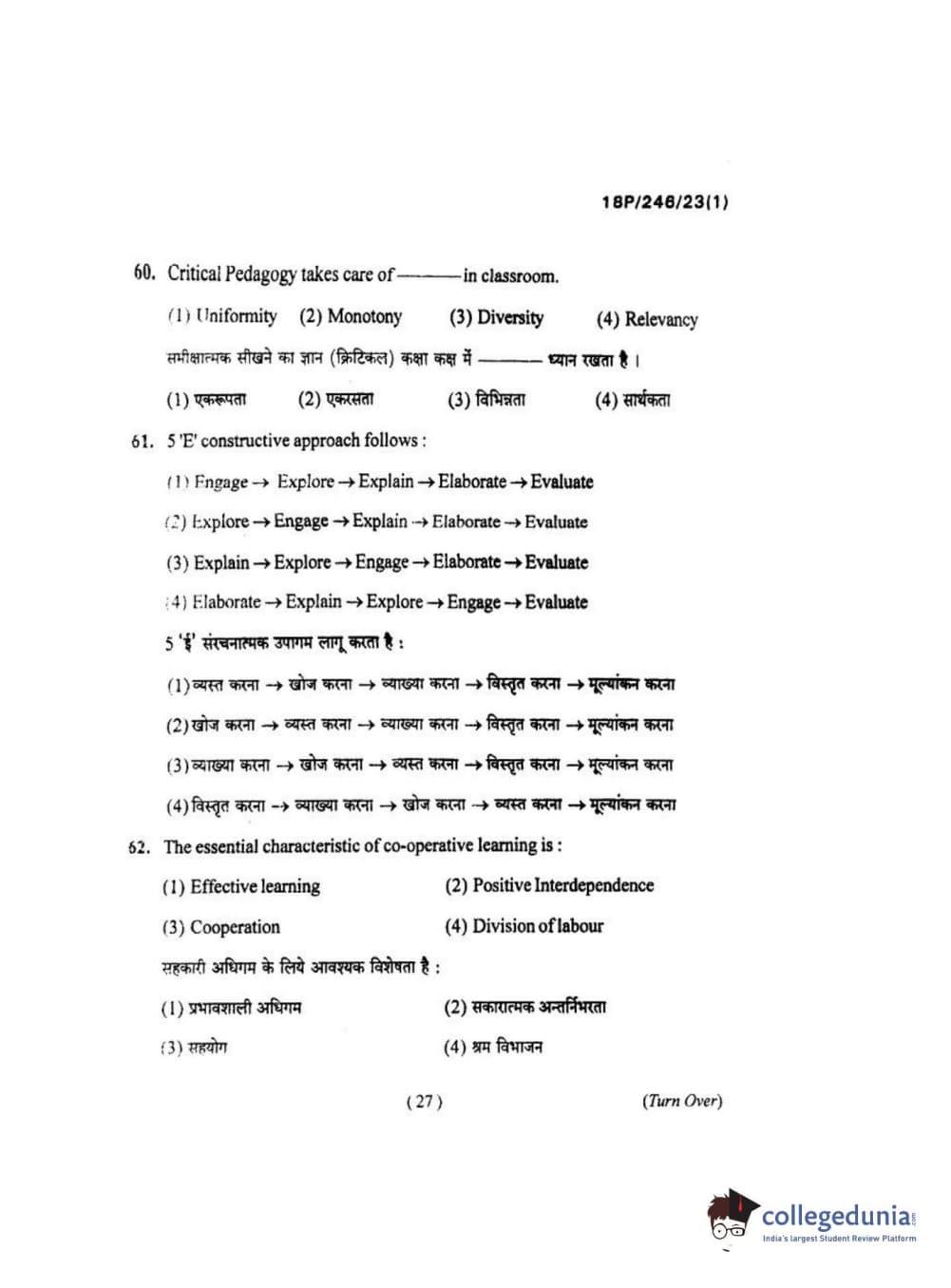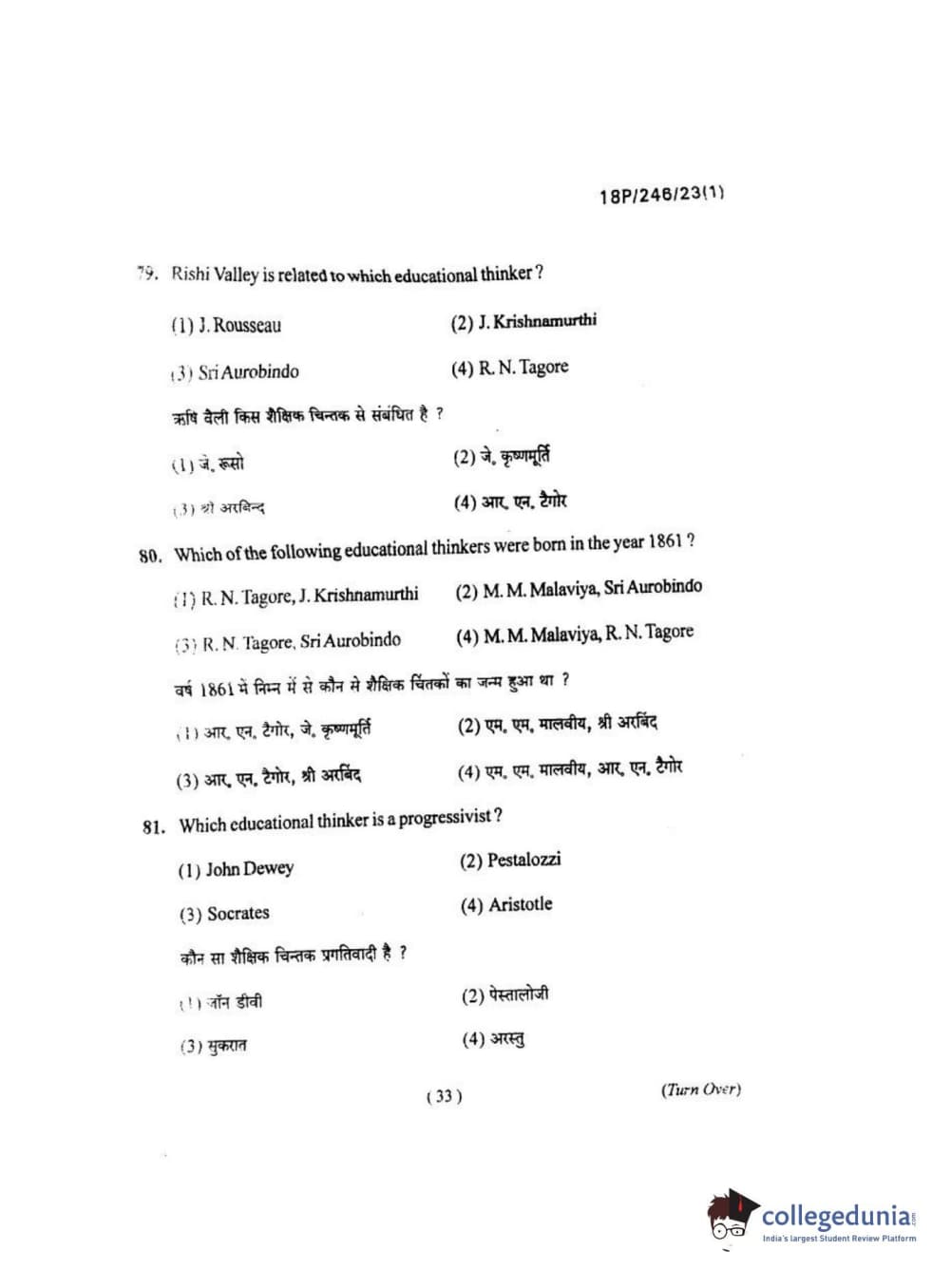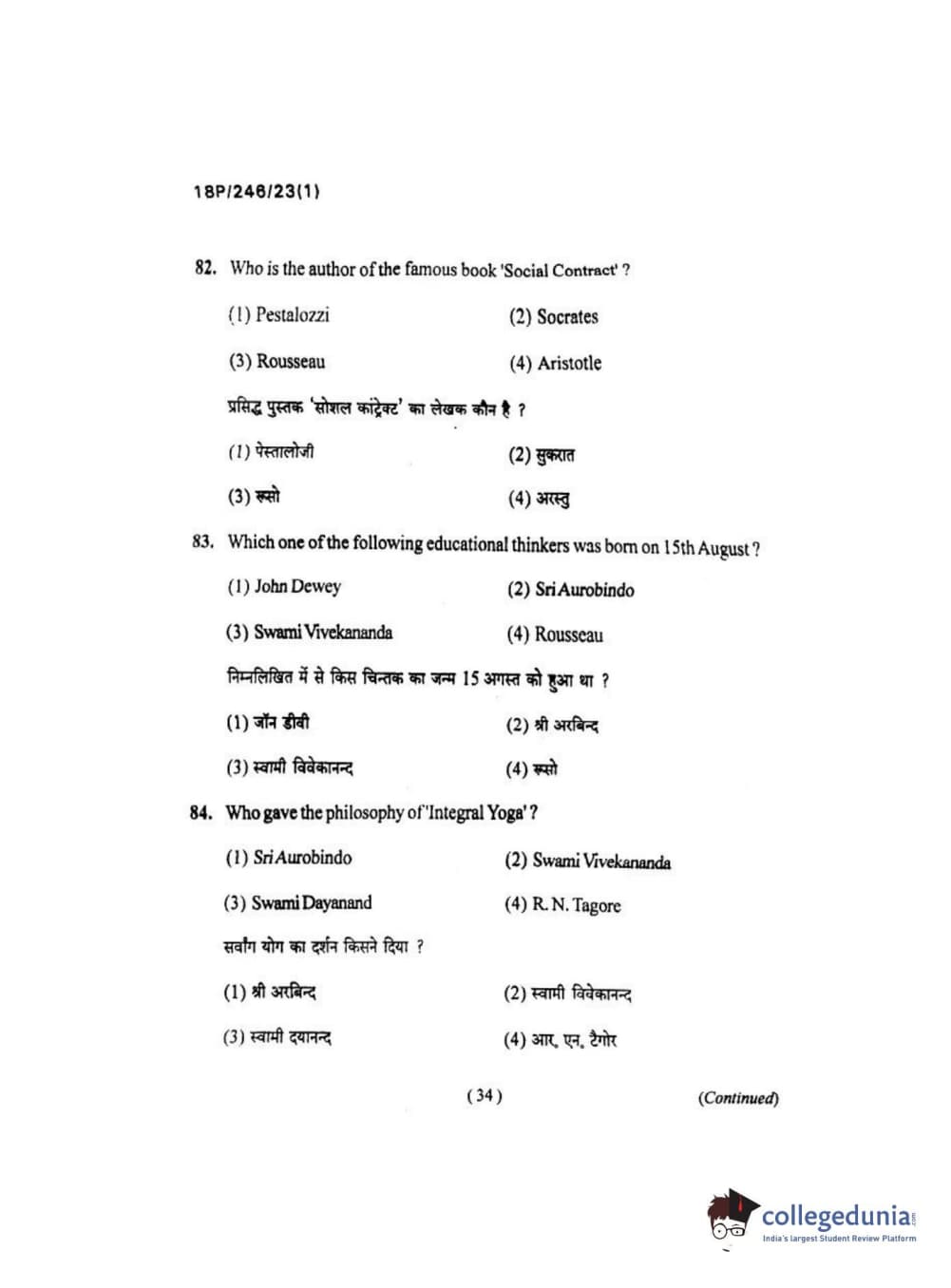 BHU PET 2018 M.ED Question Paper with Answer Key PDF in Hindi