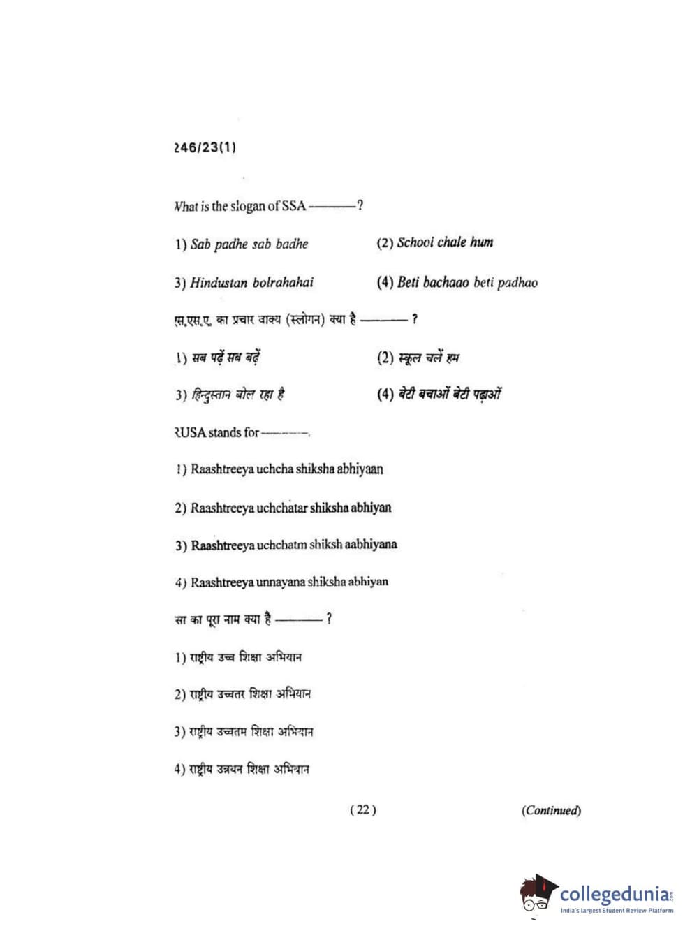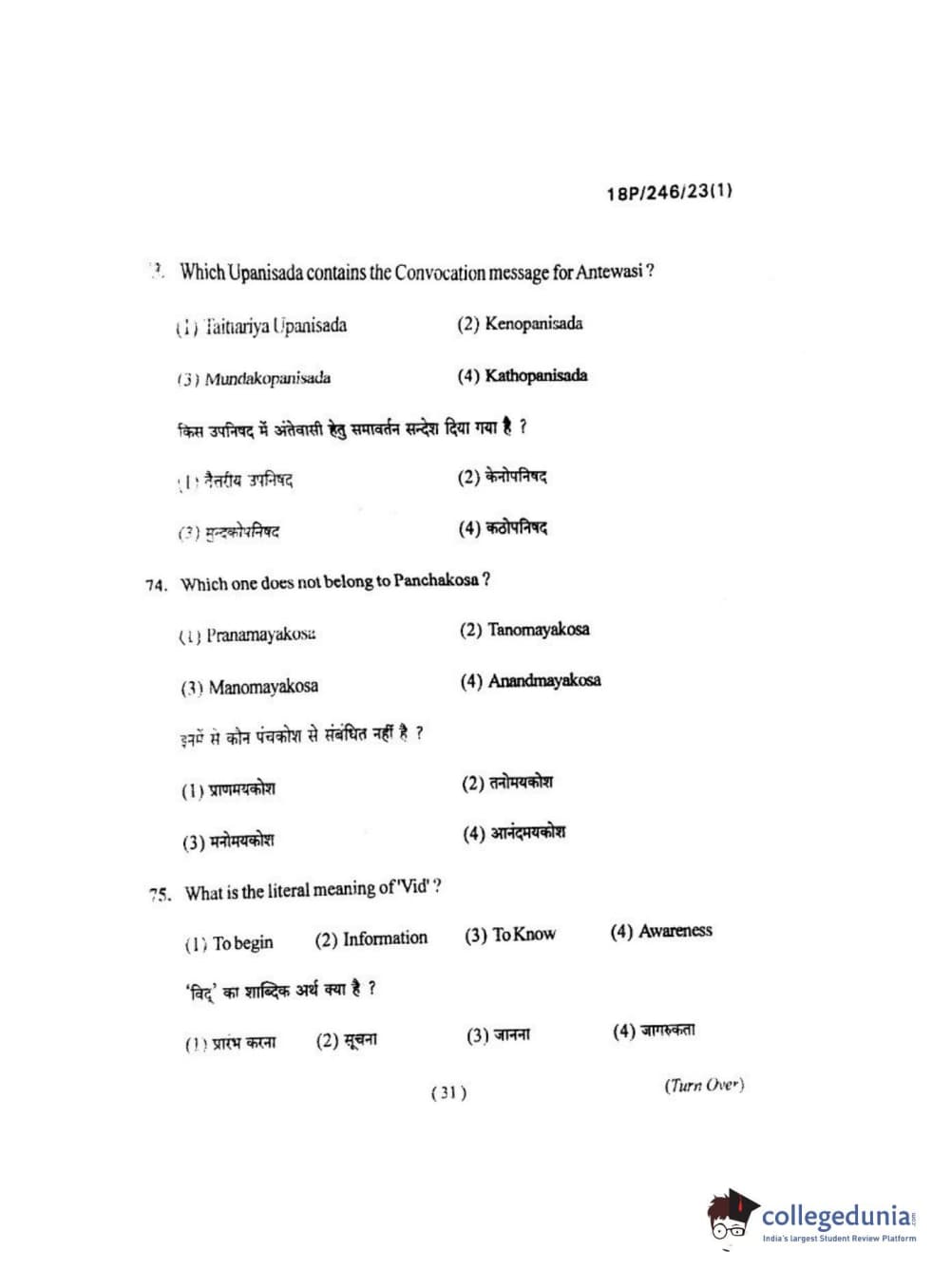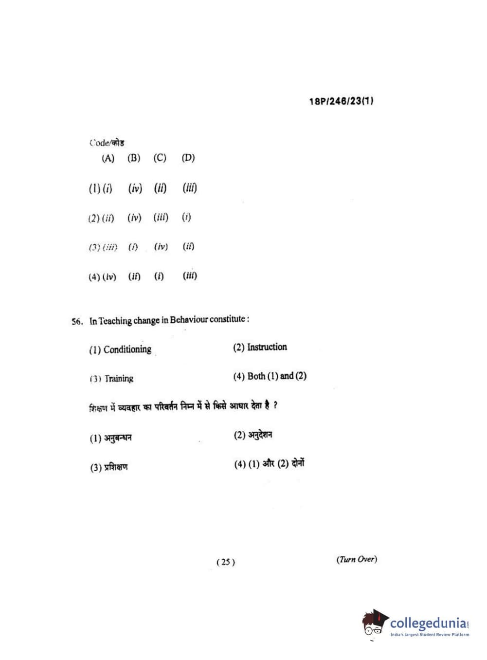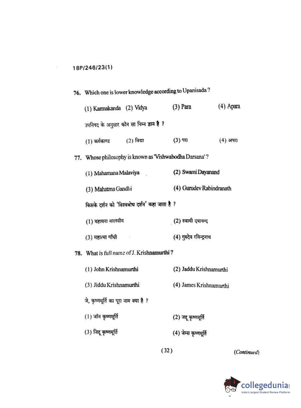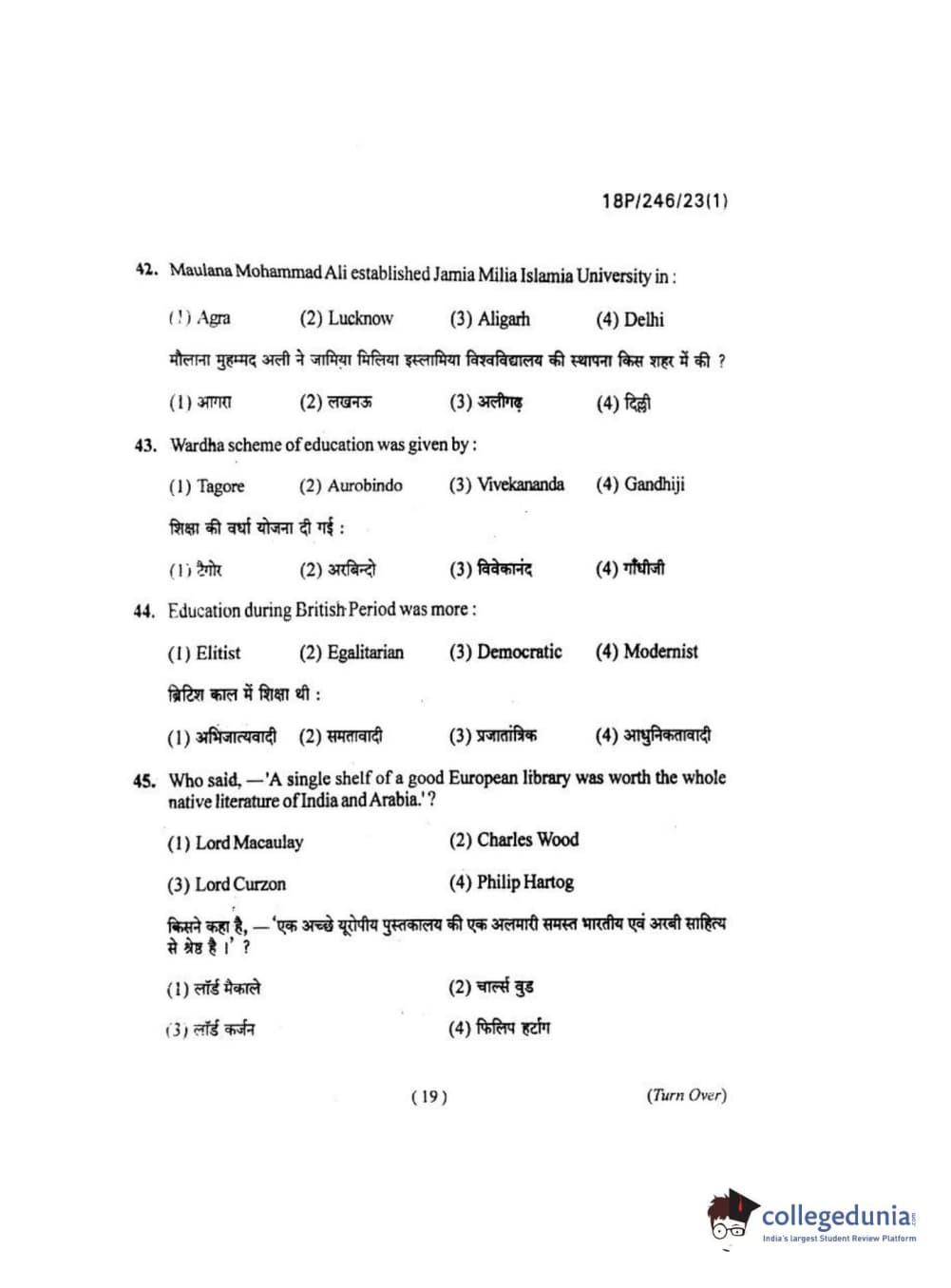 BHU PET 2018 M.ED Question Paper with Answer Key PDF in Hindi