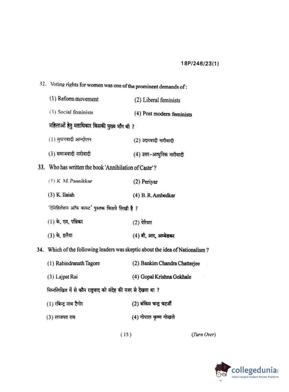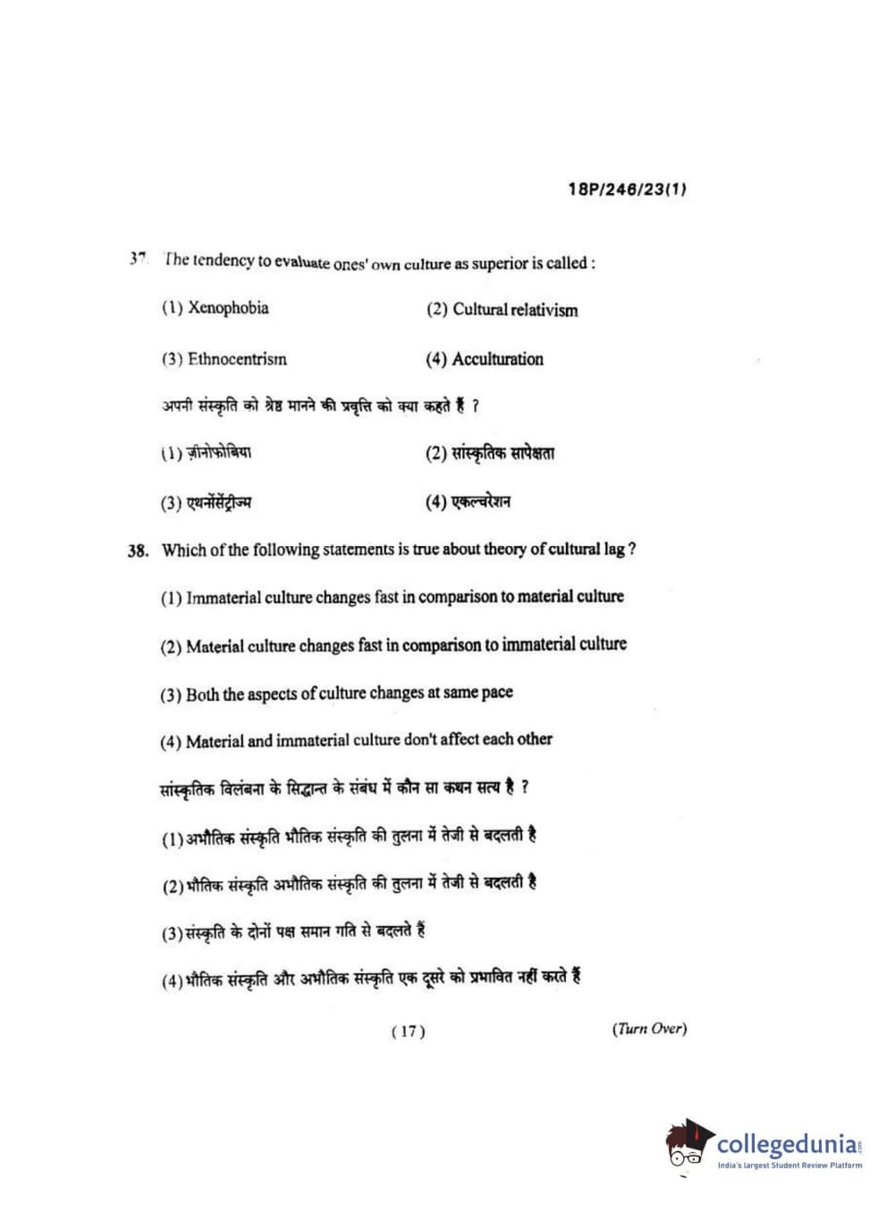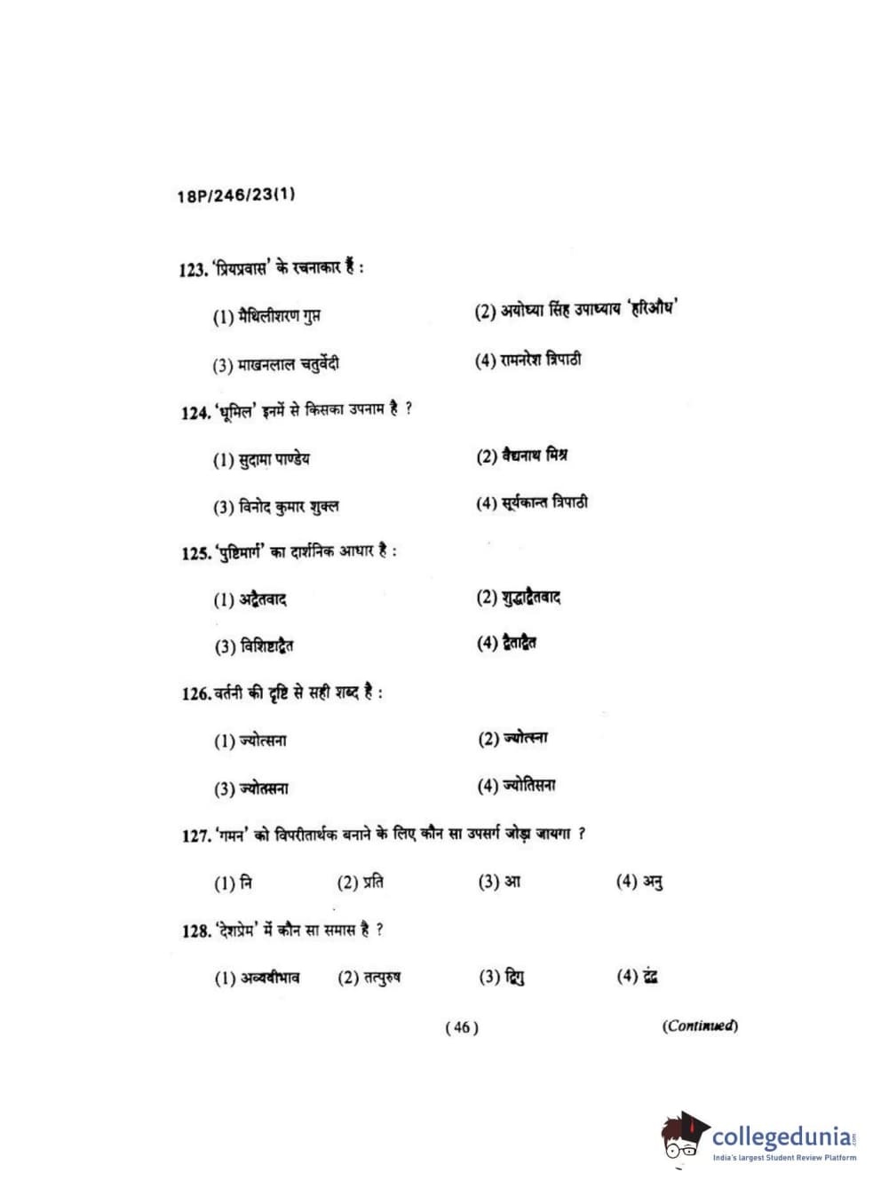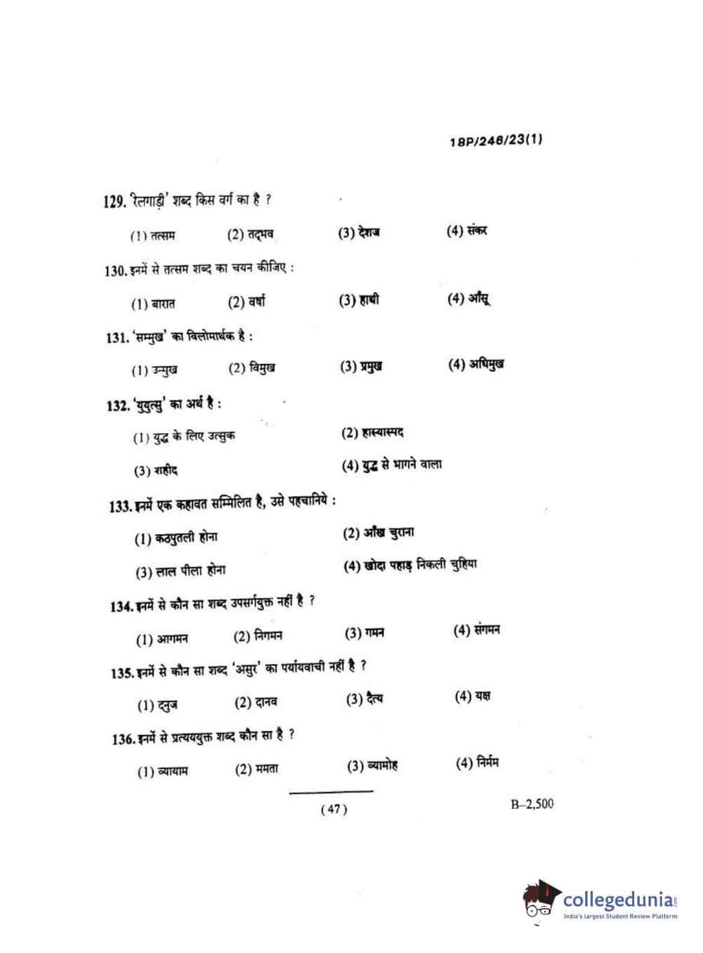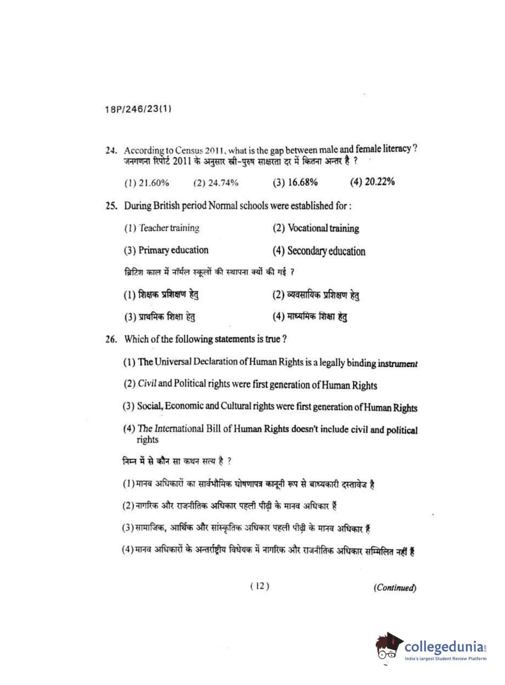 BHU PET 2018 M.ED Question Paper with Answer Key PDF in Hindi
