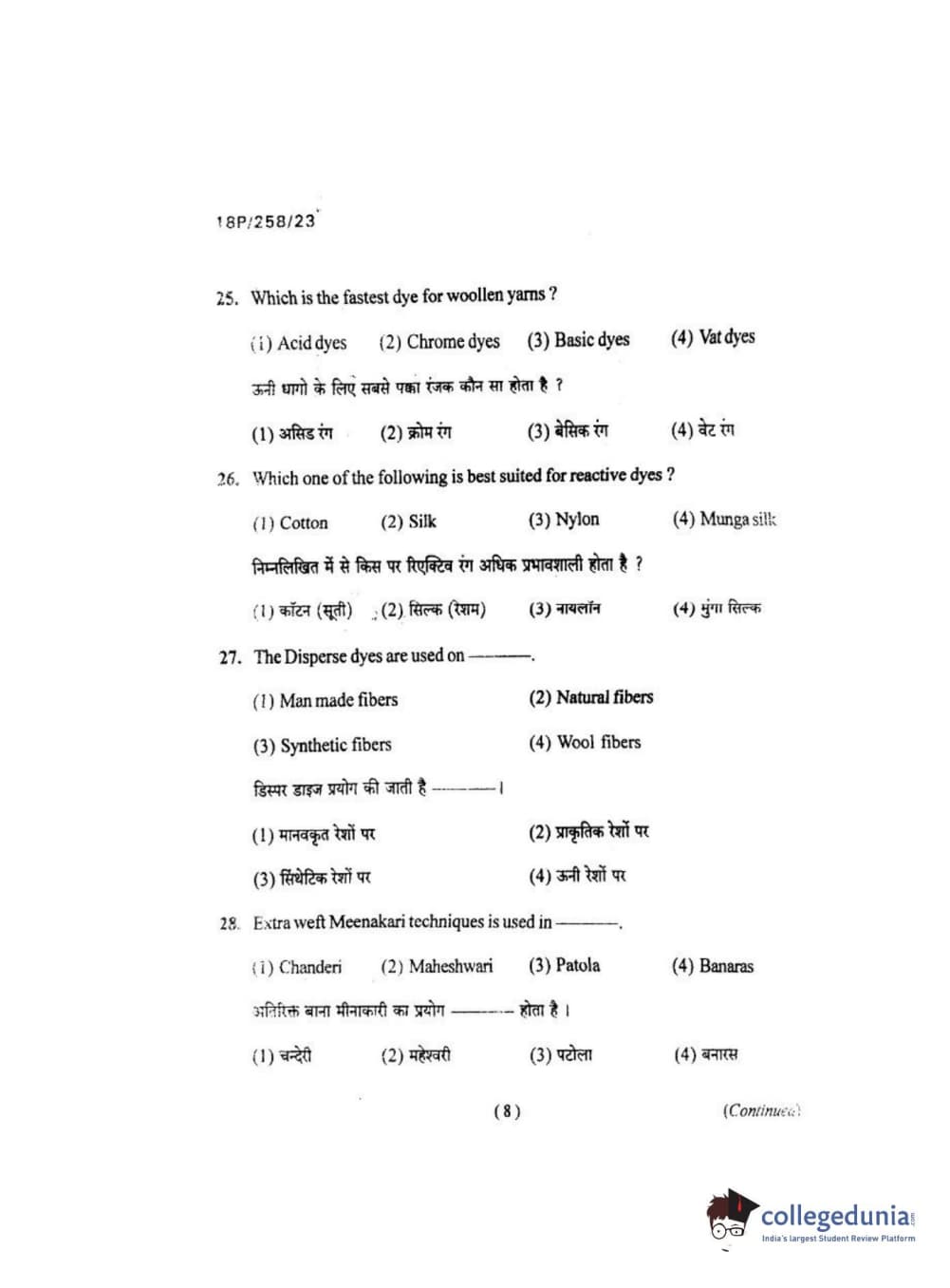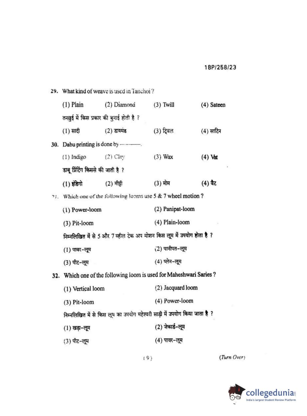 BHU PET 2018 M.F.A TEXTILE & DESIGN Question Paper with Answer Key PDF
