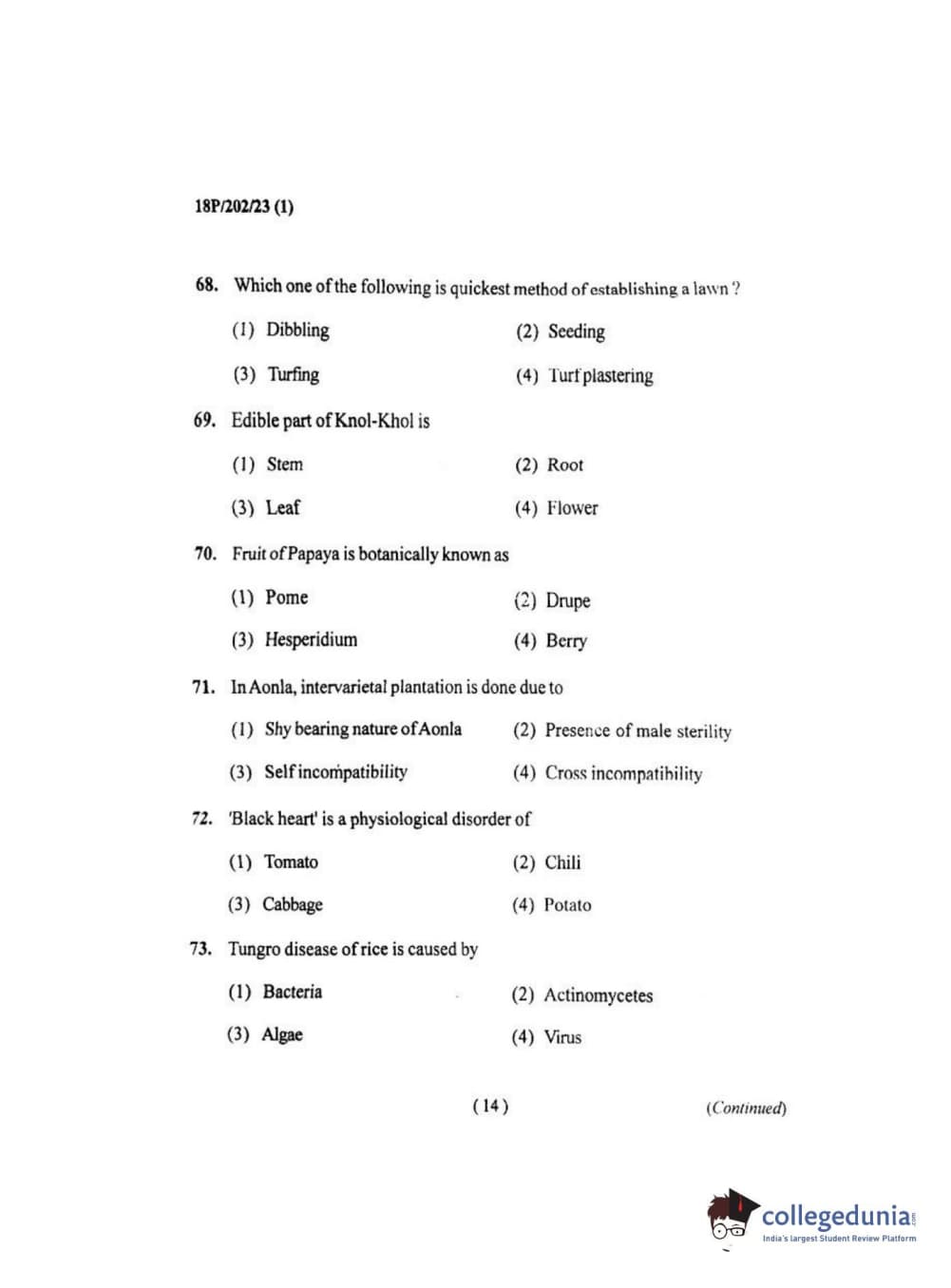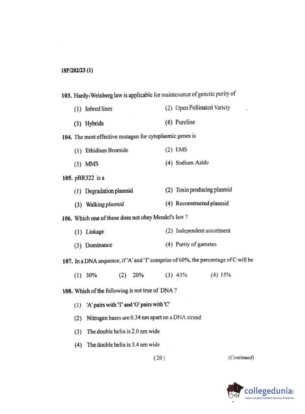 BHU PET 2018 M.SC. AG Question paper with answer key pdf conducted on May 21, 2018 is available for download. The exam was successfully organized by Banaras Hindu University (BHU). The question paper comprised a total of 120 questions.