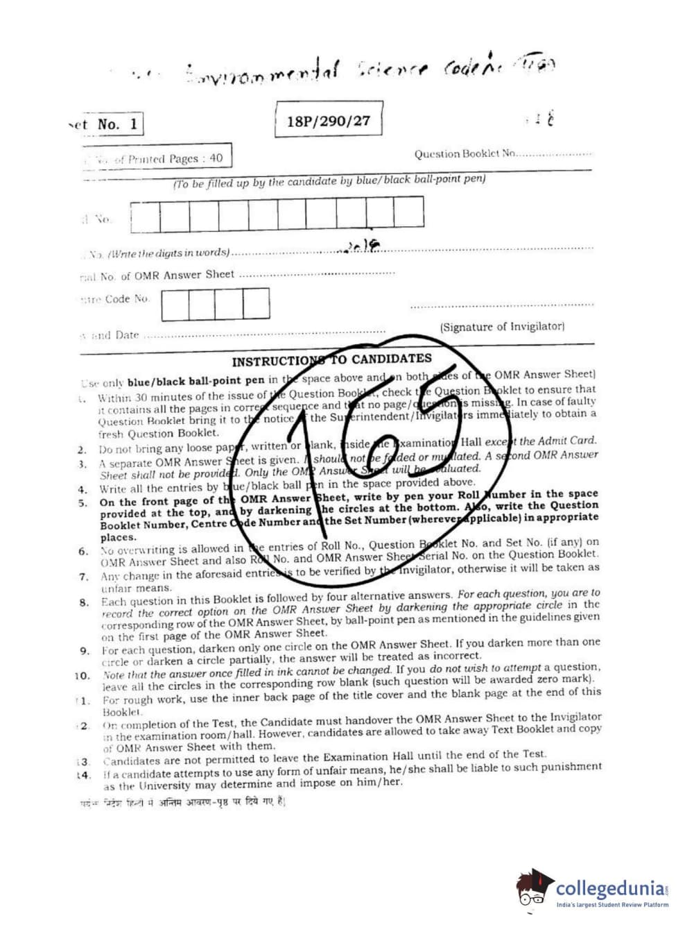 BHU PET 2018 M.SC ENVIRONMENTAL SCI Question paper with answer key pdf is available for download. The exam was successfully organized by Banaras Hindu University (BHU). The question paper comprised a total of 180 questions.
