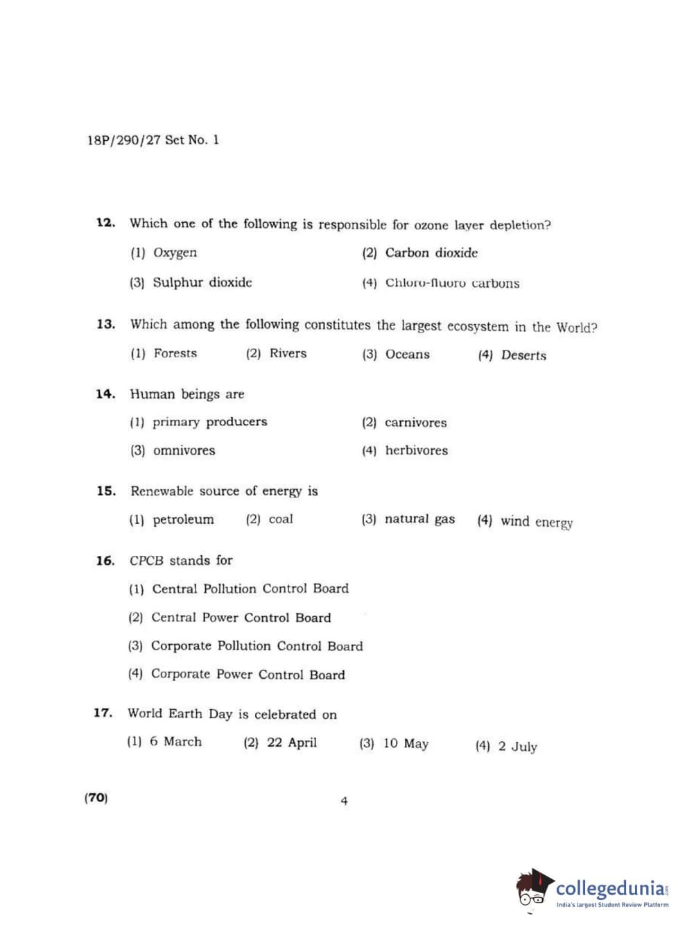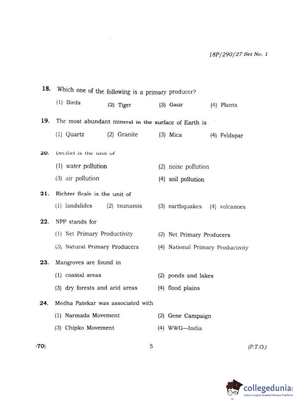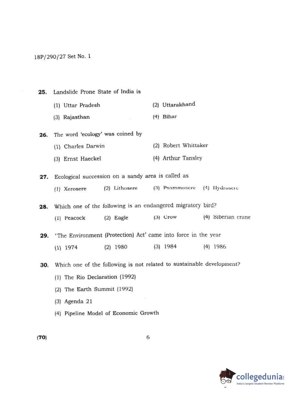 BHU PET 2018 M.SC ENVIRONMENTAL SCI Question Paper with Answer Key PDF
