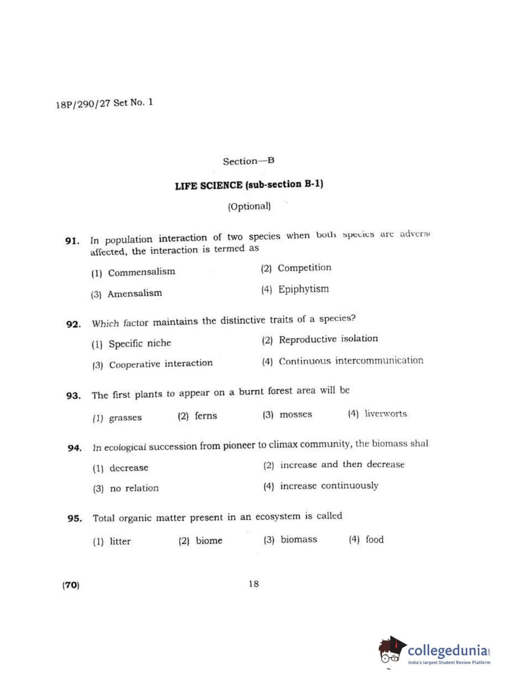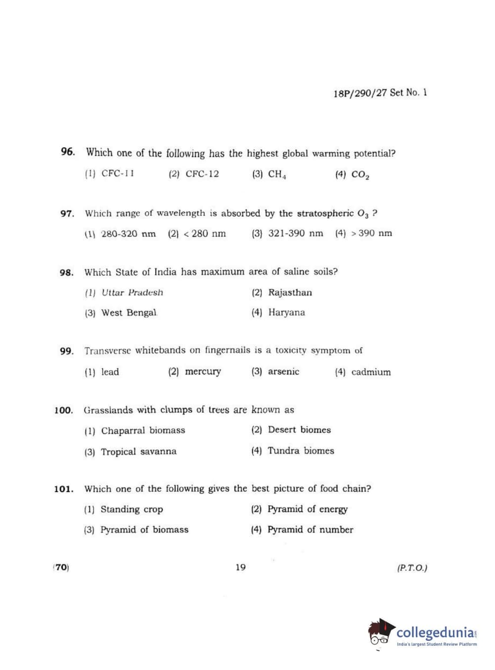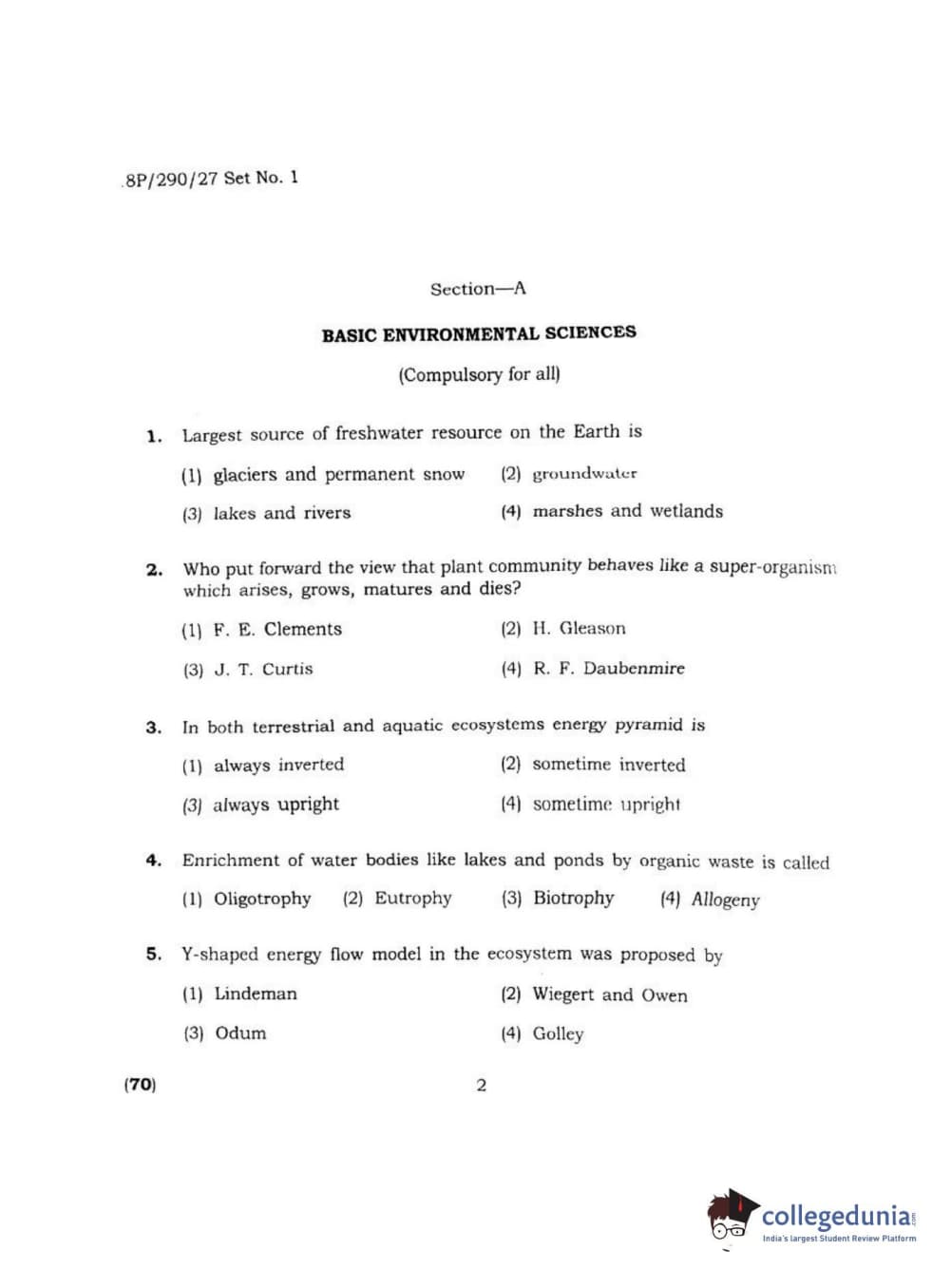 BHU PET 2018 M.SC ENVIRONMENTAL SCI Question Paper with Answer Key PDF