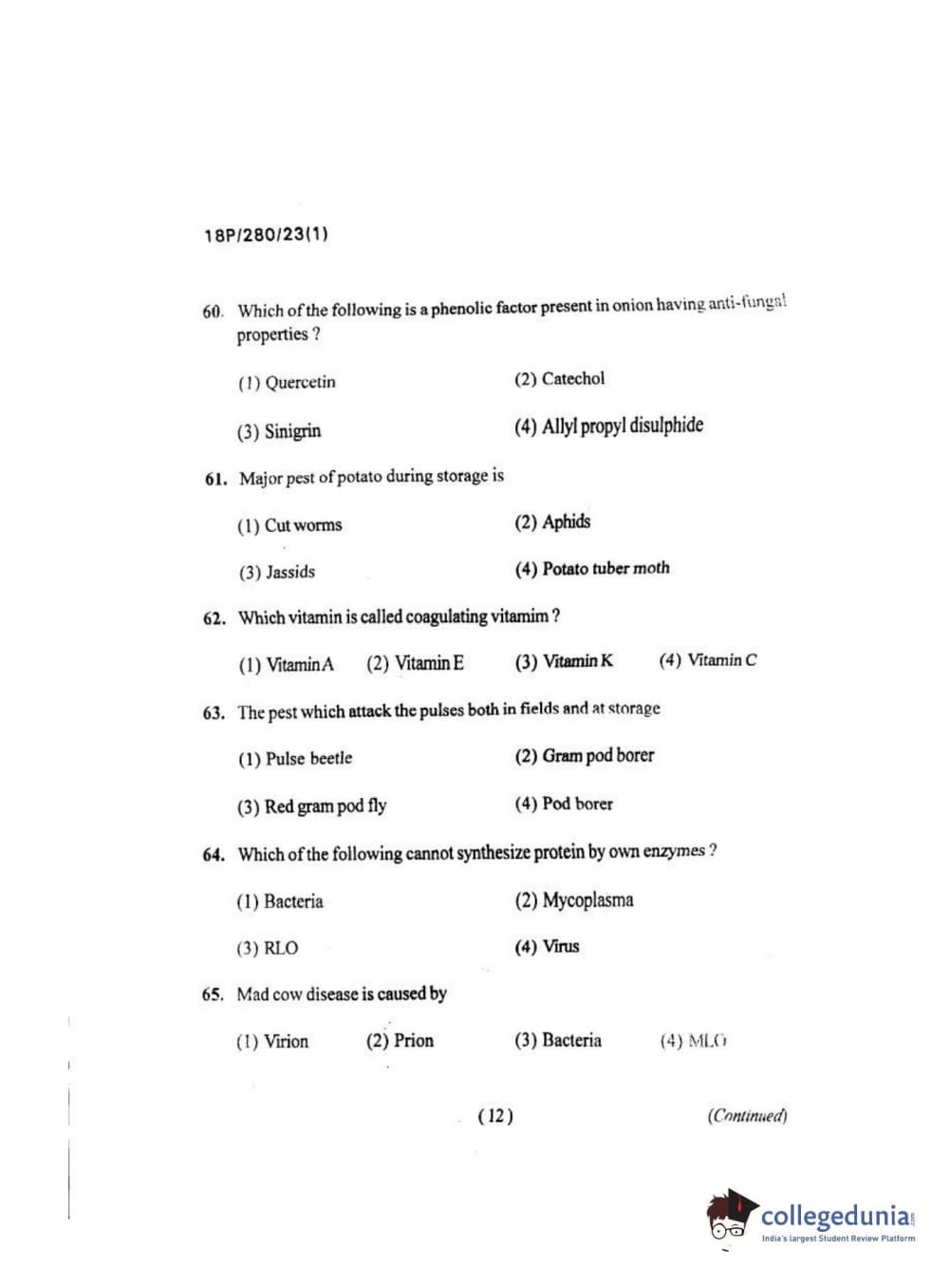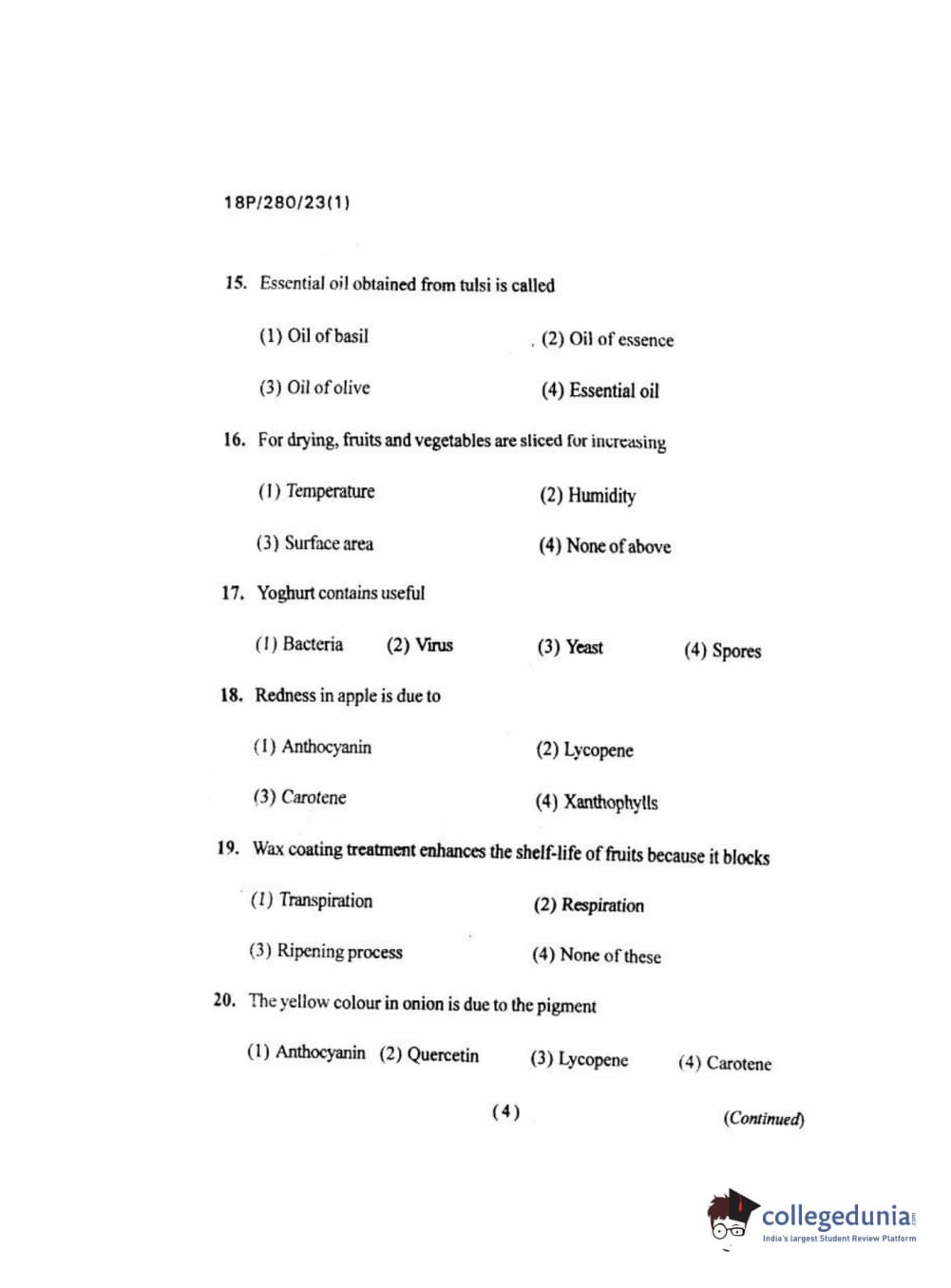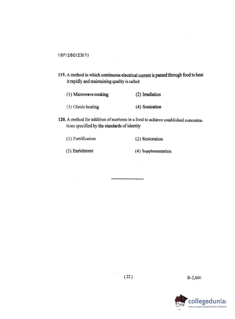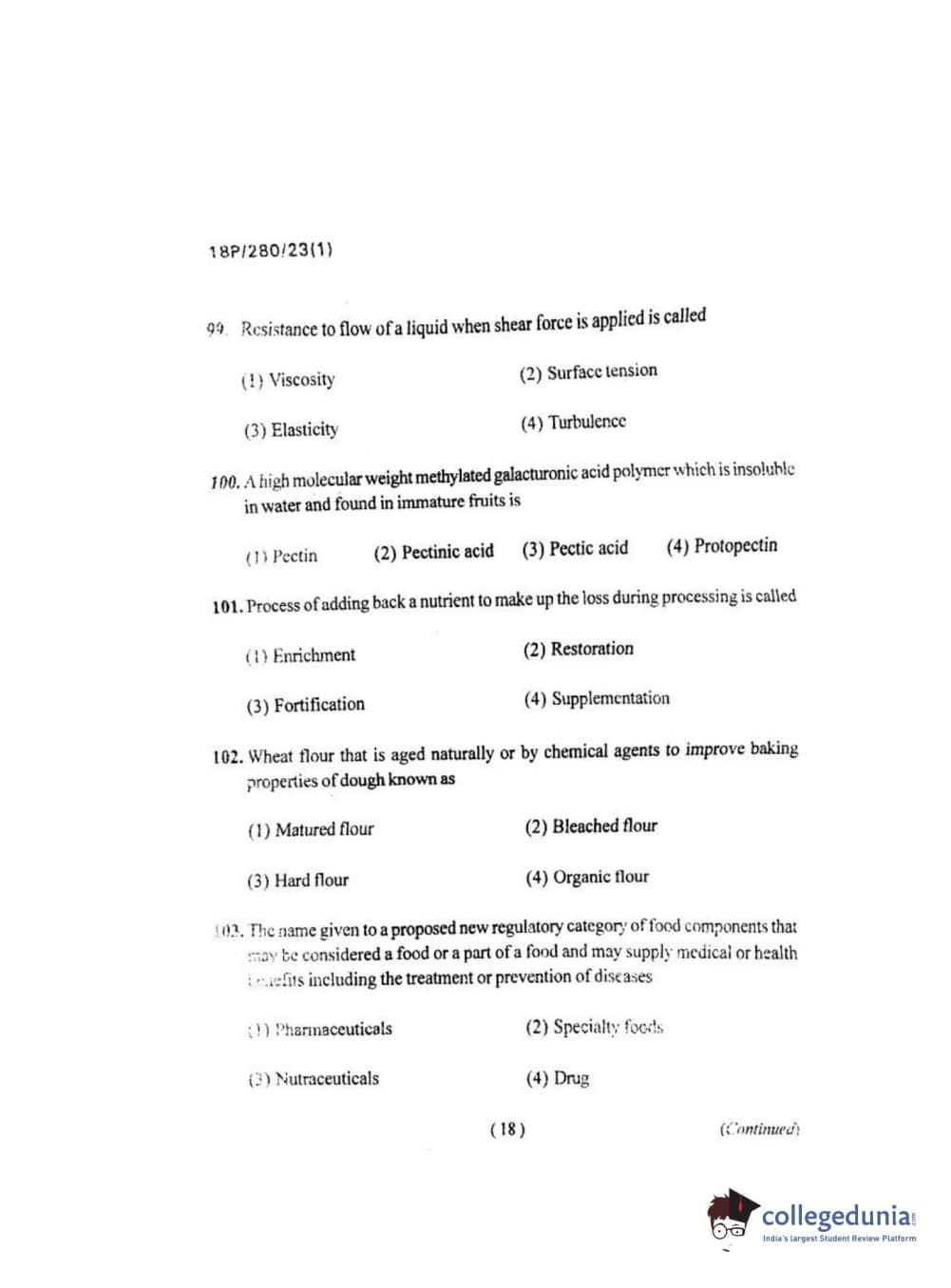 | BHU PET 2018 Msc. Food Sci. Tec Question Paper PDF | BHU PET 2018 Msc. Food Sci. Tec Answer Key PDF |