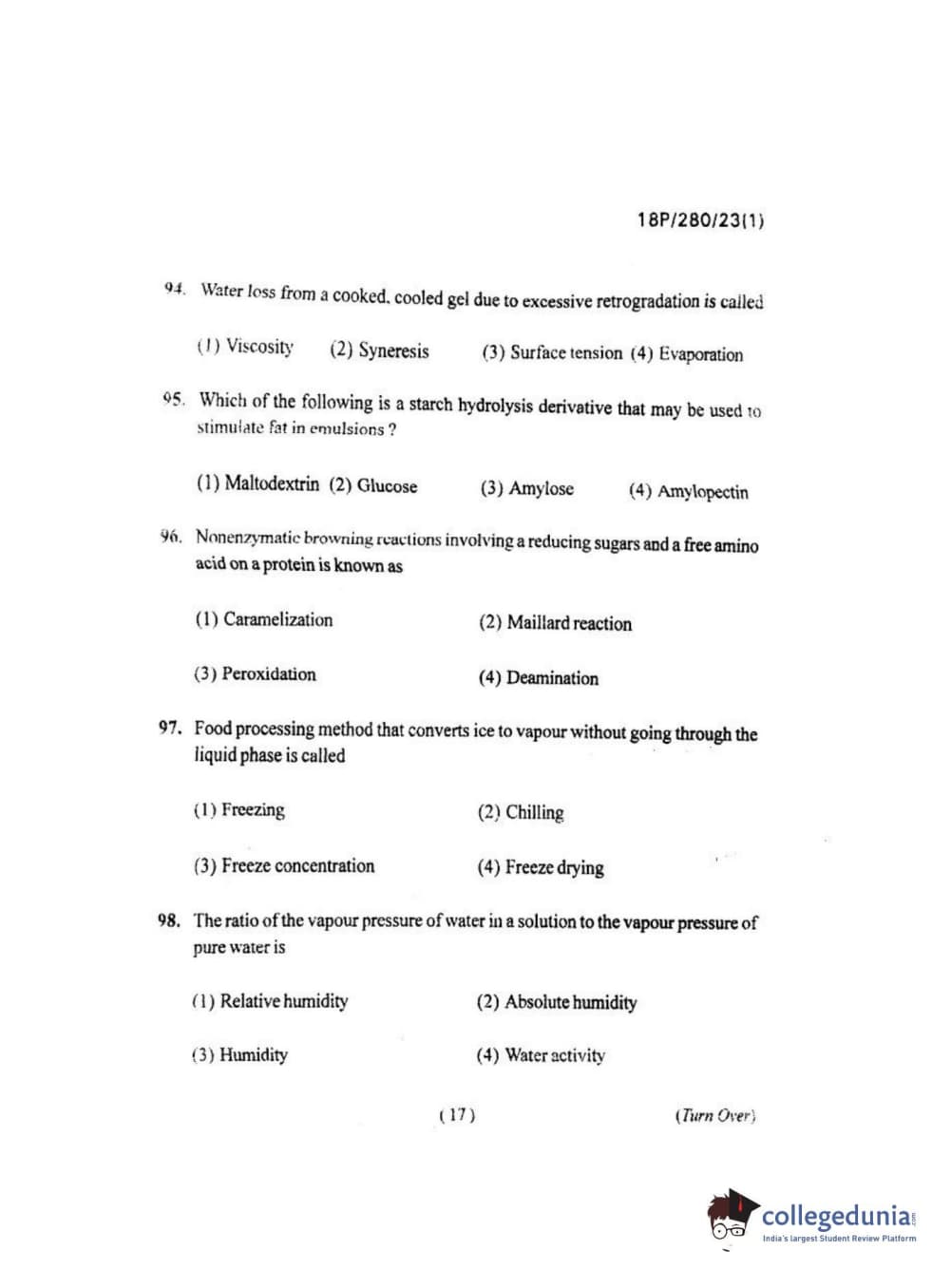 BHU PET 2018 Msc. Food Sci. Tec Question Paper with Answer Key PDF