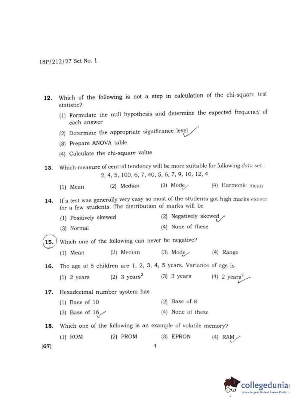 BHU PET 2018 M.SC IN BIO INFORMATICS Question Paper with Answer Key PDF