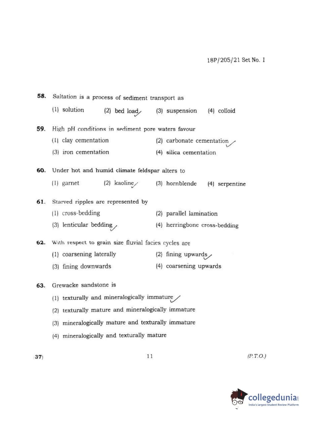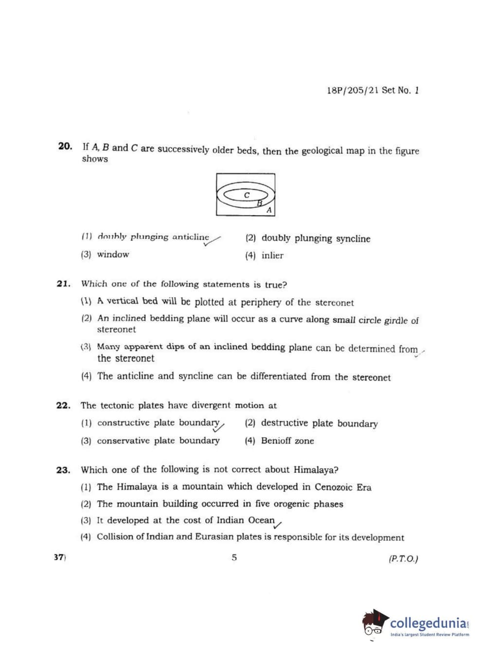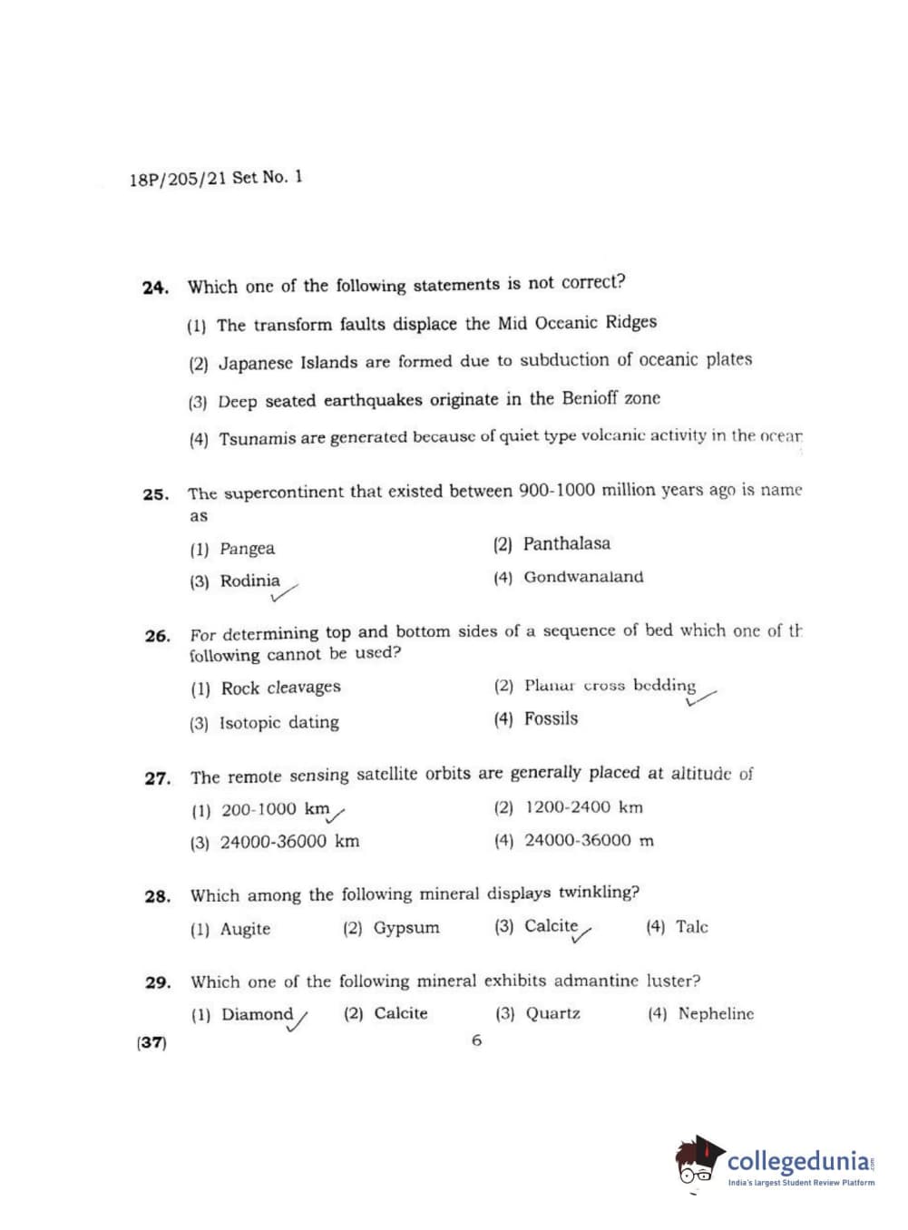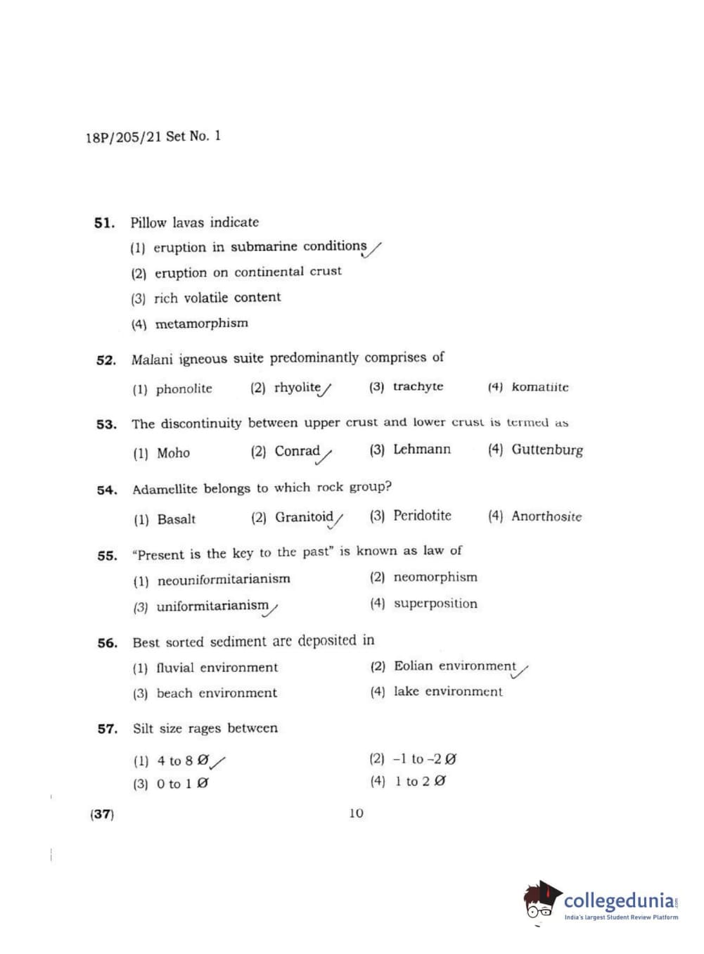 BHU PET 2018 M.SC. IN GEOLOGY Question Paper with Answer Key PDF