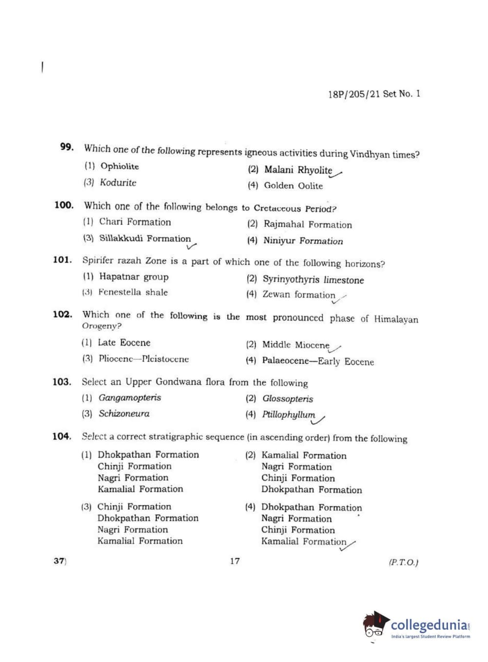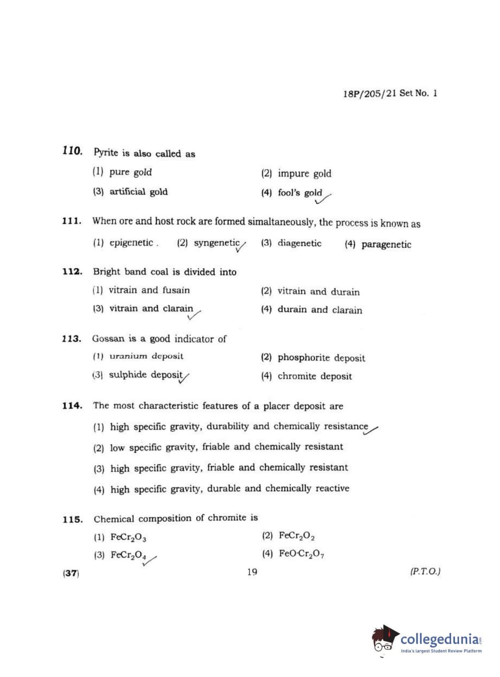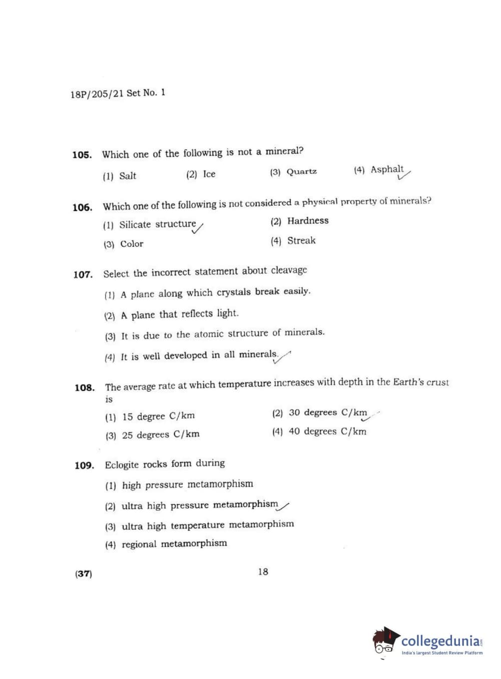 BHU PET 2018 M.SC. IN GEOLOGY Question Paper with Answer Key PDF