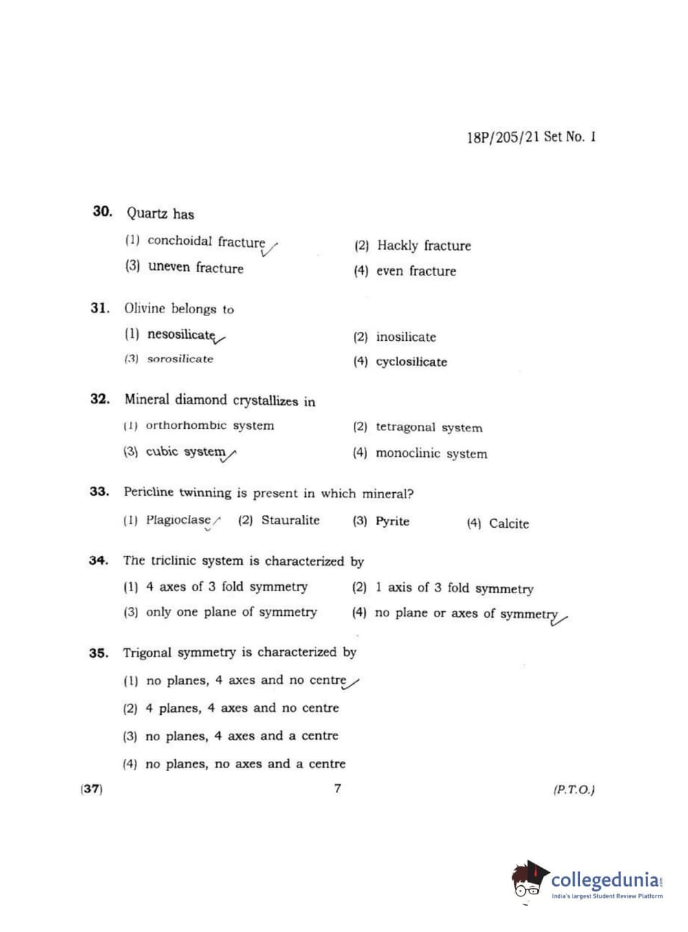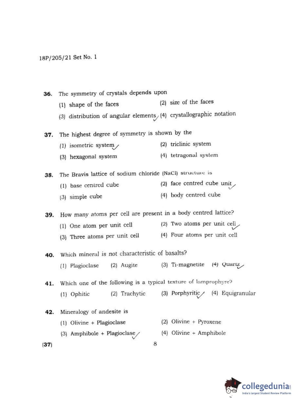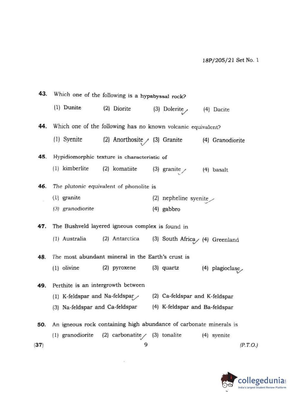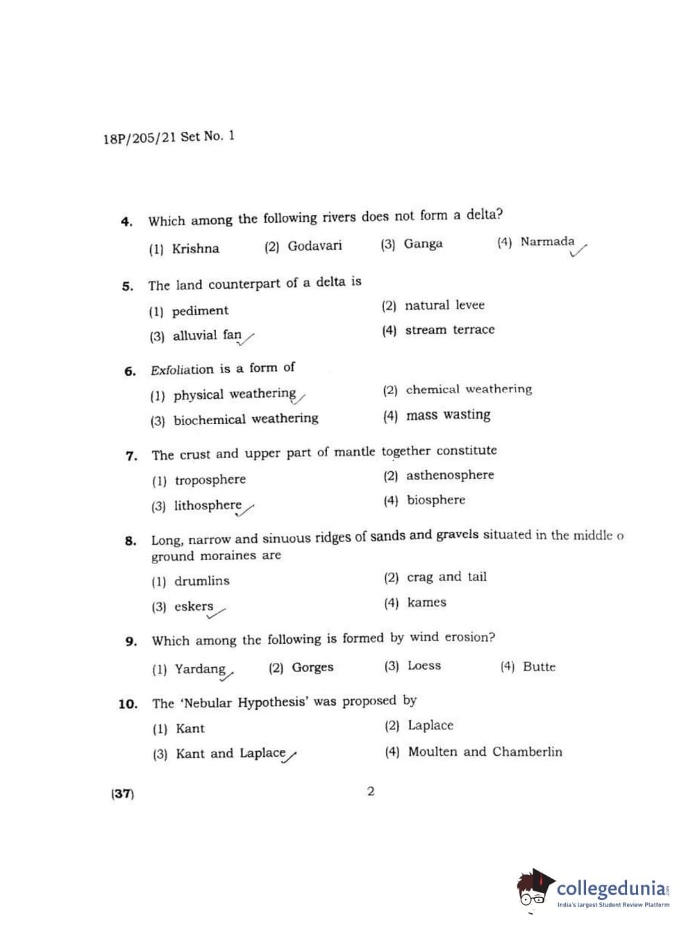 BHU PET 2018 M.SC. IN GEOLOGY Question Paper with Answer Key PDF