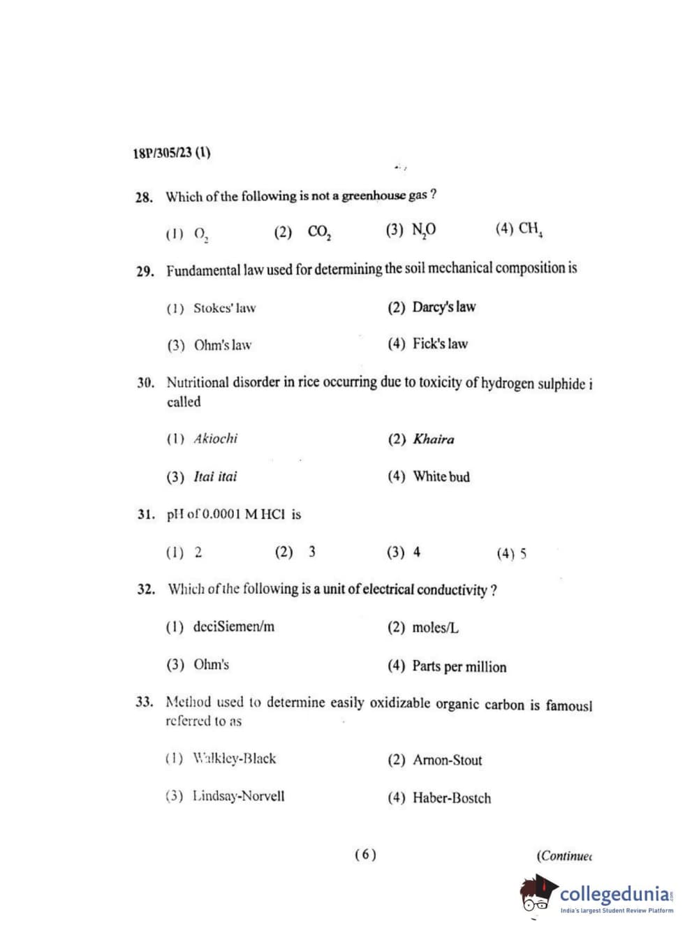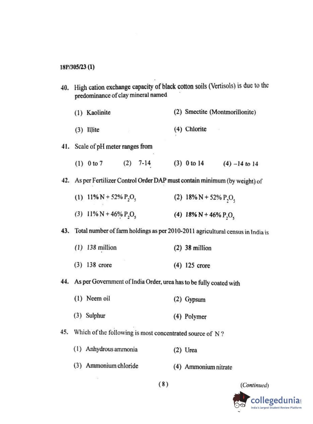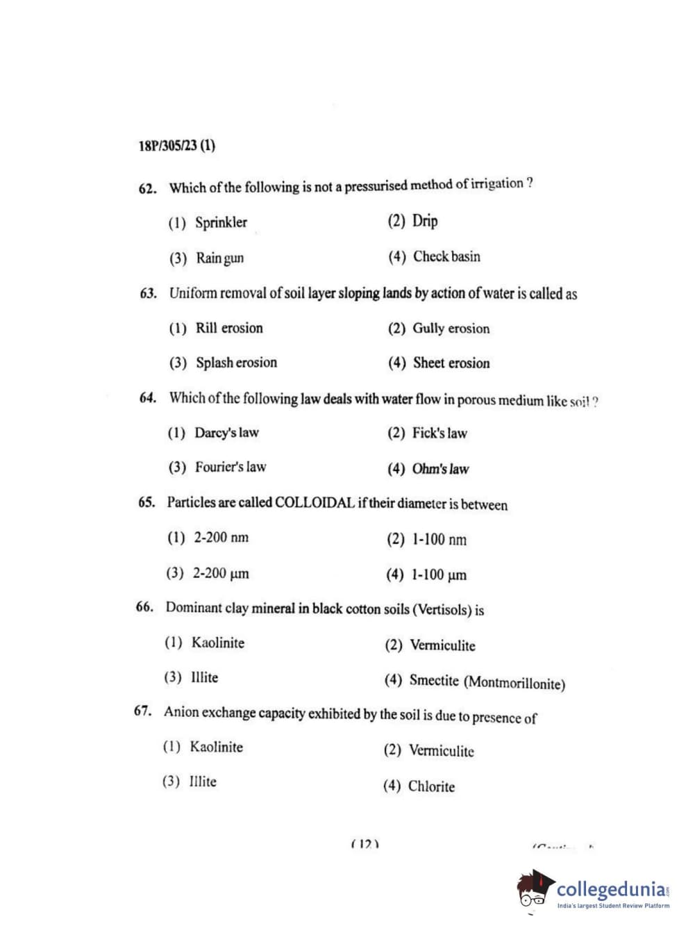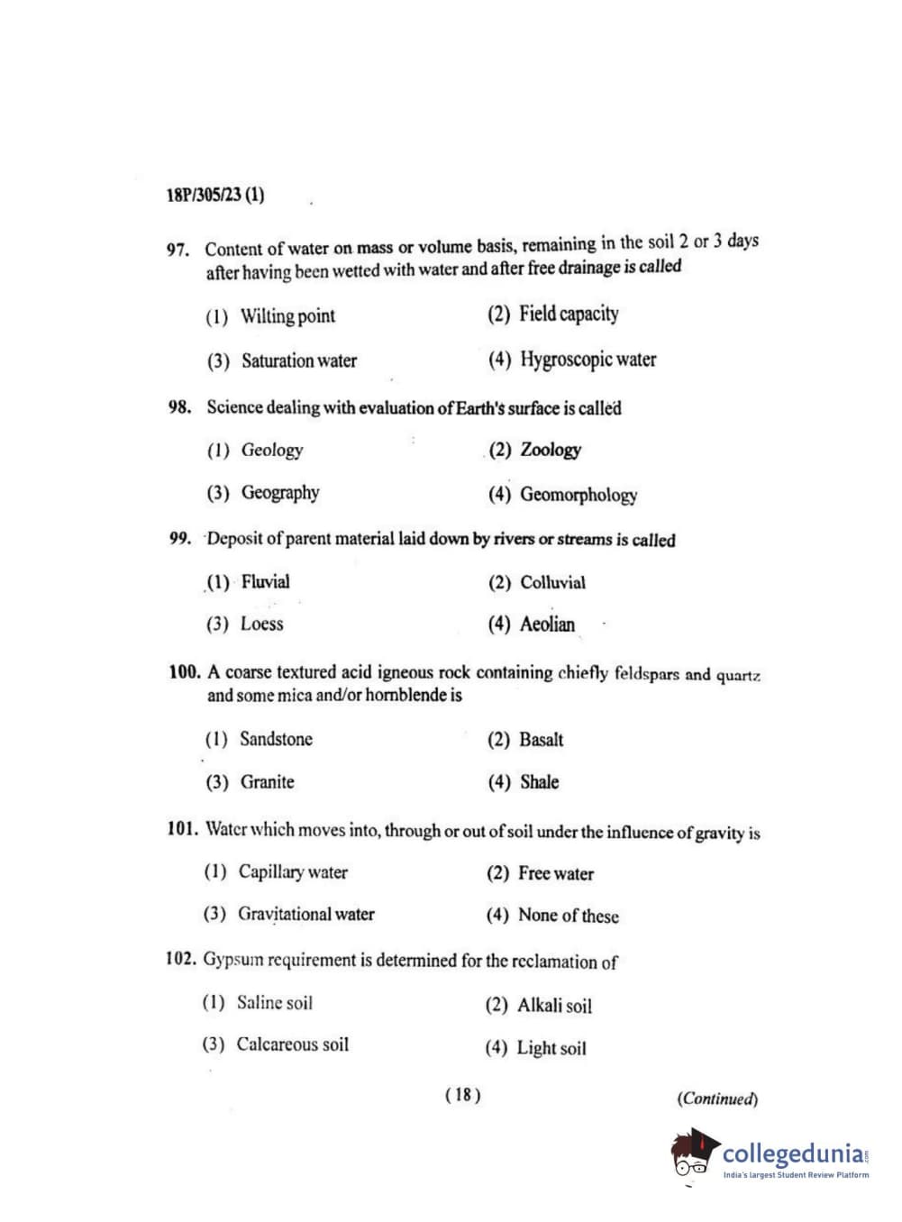 BHU PET 2018 M.SC.SOIL SCI.& WATER CON Question Paper with Answer Key PDF