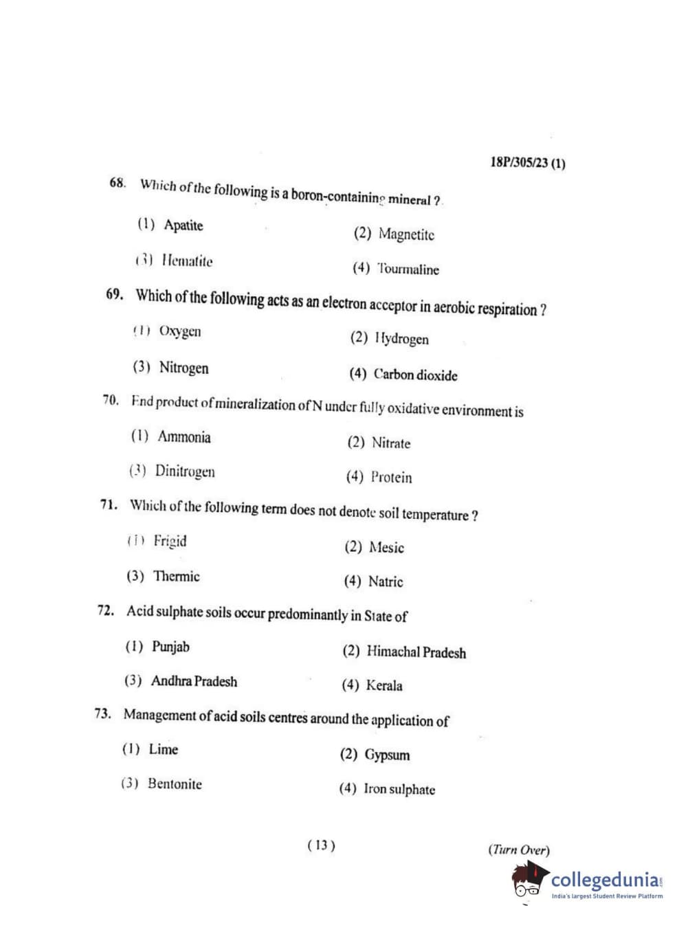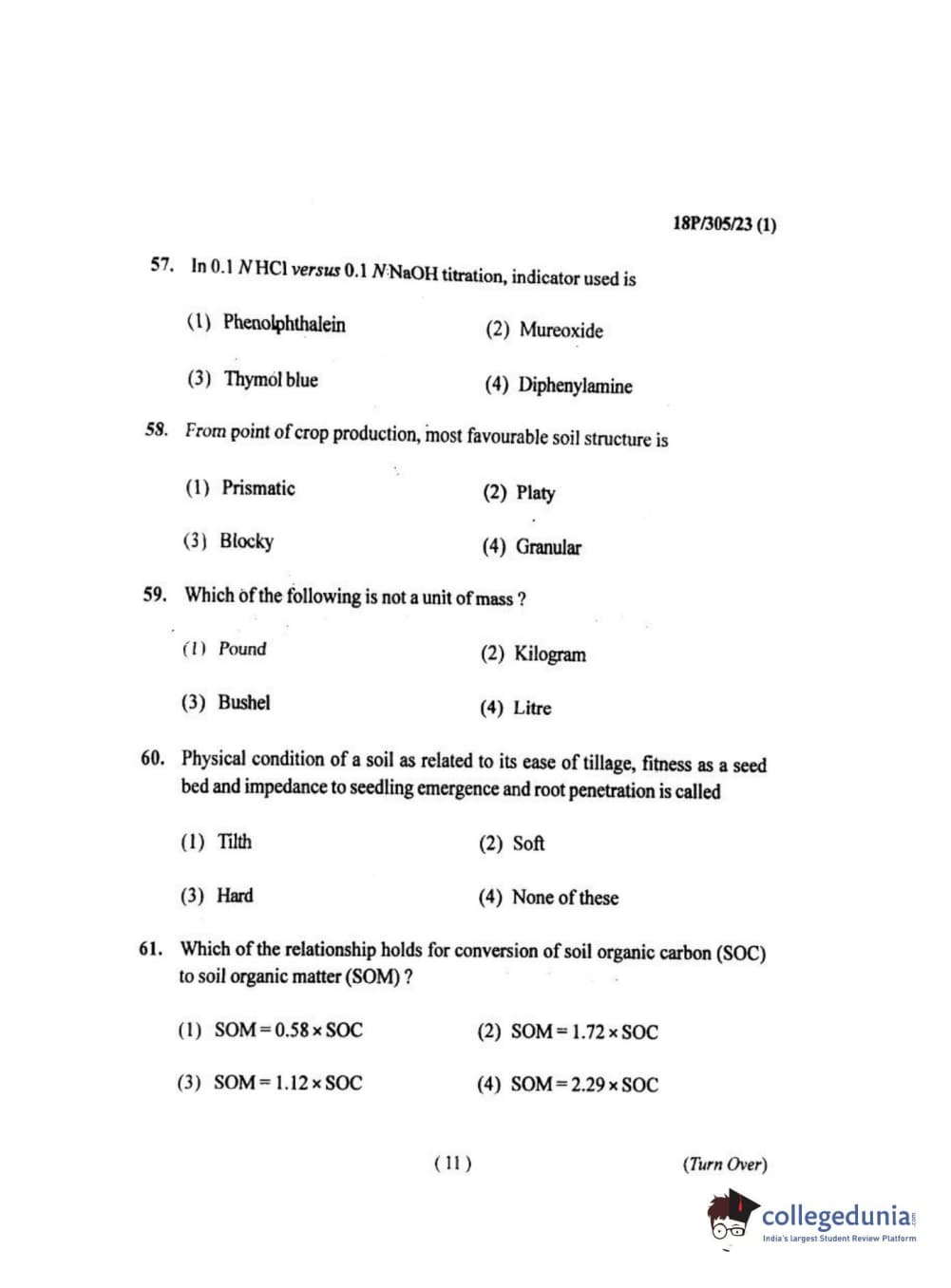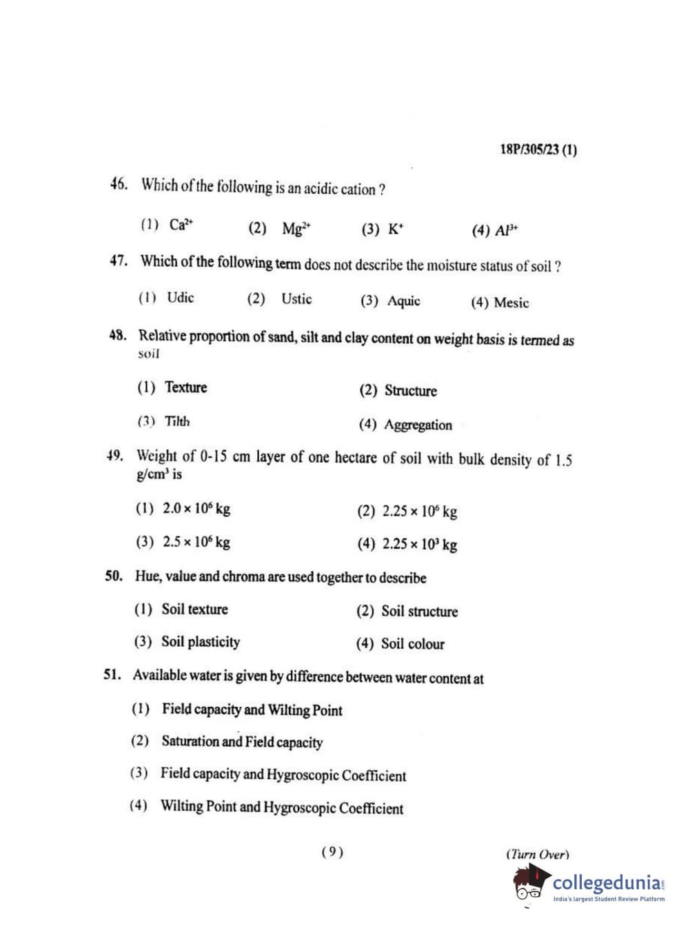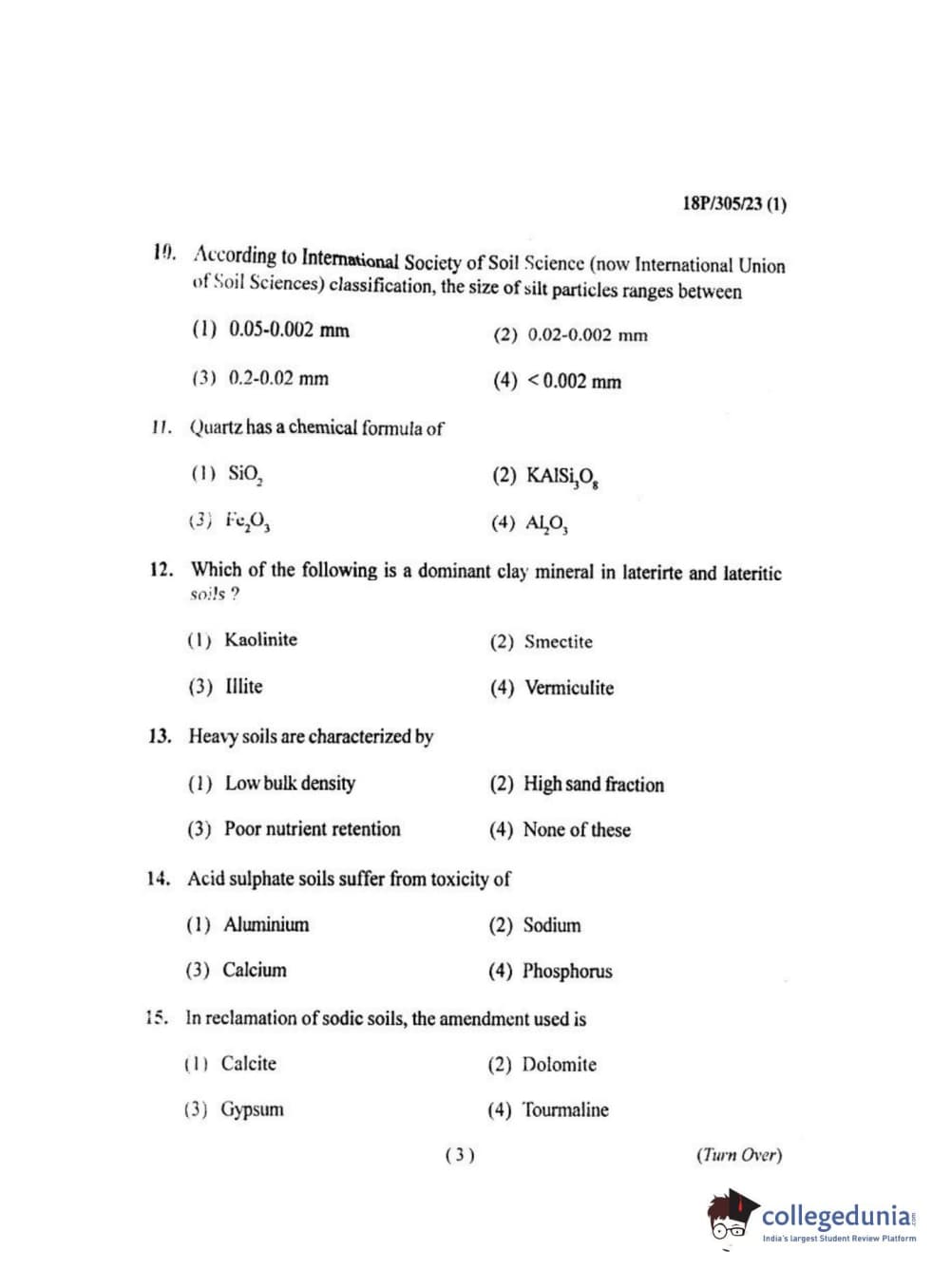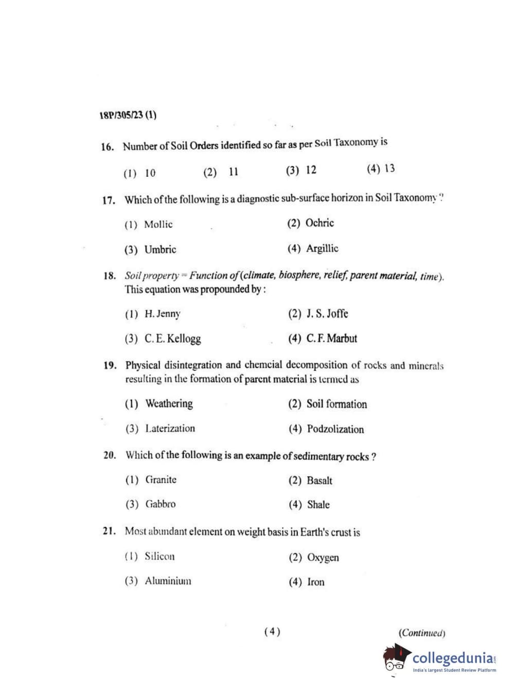 BHU PET 2018 M.SC.SOIL SCI.& WATER CON Question Paper with Answer Key PDF