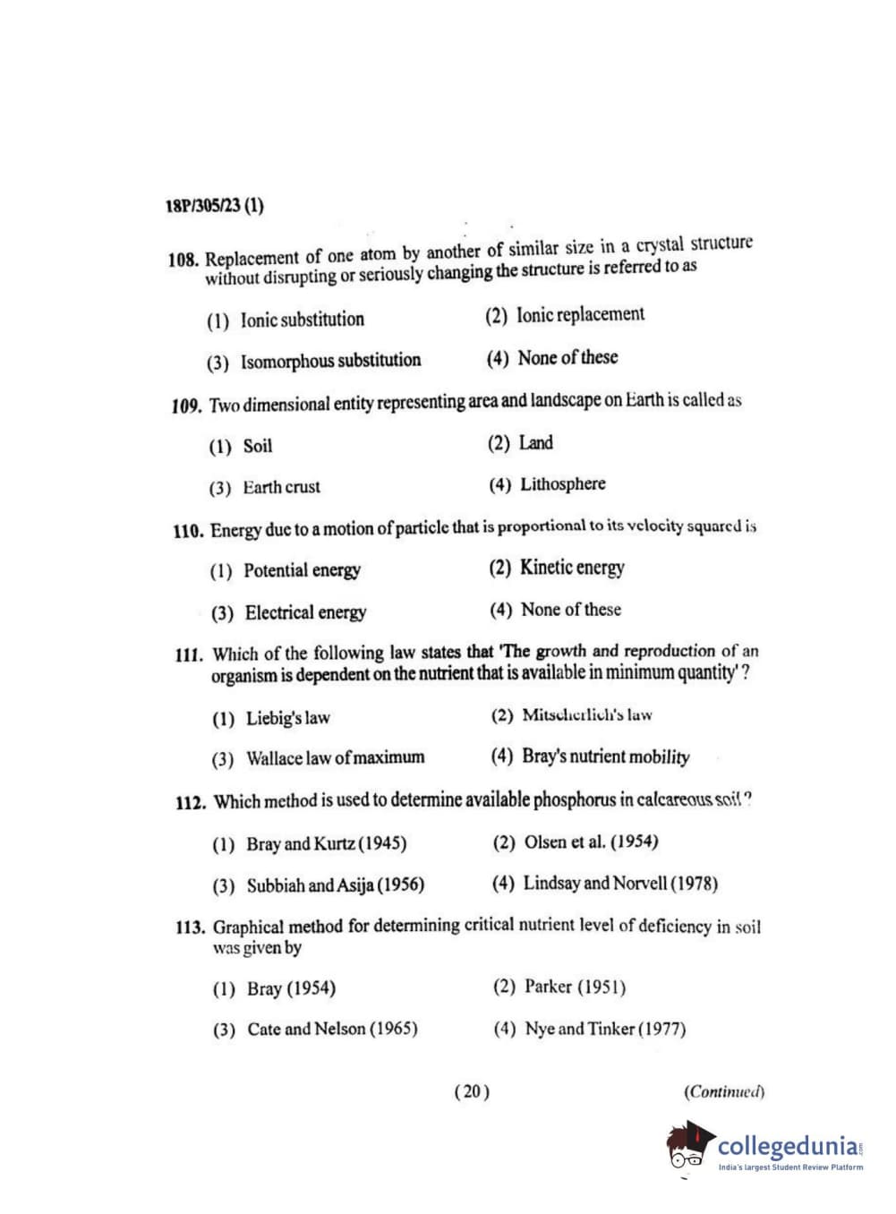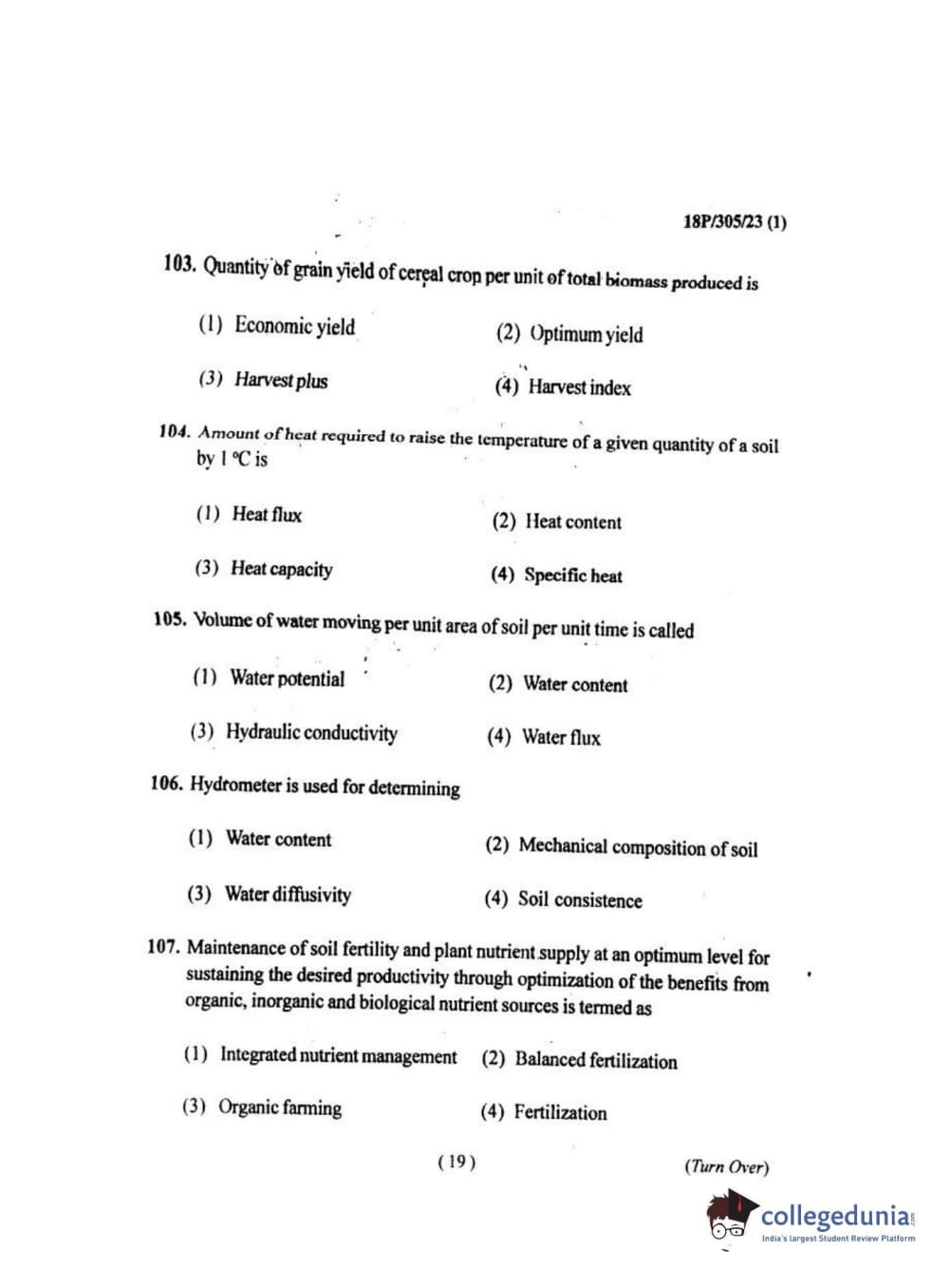 BHU PET 2018 M.SC.SOIL SCI.& WATER CON Question paper with answer key pdf is available for download. The exam was successfully organized by Banaras Hindu University (BHU). The question paper comprised a total of 120 questions.
