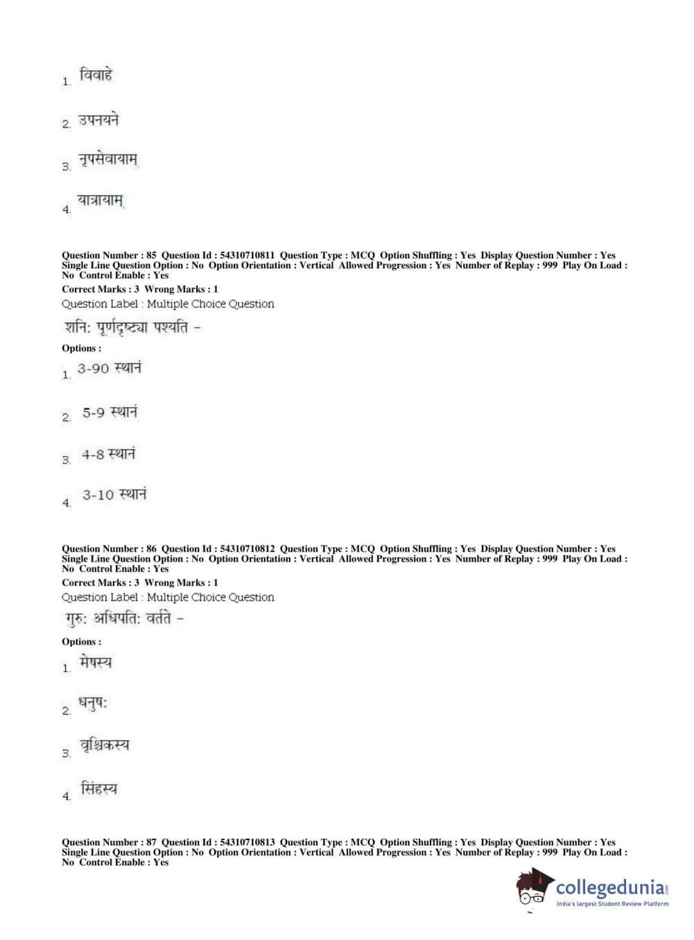 BHU PET 2019 ACHARYA JYOTISH FALIT Question Paper with Answer Key PDFs, Shift 1