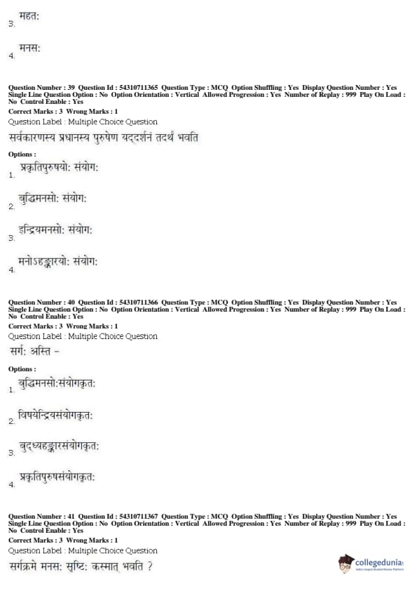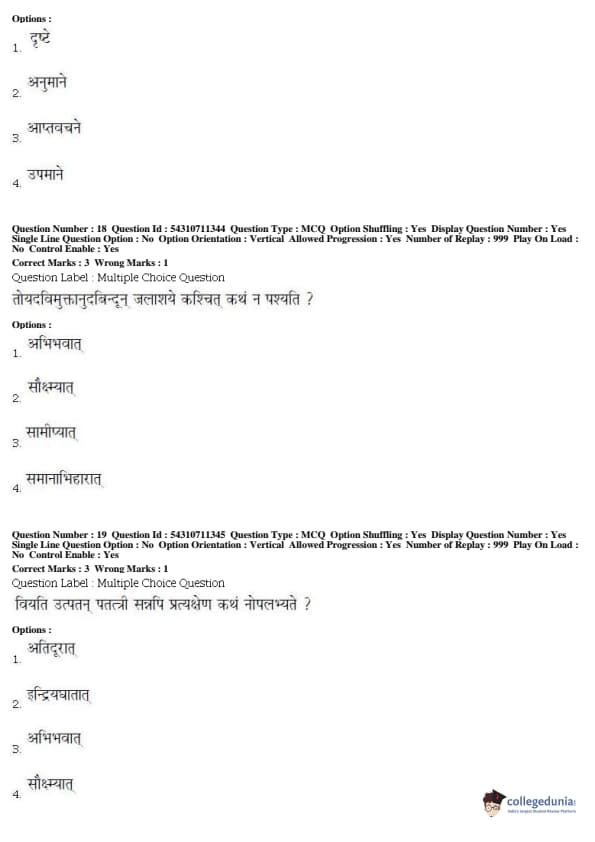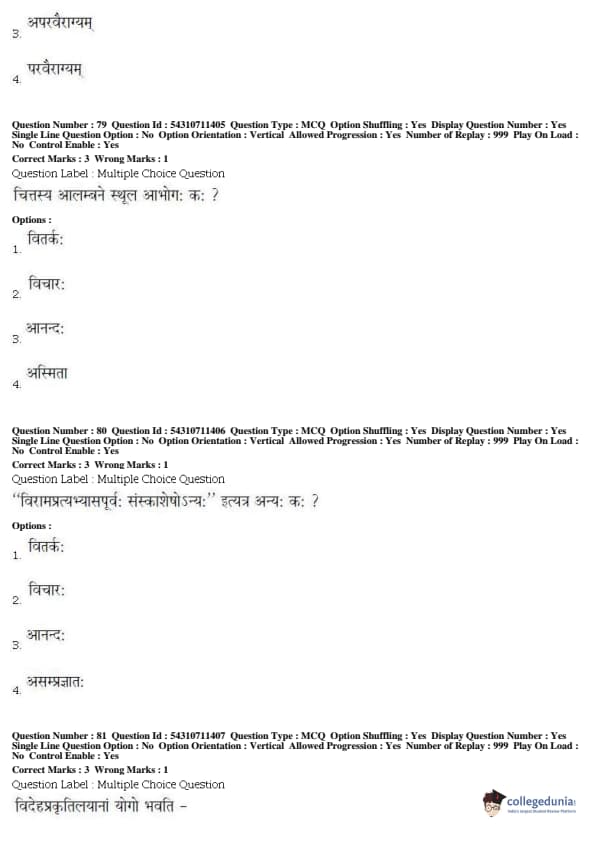 BHU PET 2019 ACHARYA SANKHAYOGA Question Paper with Answer Key PDFs, Shift 1