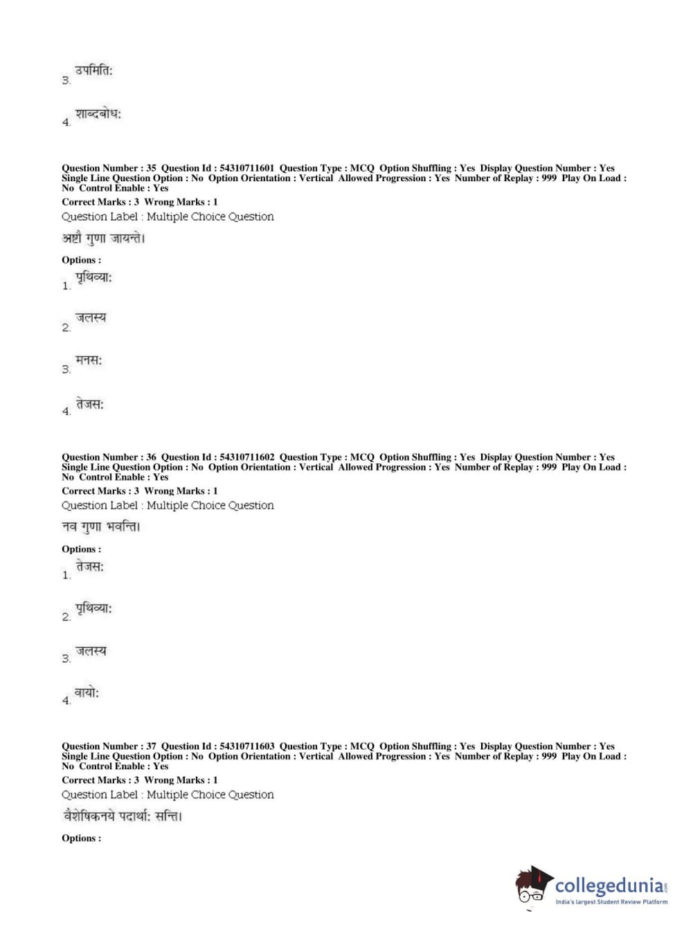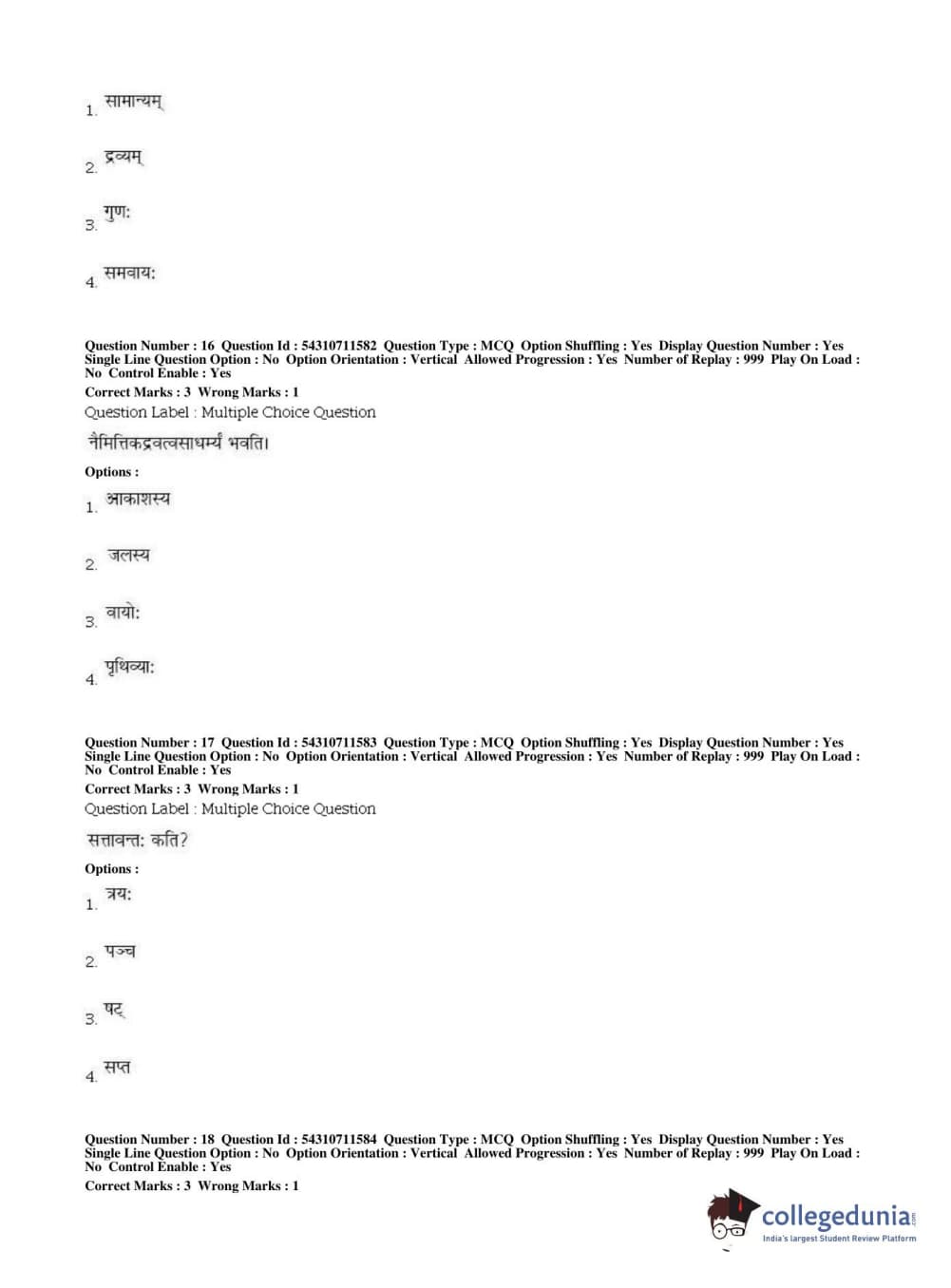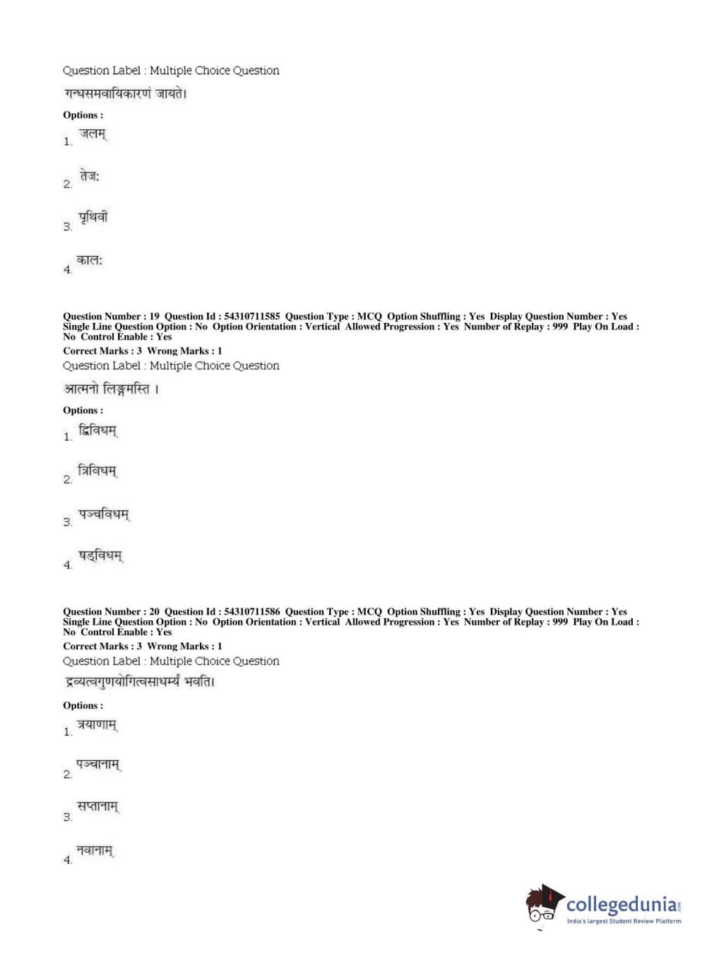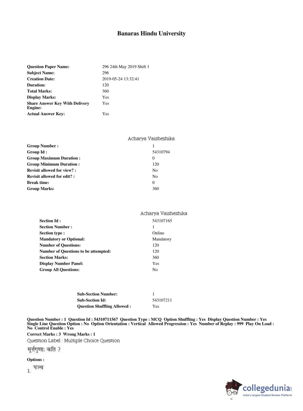 BHU PET 2019 ACHARYA VAISHESHIKA Question Paper with Answer Key PDFs, Shift 1