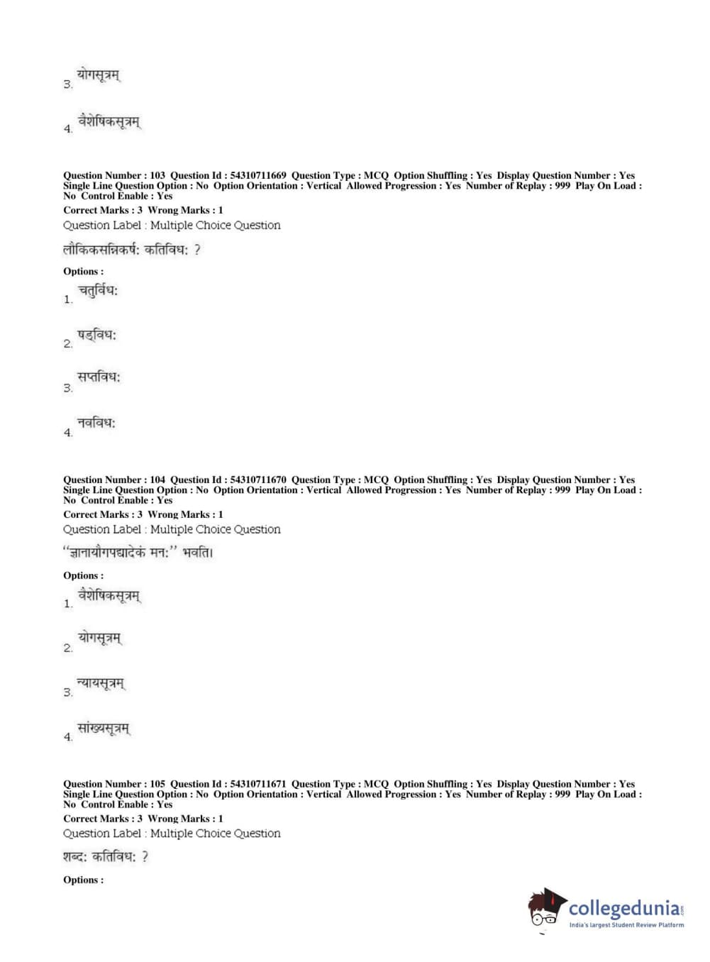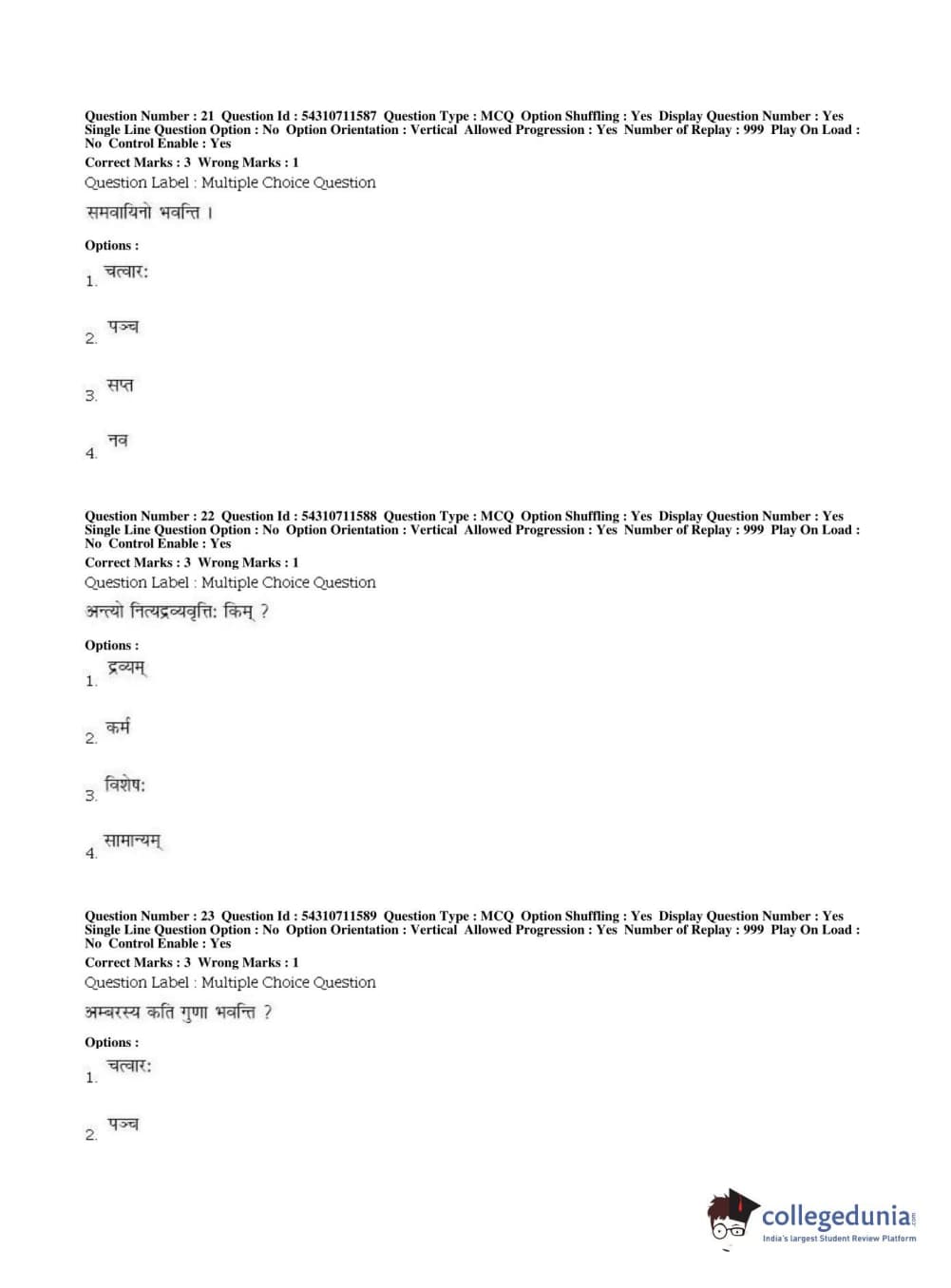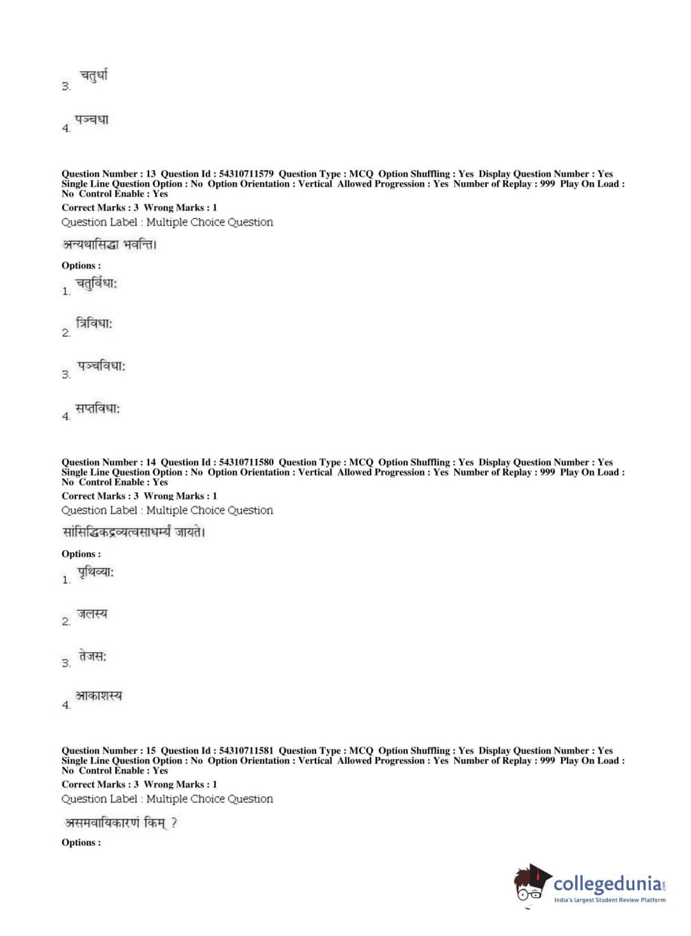 BHU PET 2019 ACHARYA VAISHESHIKA Question Paper with Answer Key PDFs, Shift 1