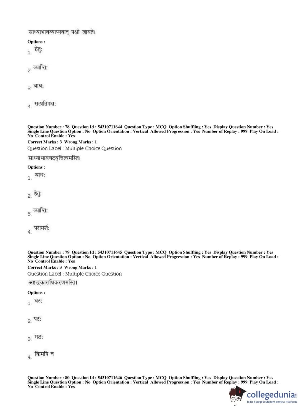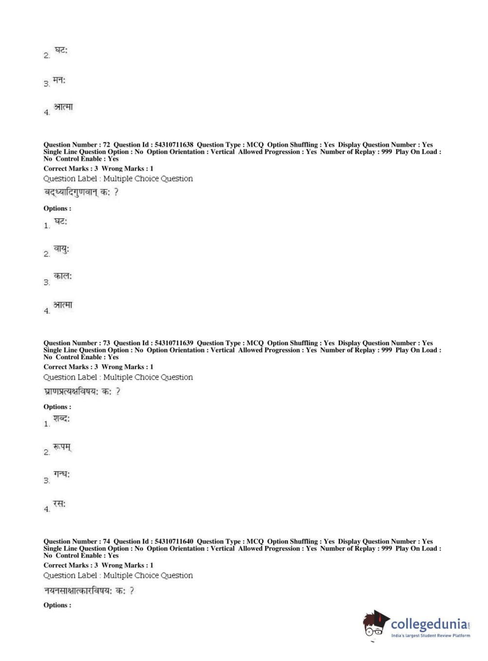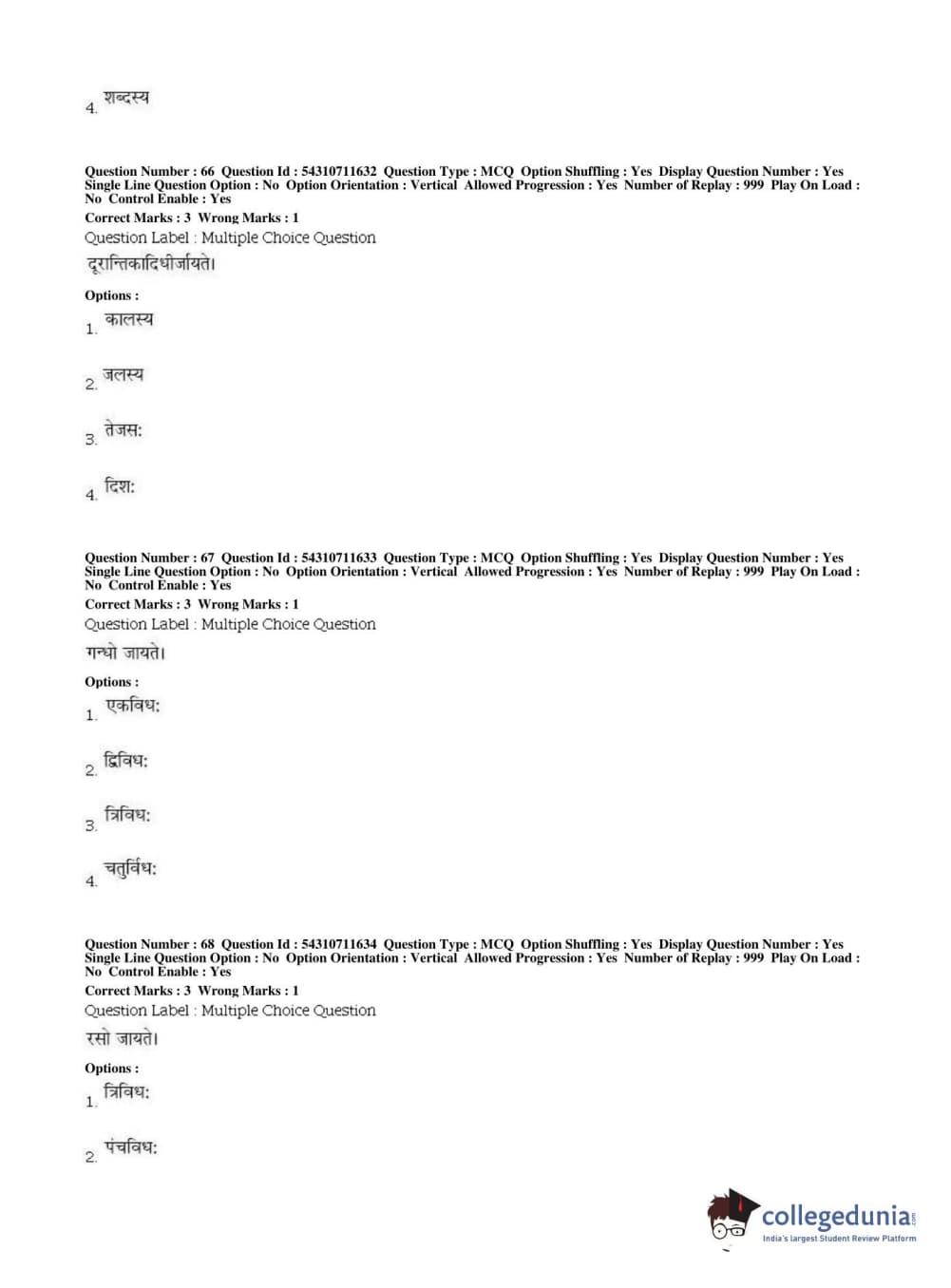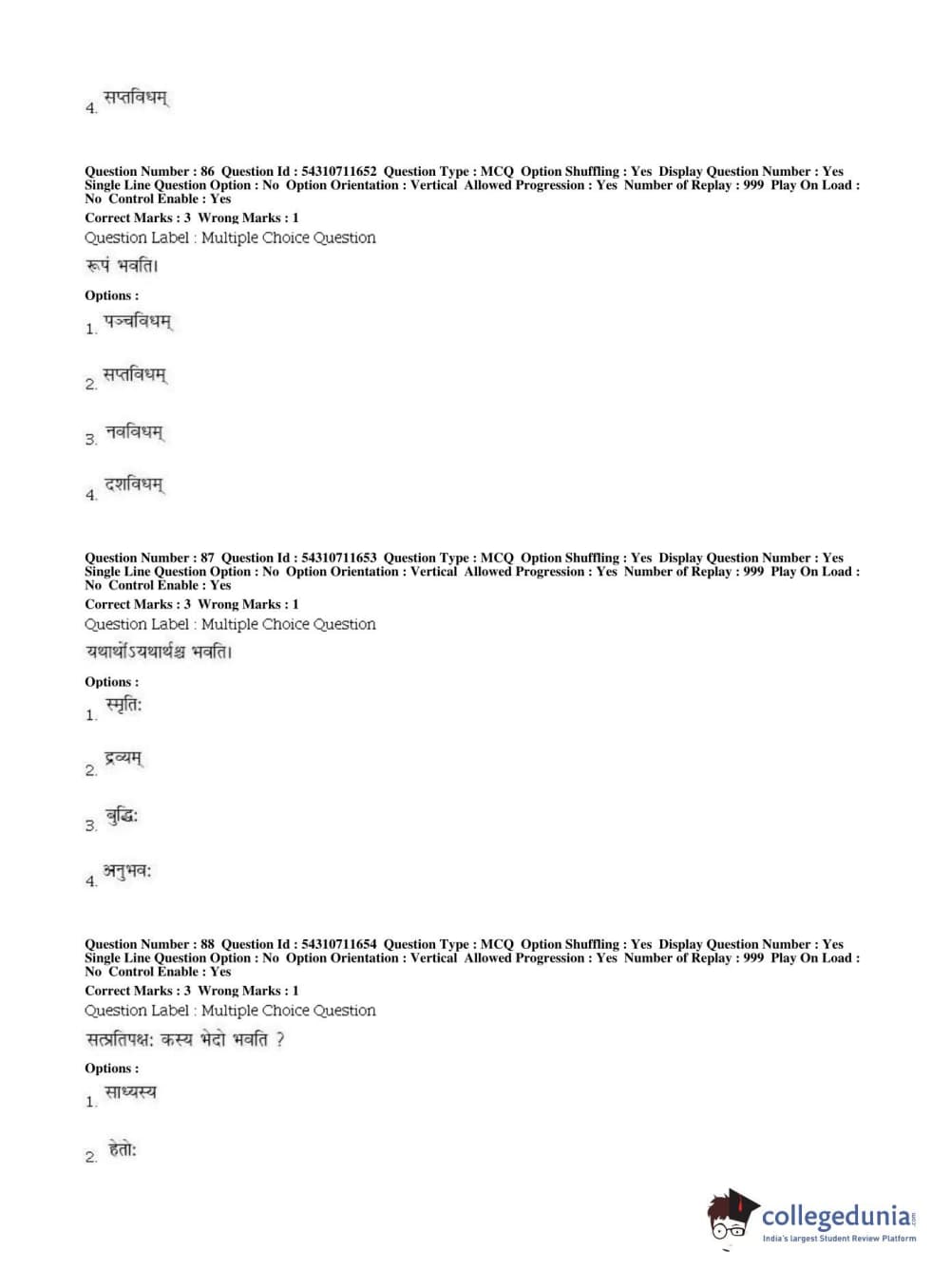 BHU PET 2019 ACHARYA VAISHESHIKA Question Paper with Answer Key PDFs, Shift 1
