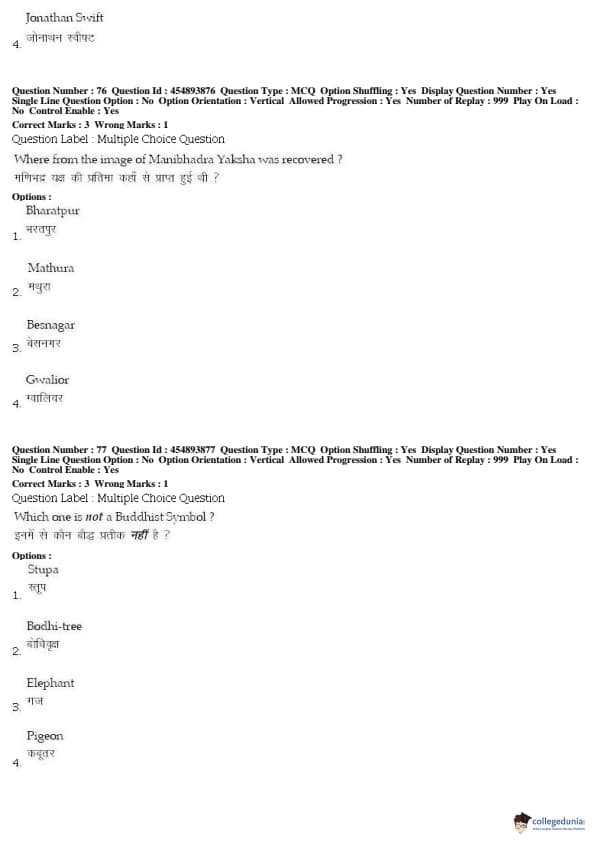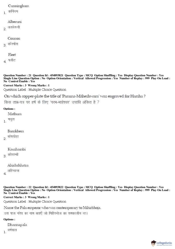 BHU PET 2019 M.A AIHC Question Paper with Answer Key PDFs Shift 2