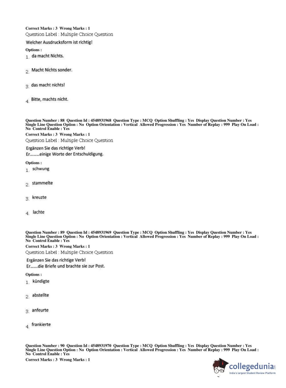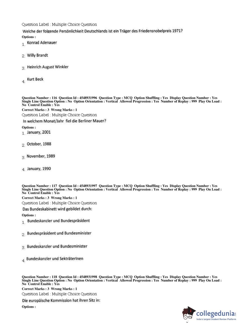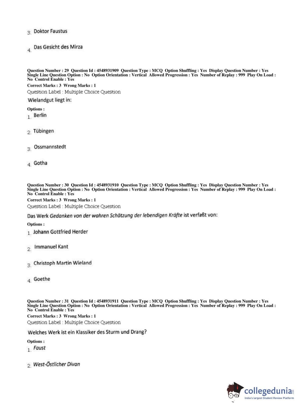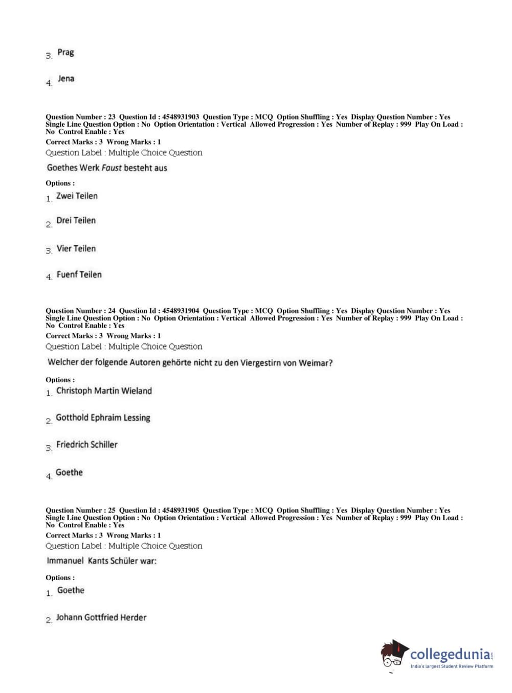 BHU PET 2019 M.A German Question Paper with Answer Key PDFs, Shift 1