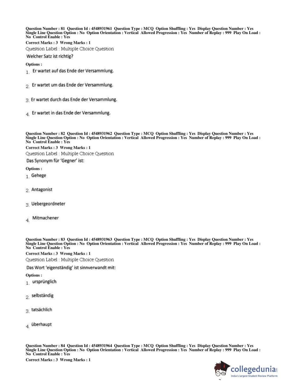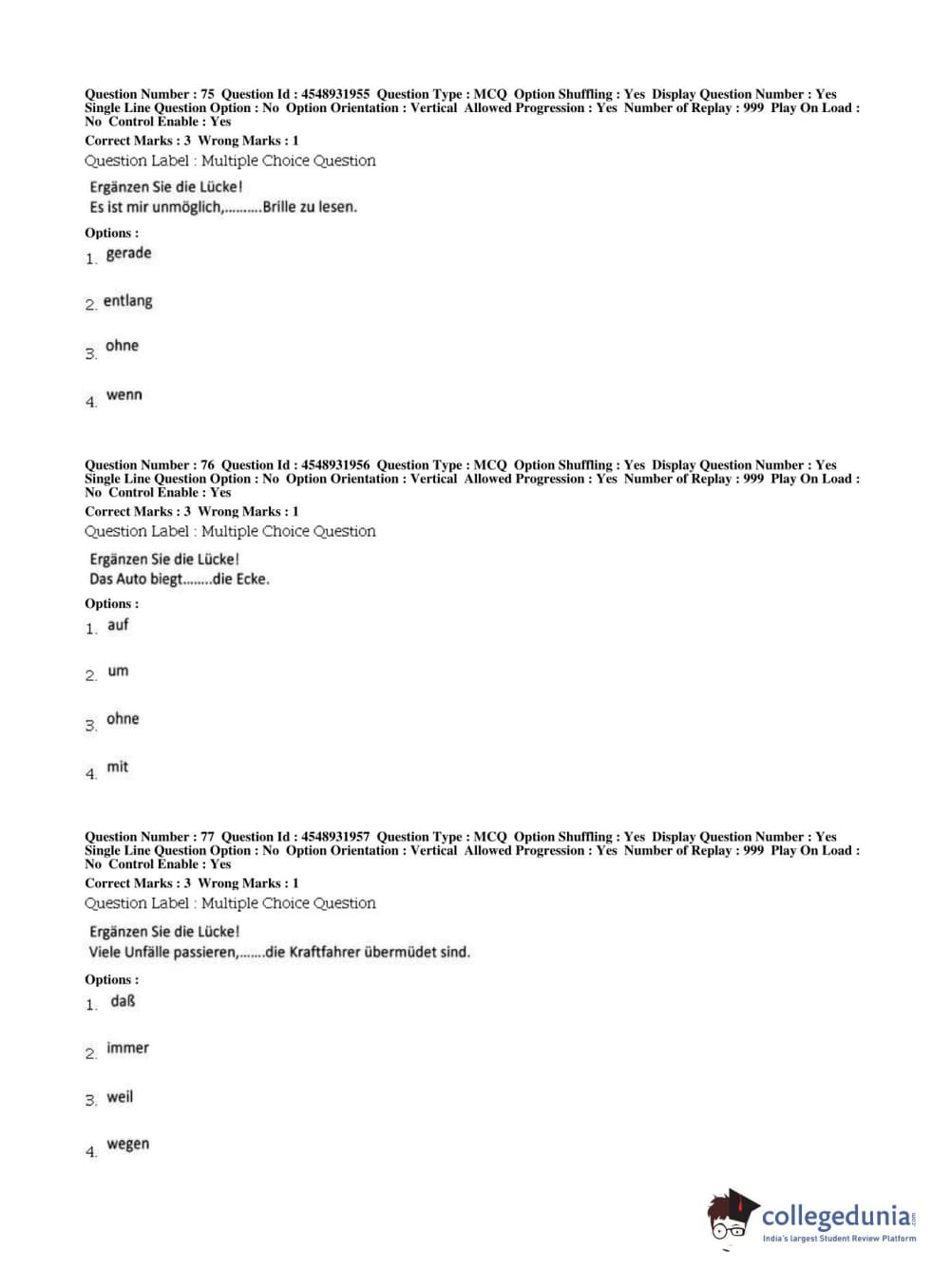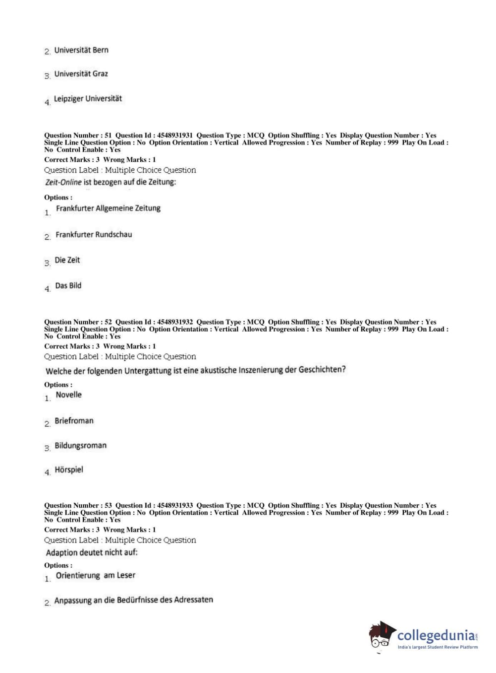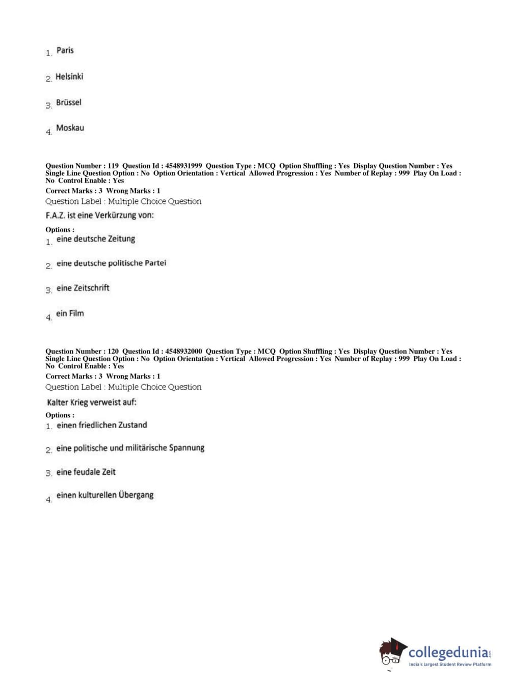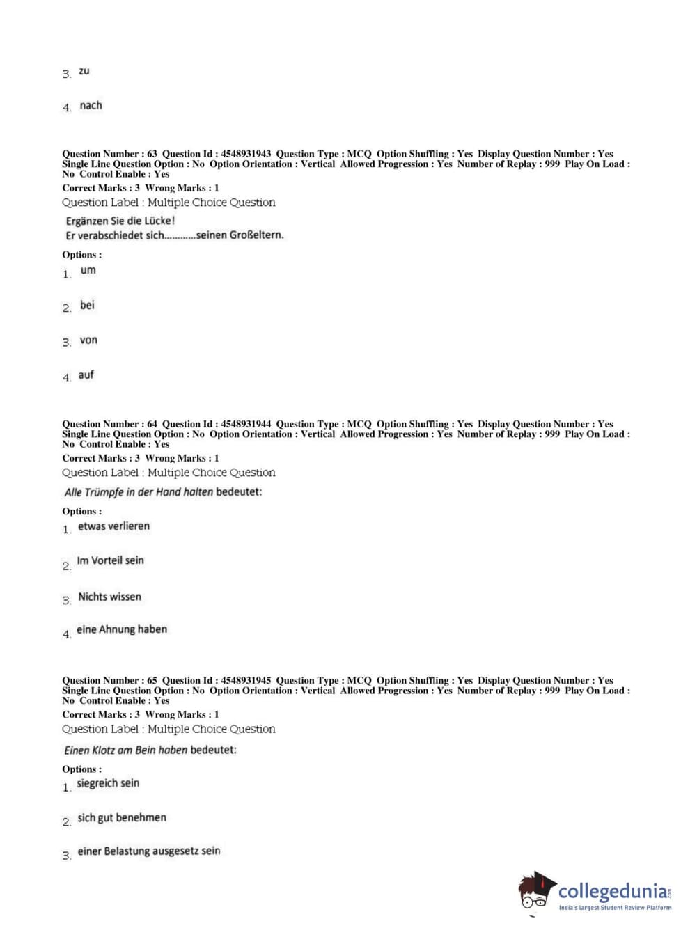 BHU PET 2019 M.A German Question Paper with Answer Key PDFs, Shift 1