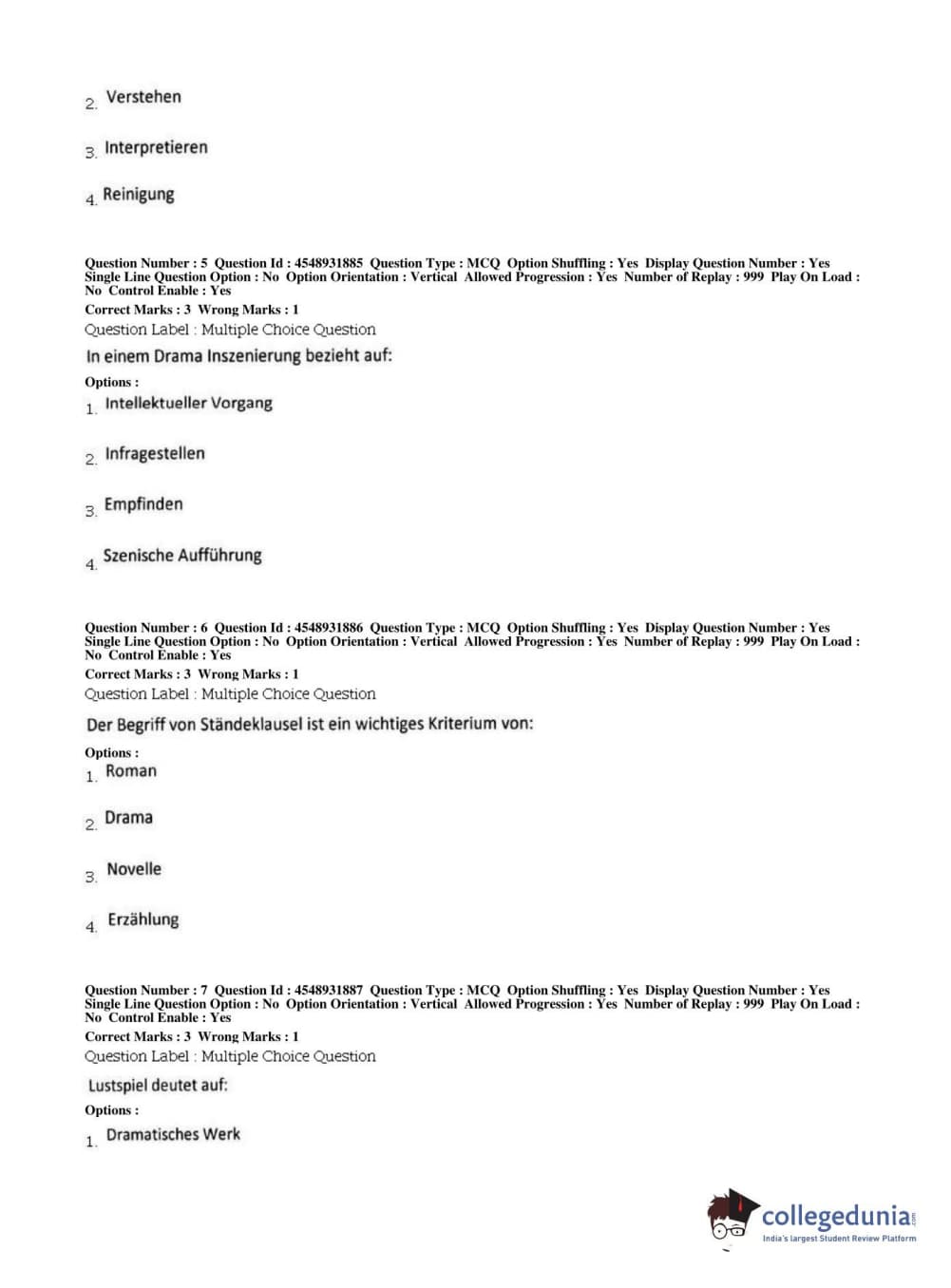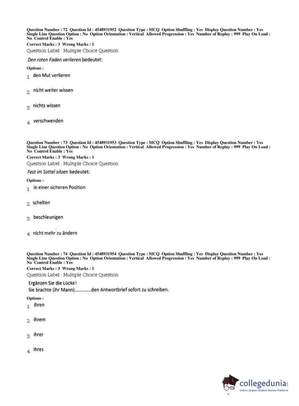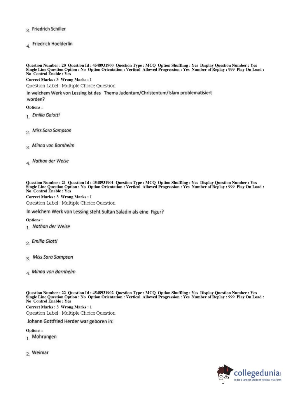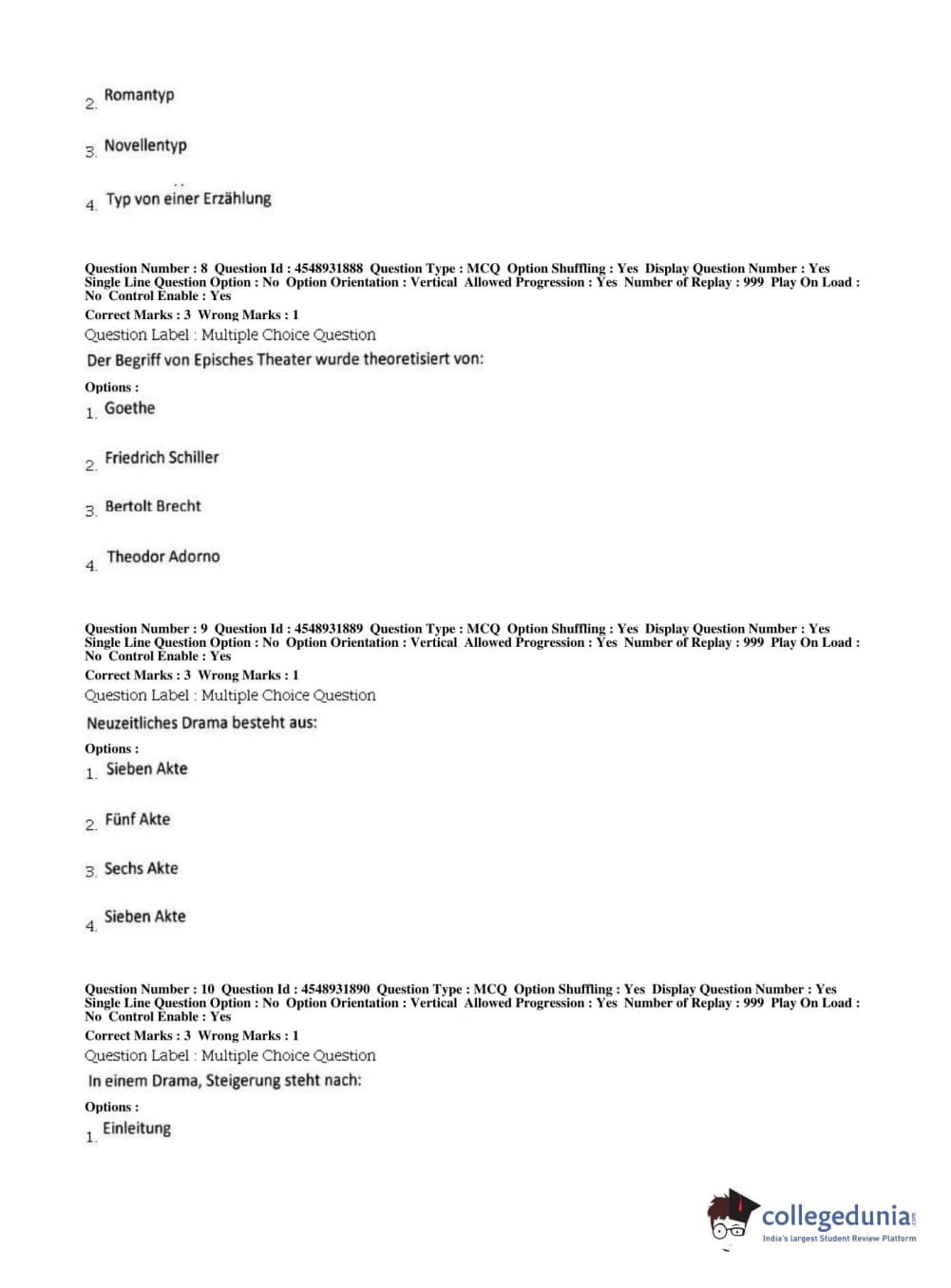 BHU PET 2019 M.A German Question Paper with Answer Key PDFs, Shift 1