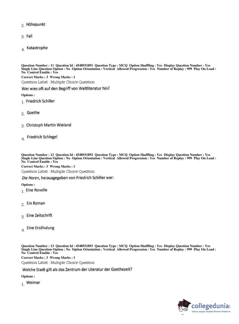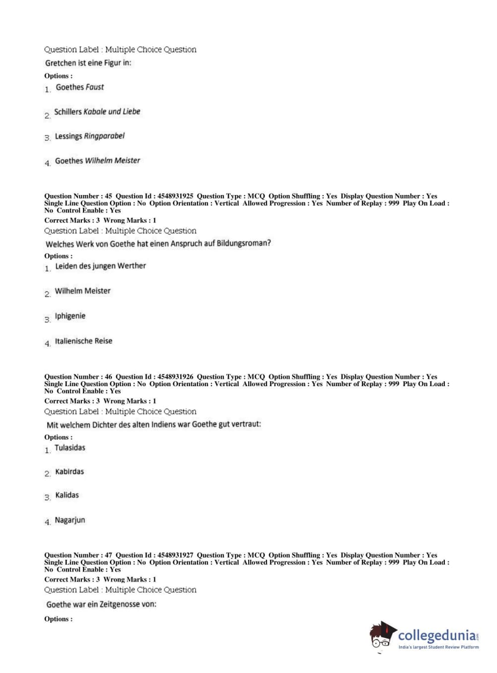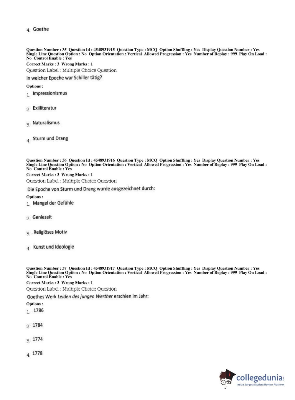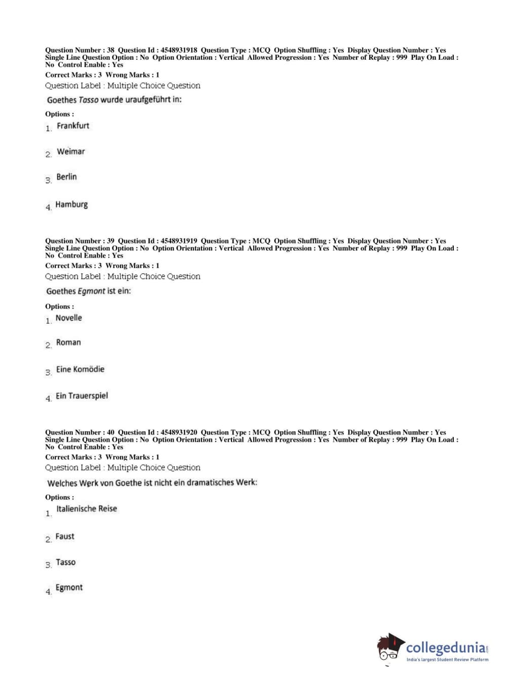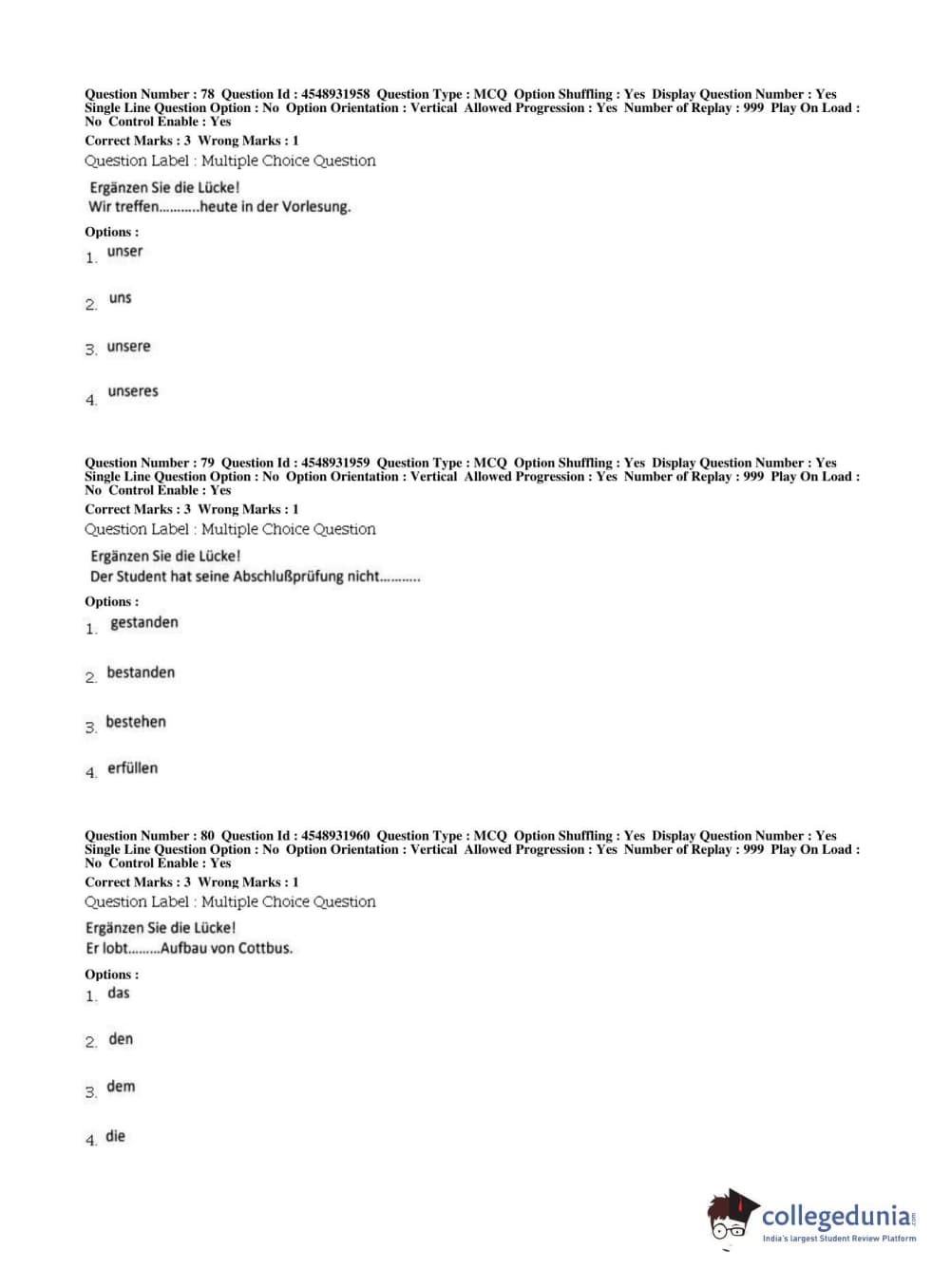 BHU PET 2019 M.A German Question Paper with Answer Key PDFs, Shift 1
