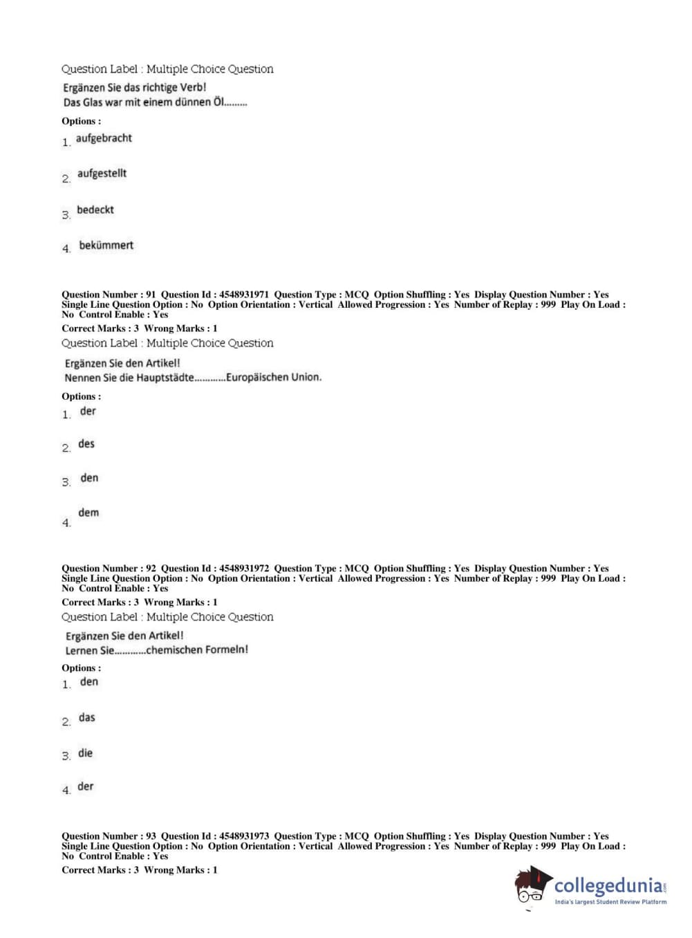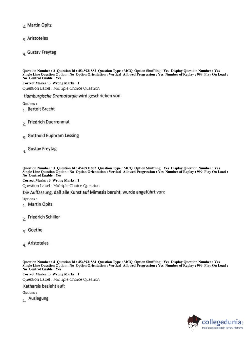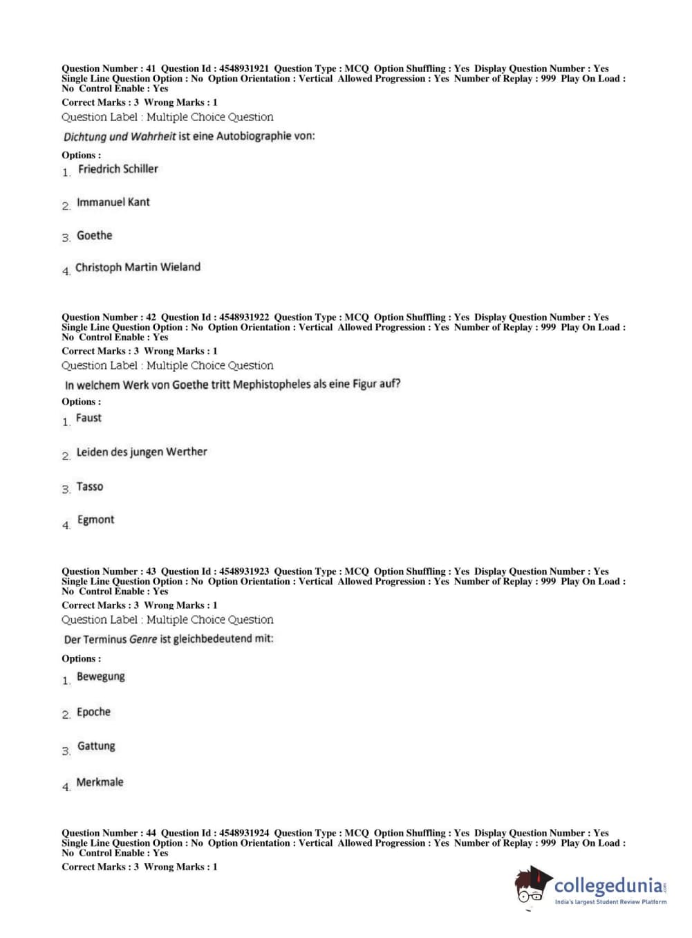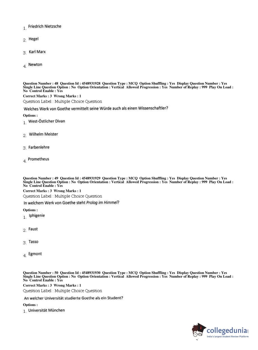 BHU PET 2019 M.A German Question Paper with Answer Key PDFs, Shift 1