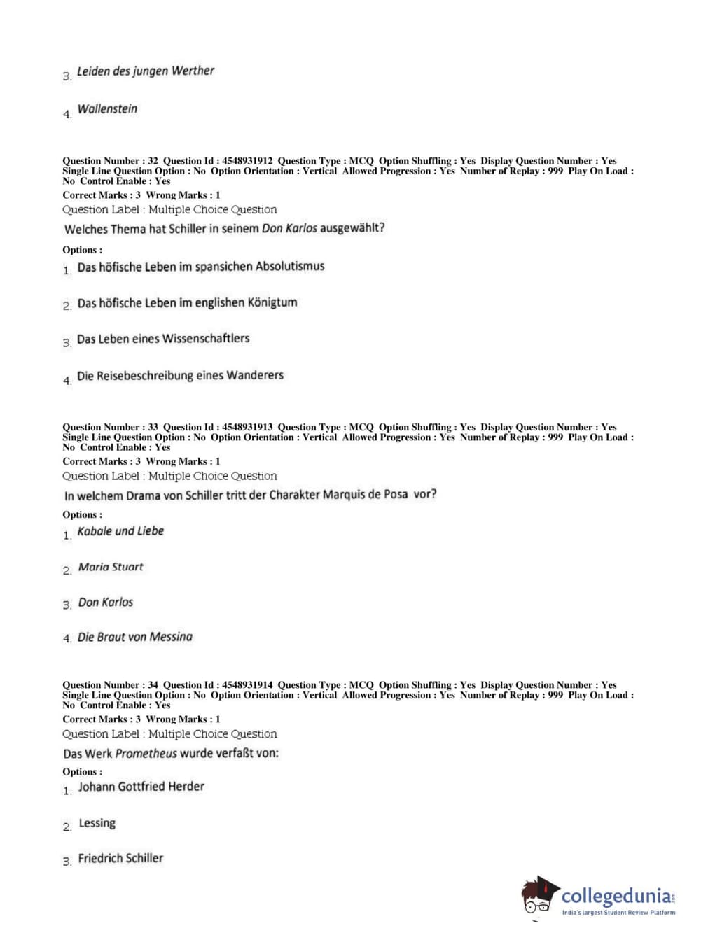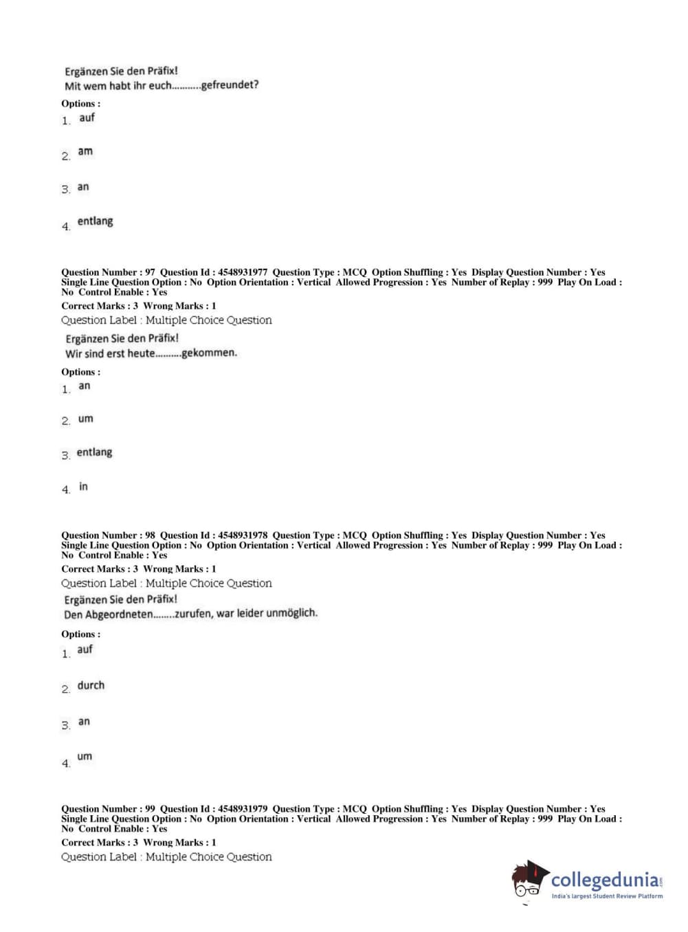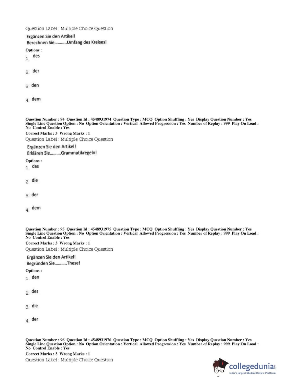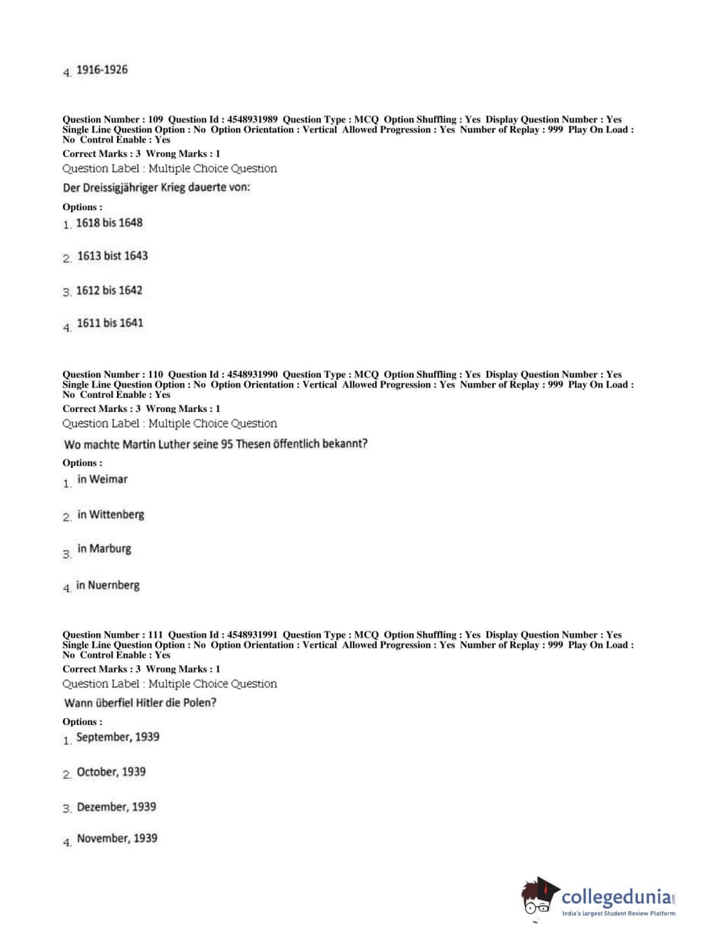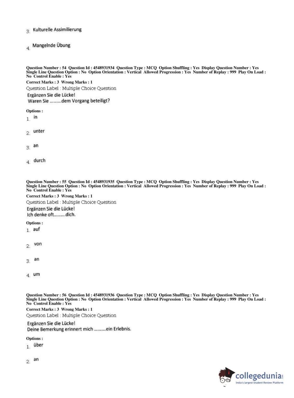 BHU PET 2019 M.A German Question Paper with Answer Key PDFs, Shift 1