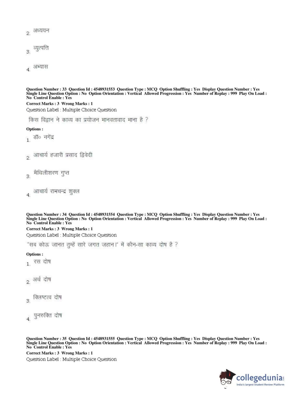 BHU PET 2019 MA HINDI Question Paper with Answer Key PDFs in Hindi ,Shift 1
