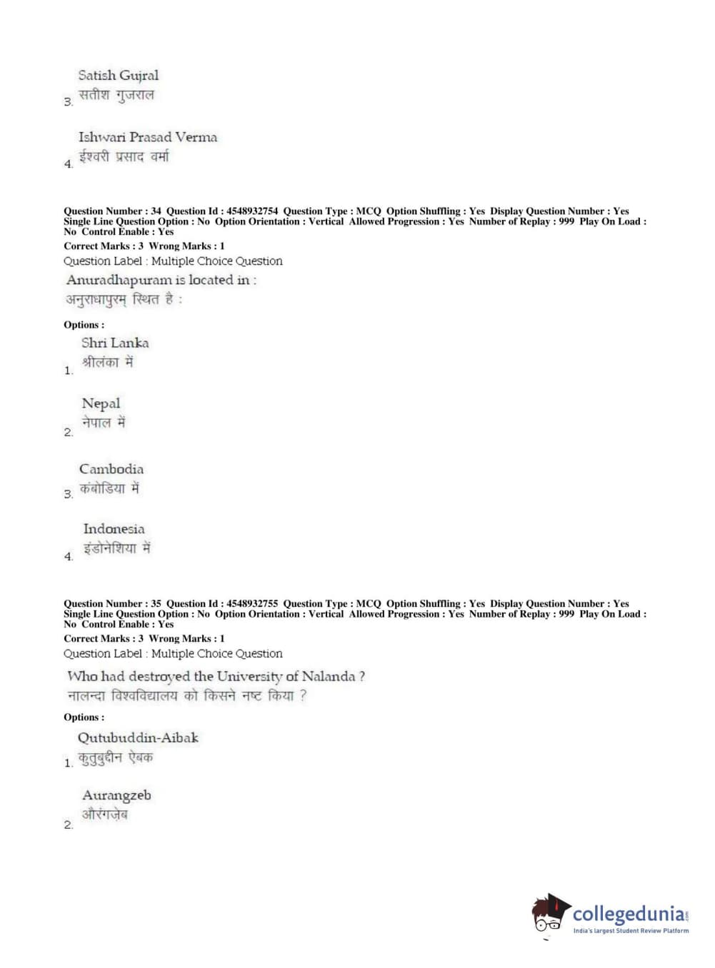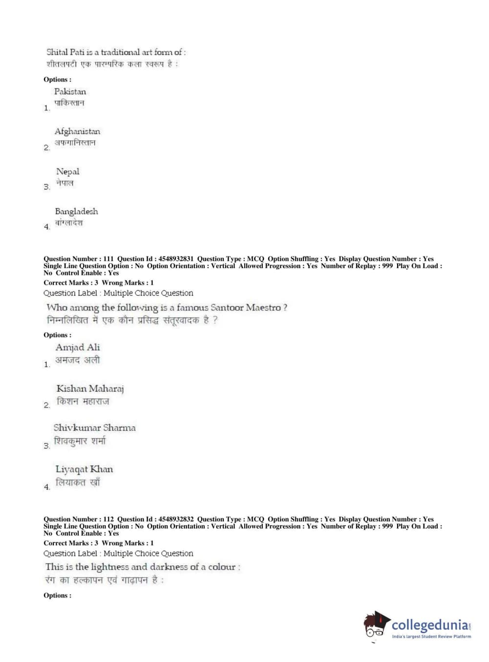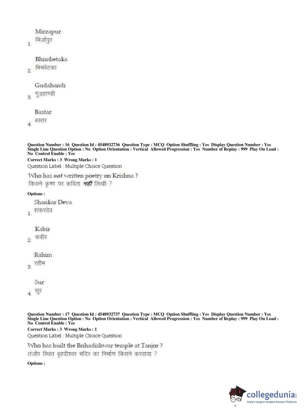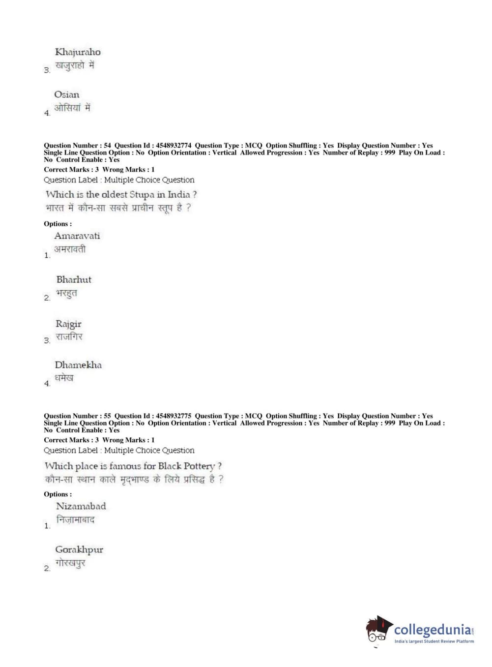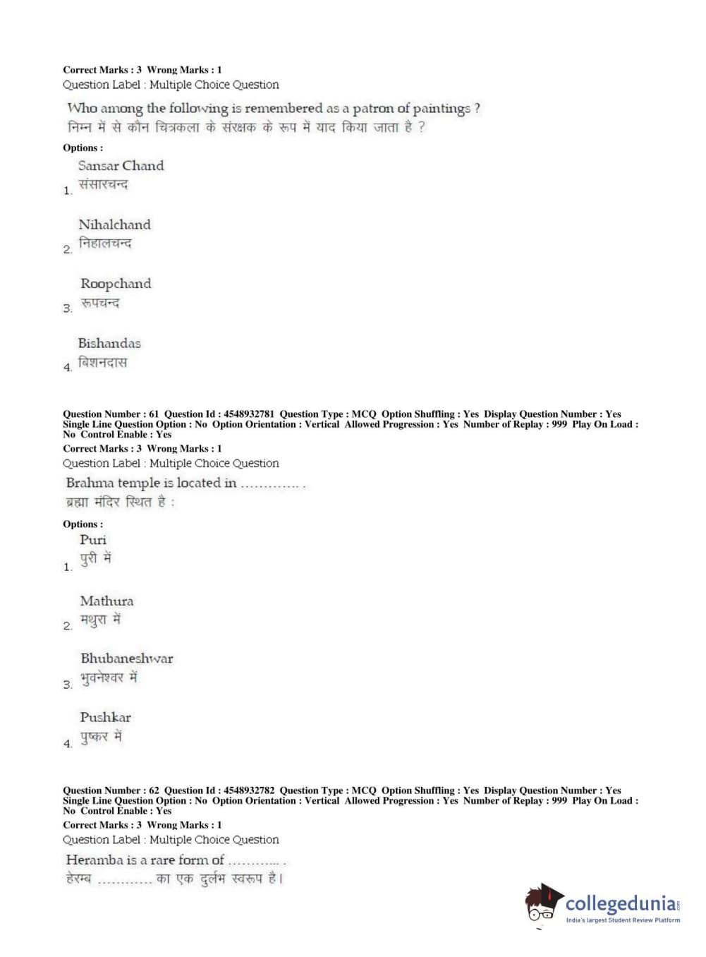 BHU PET 2019 MA History of Arts Question Paper with Answer Key PDFs Shift 2